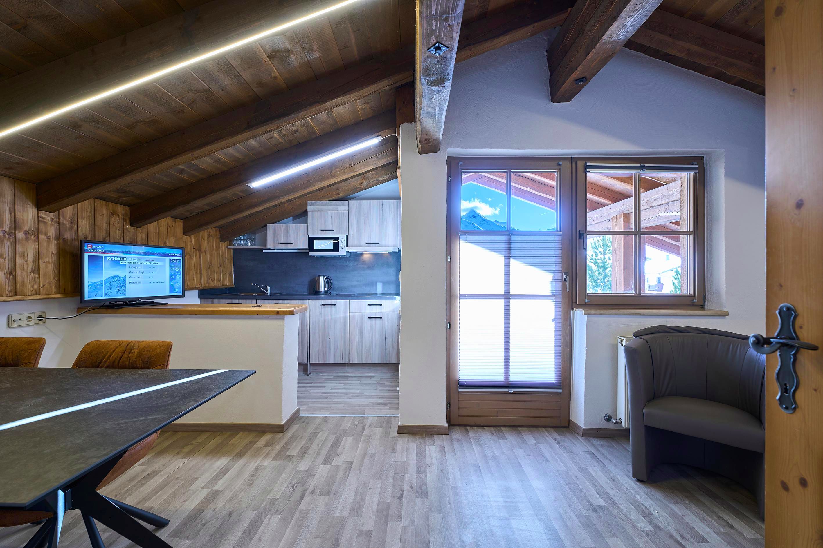 Appartement Gurgl mit ca. 70 m²: 2 Doppelzimmer, 1 Wohnzimmer mit ausziehbarer Doppelcouch (Schlafmöglichkeit für die 5+6 Person) und Esstisch, Küche mit Mikrowelle, Kühlschrank, Elektroherd uvm., 1 Badezimmer mit Dusche/WC, Kabel-TV, Mikrowelle, Badezimmer mit Badewanne/WC. Balkon oder Terrasse.