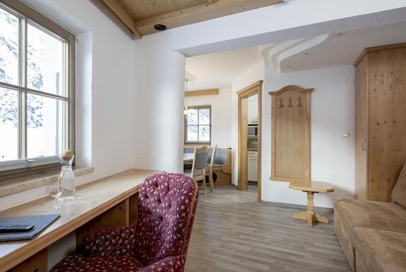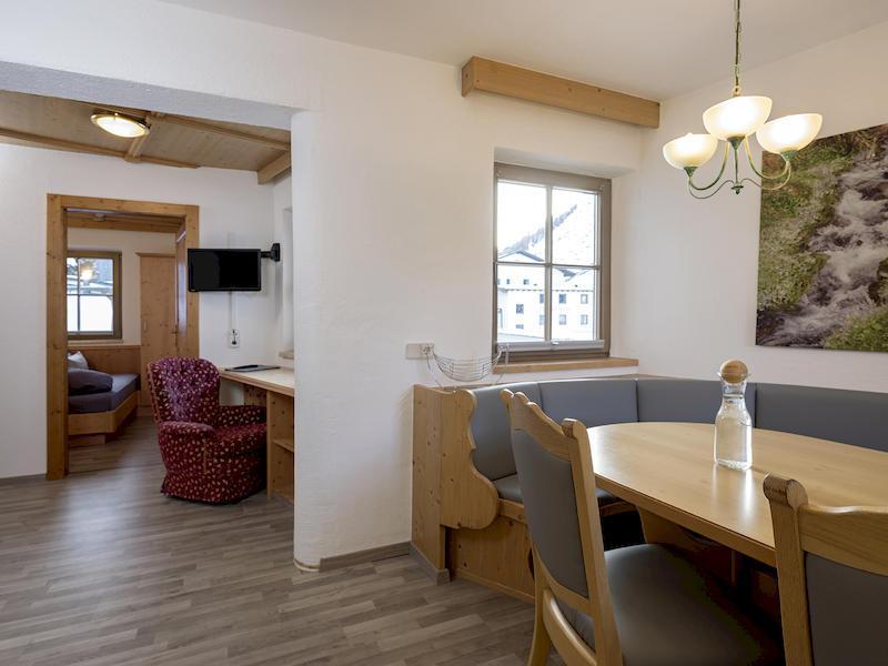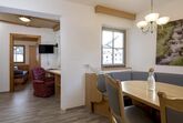 Appartement Tyrol mit ca. 40 m²: 1 Doppelzimmer; 1 Wohnschlafzimmer mit ausziehbarer Doppelcouch für die 3. + 4. Person, Essecke, Küche mit Elektroherd, Backofen, Mikrowelle, Geschirrspülmaschine, Kaffemaschine uvm., 1 Badezimmer mit Dusche/WC.