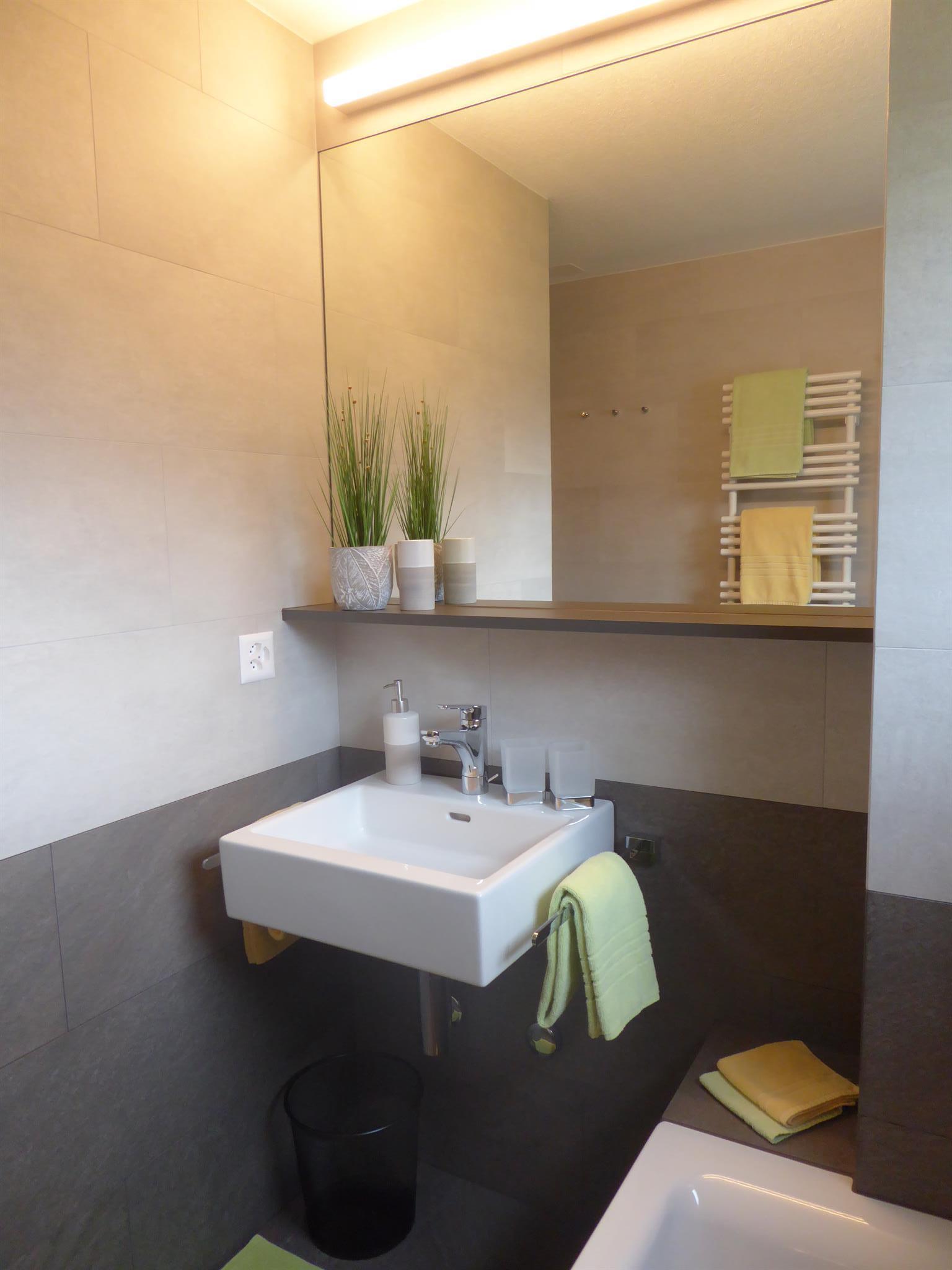 Gepflegte 3-Zimmerwohnung, 55 m2, 2-5 Personen, im 1. Stock, bestehend aus Wohn-/Esszimmer mit TV und Radio, Küche mit Geschirrspülmaschine und Nespresso-Kaffeemaschine, 2 Doppel-Schlafzimmer, Zusatzbett (Wandklappbett) im Wohnzimmer, Bett-, Frottier- und Küchenwäsche vorhanden, Gratis-WLAN, Balkon.
