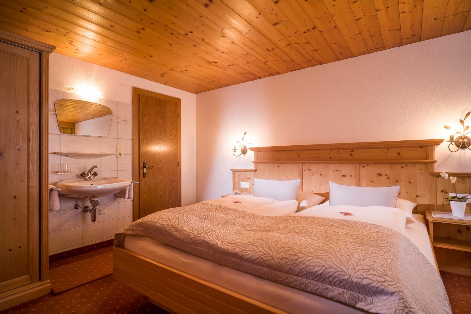 2 Doppelzimmer und 1 Einzelzimmer (Nichtraucher) mit DU/WC, Telefon, SAT-TV, WLAN, Radio, Zimmersafe, Fön und Balkon