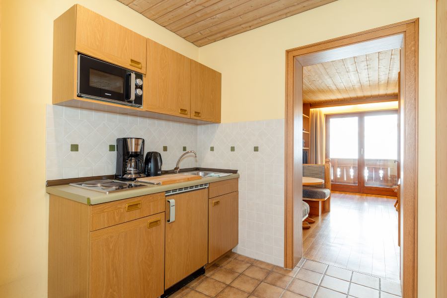 Das Studio Berghof ist ideal für Paare oder Einzelreisende und bietet ein gemütliches Wohnzimmer/Schlafzimmer mit einem Doppelbett, einem Balkon und einer praktischen Küchenzeile. Es verfügt über ein Badezimmer mit Dusche, kostenfreies WLAN und Kabel-TV. Das Sofa im Wohnzimmer kann bei Bedarf als Einzelbett genutzt werden. Die Küche ist mit allen nötigen Utensilien, einem Herd, Kühlschrank und einer Kaffeemaschine ausgestattet. Ein Einbaukleiderschrank bietet Stauraum. Der Skiraum im Keller und der private Parkplatz bieten zusätzlichen Komfort.