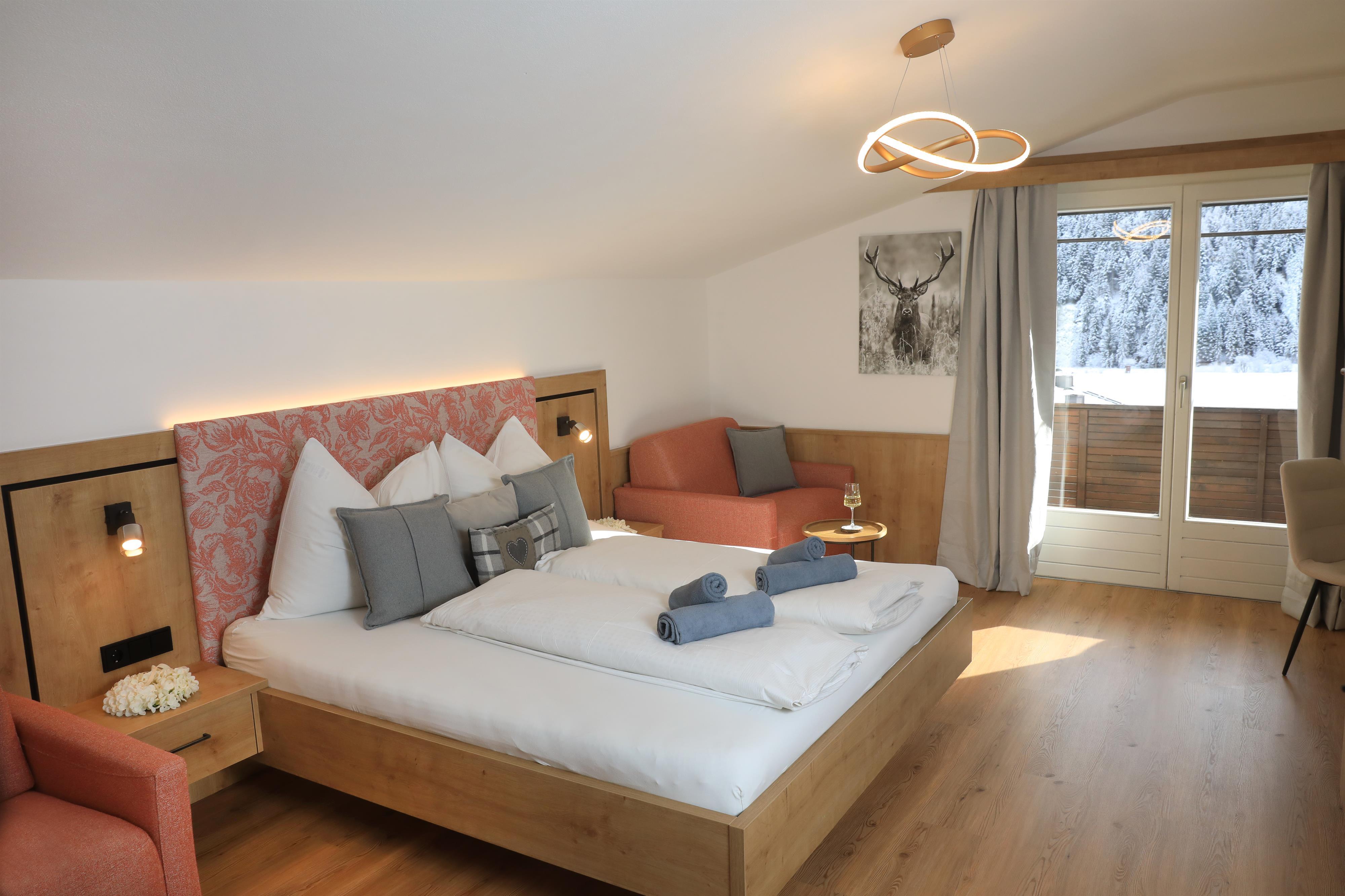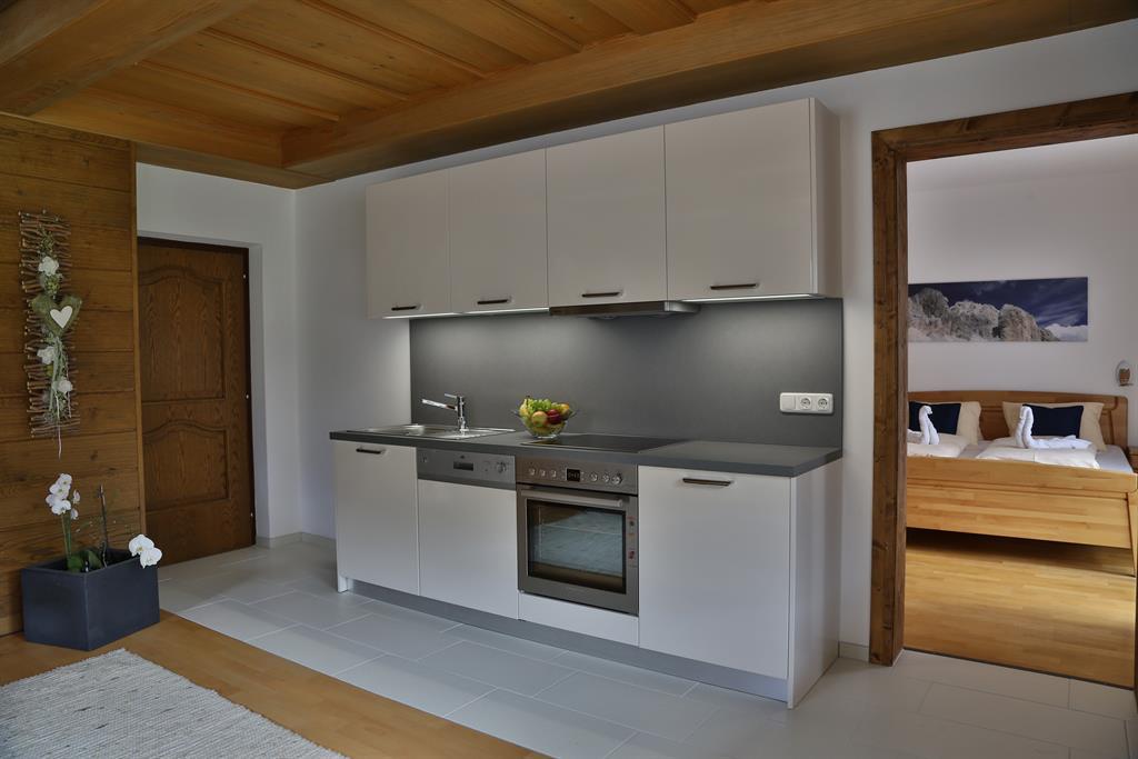Das Appartement Marie hat ein Schlafzimmer mit Doppelbett und Stockbett, ein Badezimmer, große gemütliche Holzstube mit Schlafsofa für zwei Personen und sehr gut ausgestatteter Küche mit Geschirrspüler. Großer Balkon.