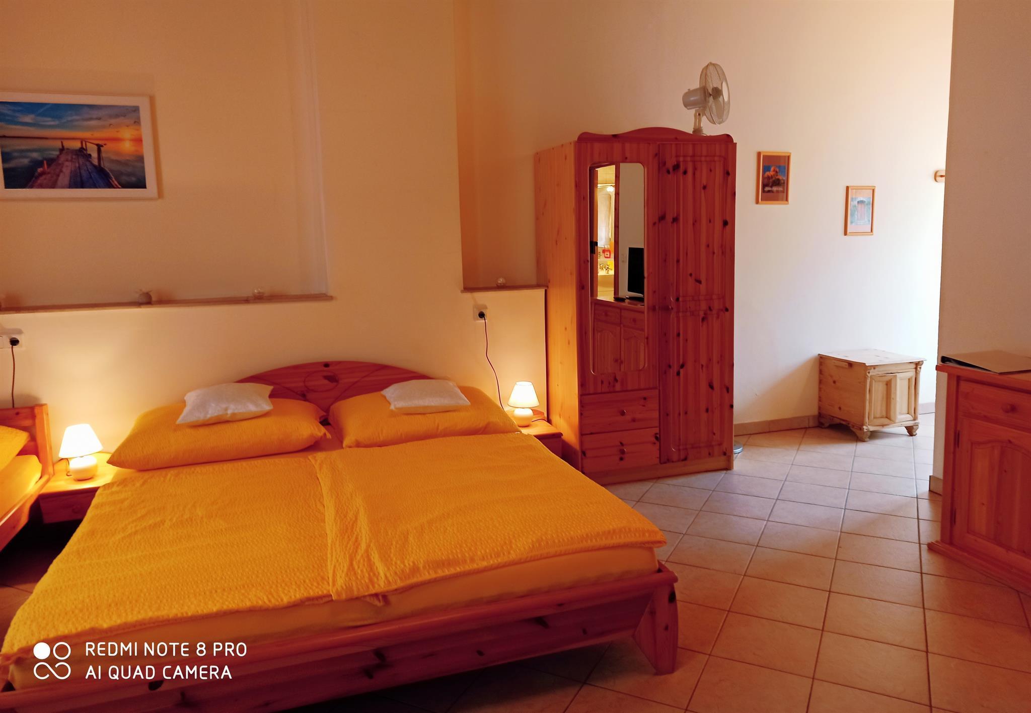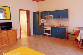 1 Doppelbett, 35m² - Schlafsofa, Fernseher, Kleiderschrank - Küche mit Einbauherd, Mikrowelle, Kaffeemaschine, Wasserkocher, Toaster, Kühlschrank und Spüle sowie sämtliches Geschirr - Sitzgelegenheit für 4 Personen - Bad mit zwei Duschen, zwei Waschbecken und WC.