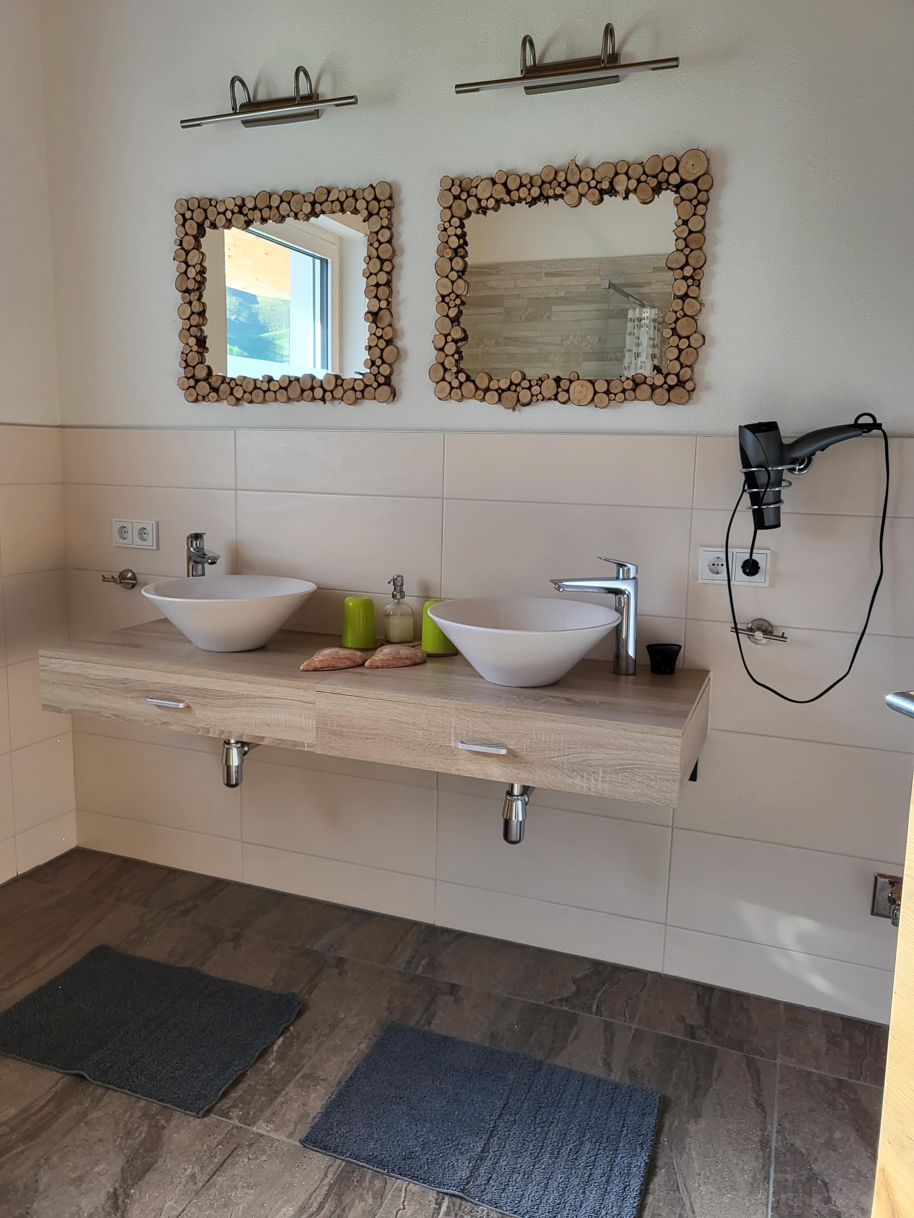 1 Badezimmer mit Doppelwaschbecken, XL Dusche und separaten WC