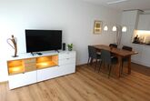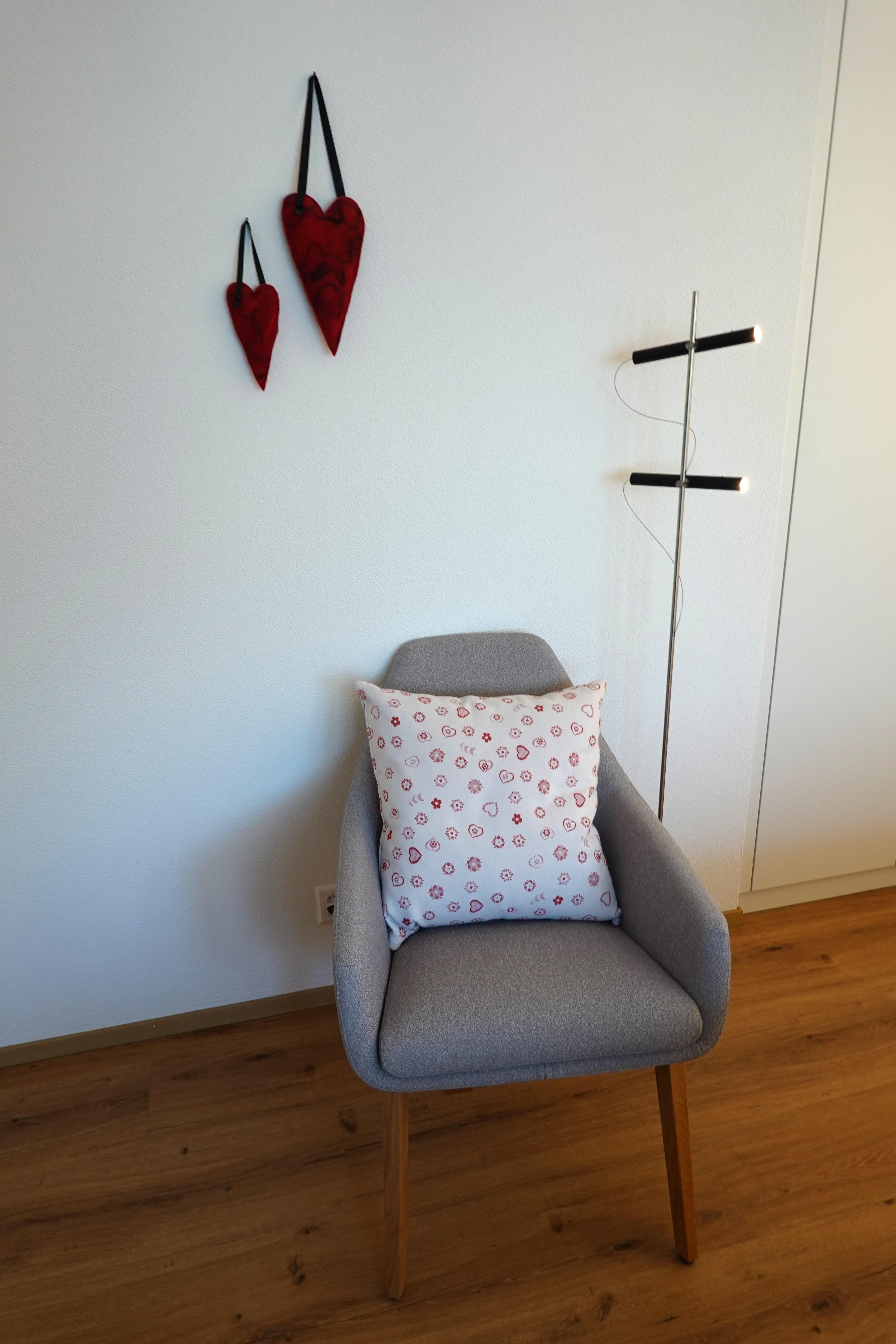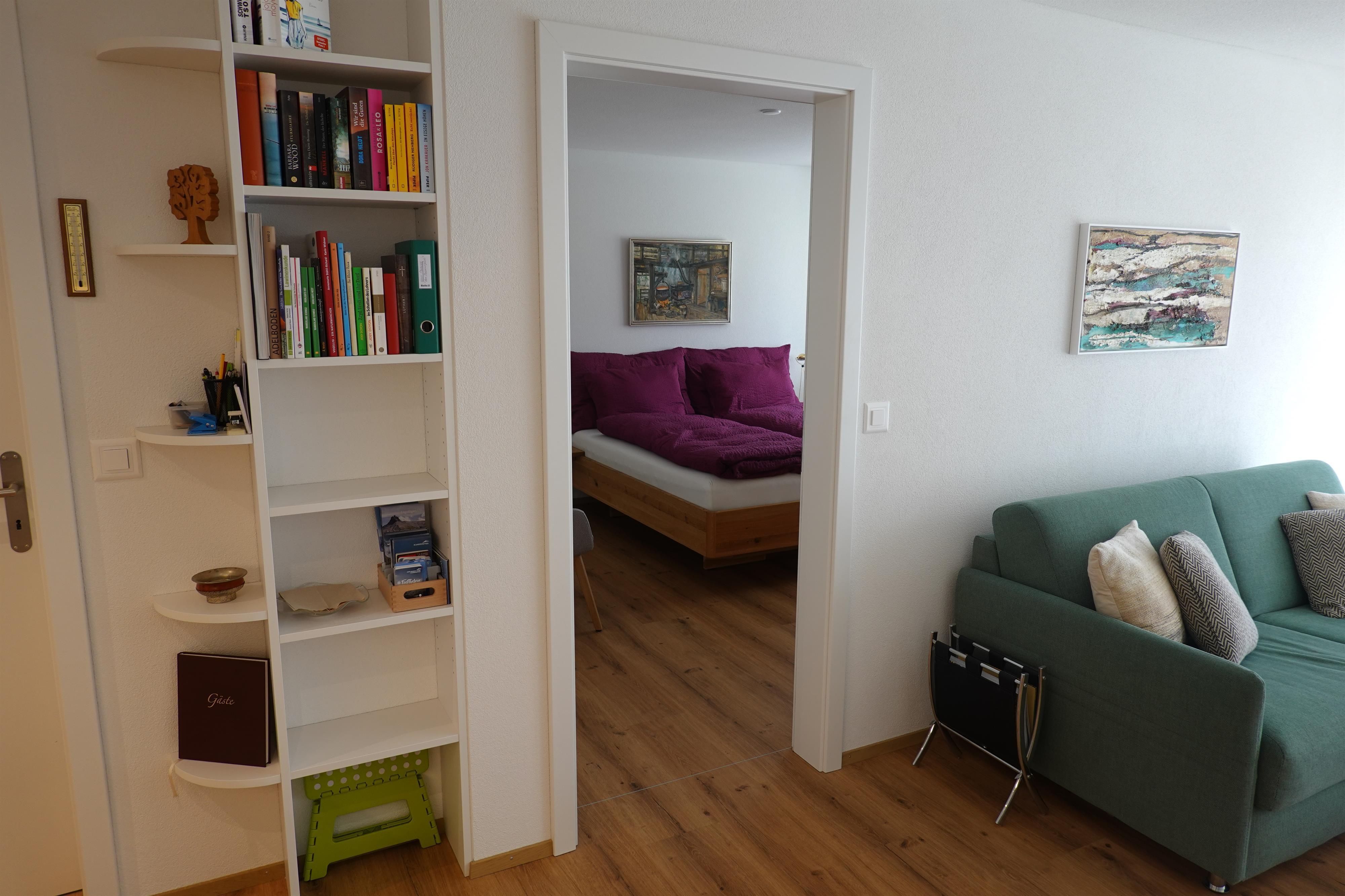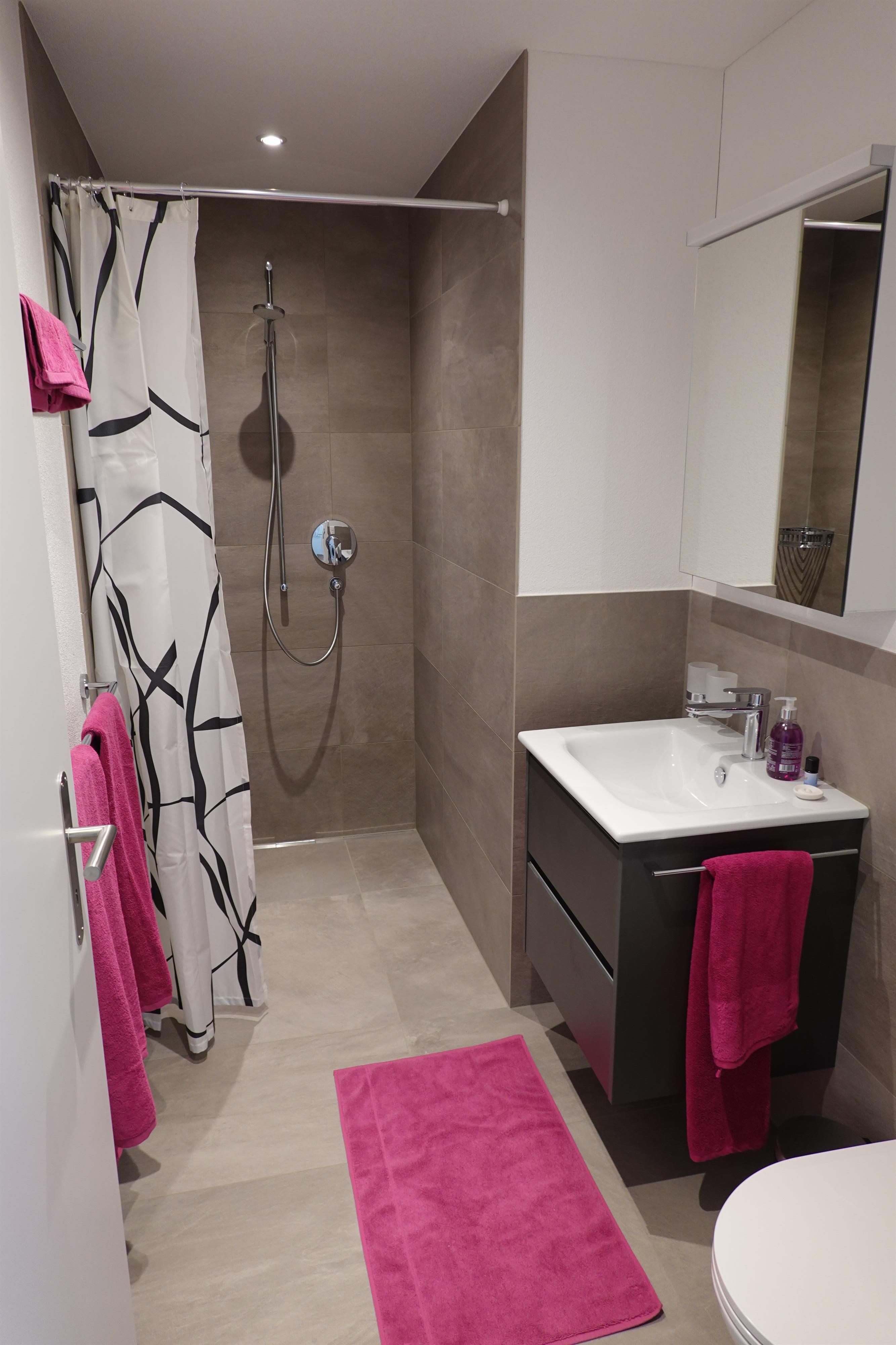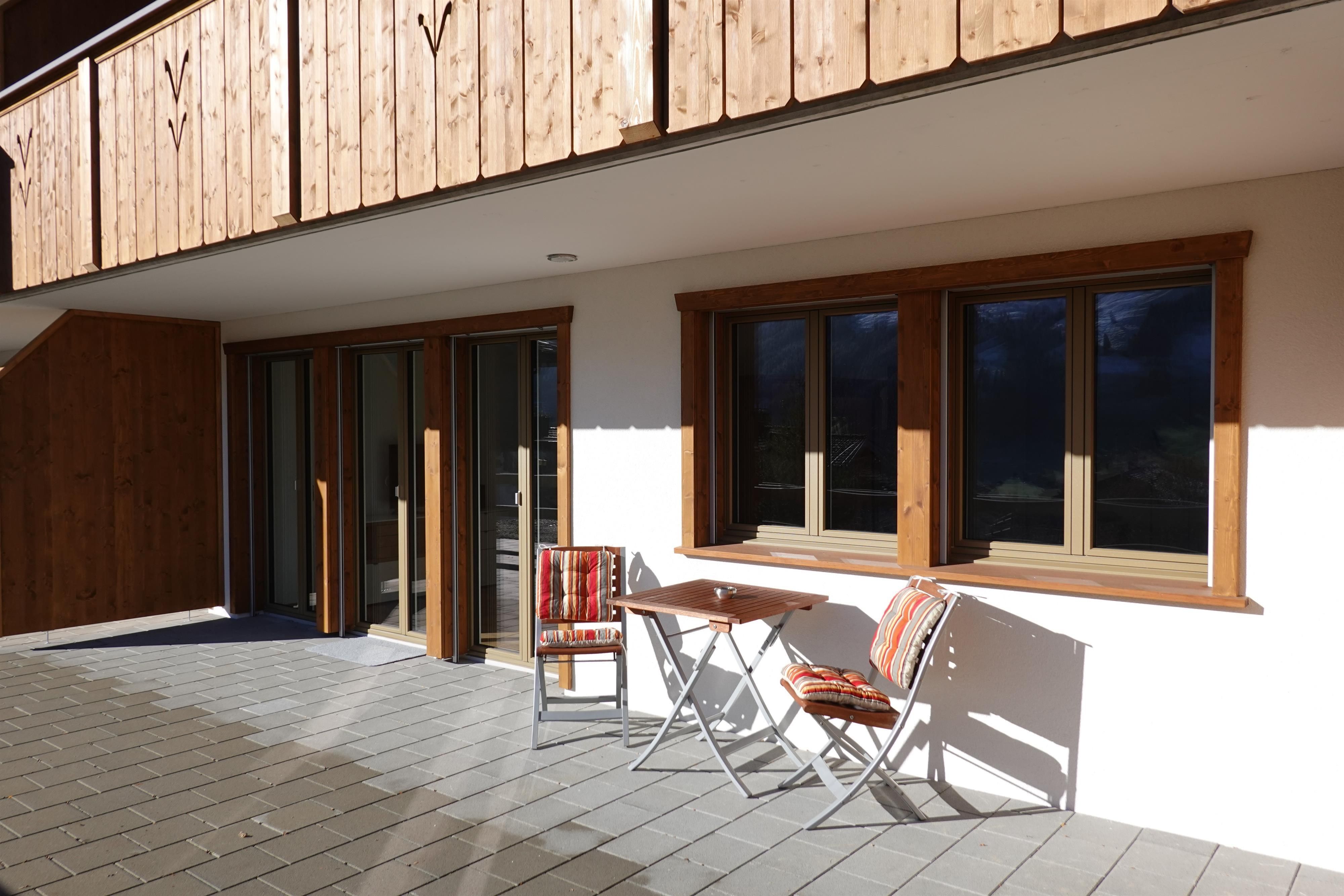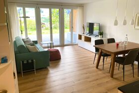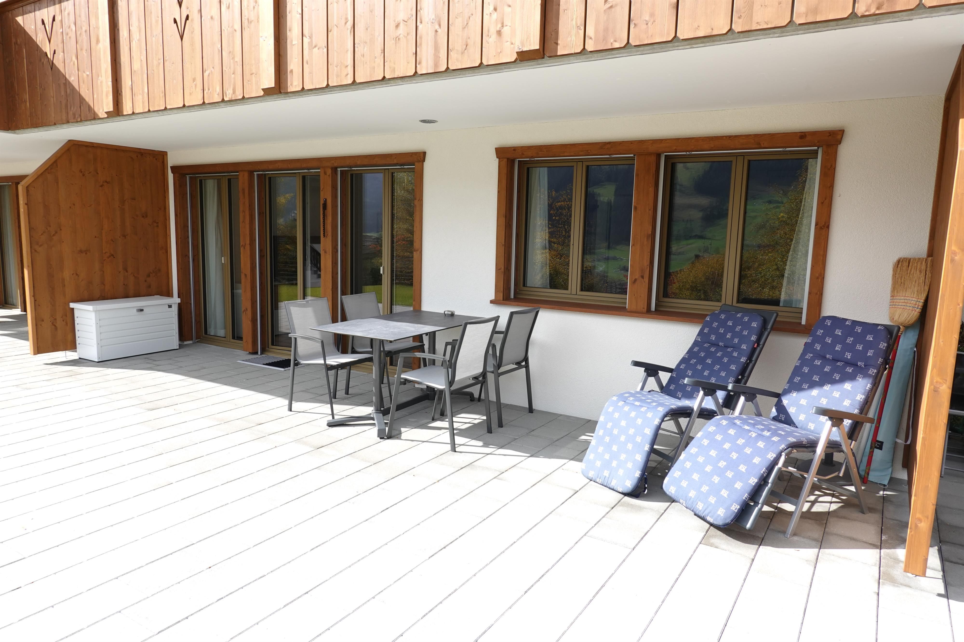 Die moderne Wohnung verfügt über Entrée mit Garderobe, Schlafzimmer, Wohnraum mit offener Küche, Badezimmer mit Dusche/WC und Bodenheizung. Mit dem Lift gelangen Sie zum eigenen Keller mit Waschmaschine/Tumbler und in die Garage zu Ihrem Auto-Einstellplatz. Ladestationen für E-Autos beim nahen LWA. Die Wohnung ist komfortabel, praktisch und zweckmässig eingerichtet und bietet 2 Personen bequem Platz. Im Schlafzimmer befindet sich ein Doppelbett (180x200), ein Bauernschrank sowie ein Sessel mit einer Stehleuchte. Bei Bedarf kann für eine weitere Person das Sofa im Wohnzimmer mit wenigen Handgriffen in ein bequemes Sofa-Bett (140x200) umgewandelt werden (siehe «Gut zu wissen»). Die Küchenzeile ist ausgestattet mit Kühlschrank/Gefrierfach, Glaskeramikkochfeld, Backofen/Steamer und Abwaschmaschine (auf Wunsch Mikrowelle). Auf der Terrasse befindet sich ein Gartentisch mit Stühlen, zwei Liegestühle, eine Gartenbox mit Kissen und ein Sonnenschirm.