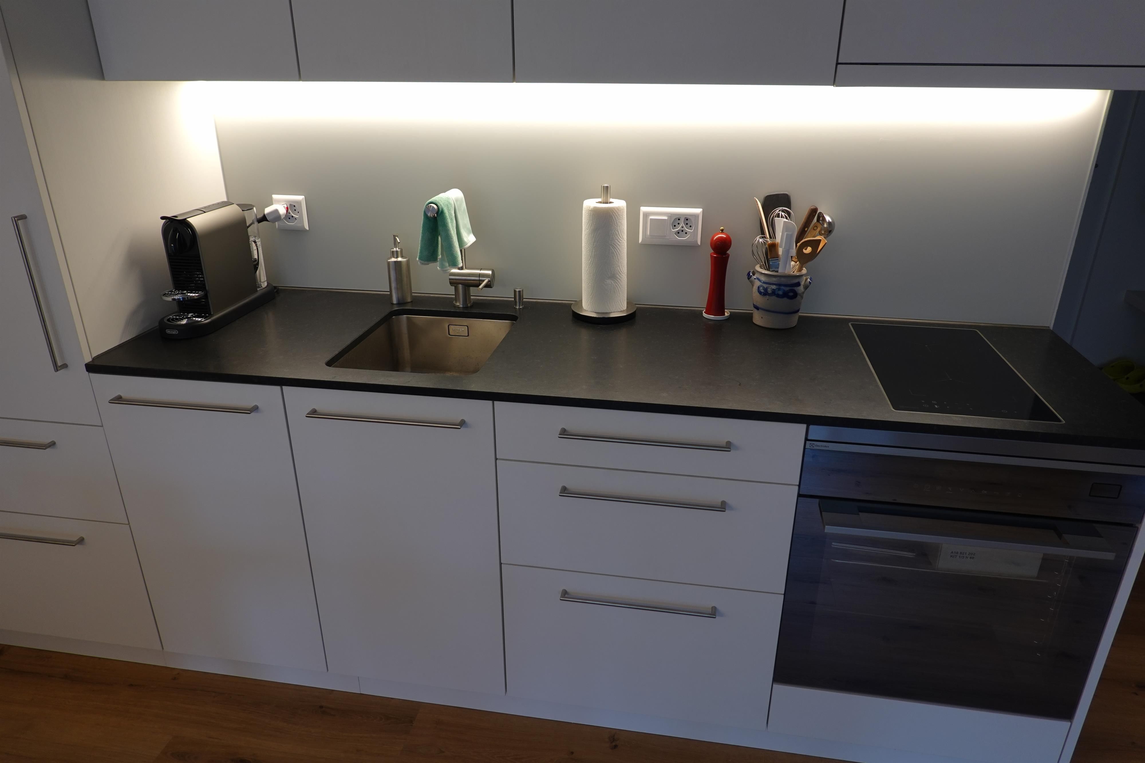 Basis-Lebensmittel: Um Ihnen den Wareneinkauf in Kleinmengen zu erleichtern, stellen wir in der Küche einige haltbare und von uns kontrollierte Lebensmittel zur Verfügung, wie z.B.: Nespresso-Kapseln, Kaffee-pulver, Tee, UHT-Vollmilch, Zucker, Suppen, Stocki, Reis, Teigwaren, passierte Tomaten, Mehl, Mayonnaise, Senf, Tomaten-Püree, Bratensauce, Bouillon, Olivenöl, Balsamico-Essig, Salz und diverse Gewürze.