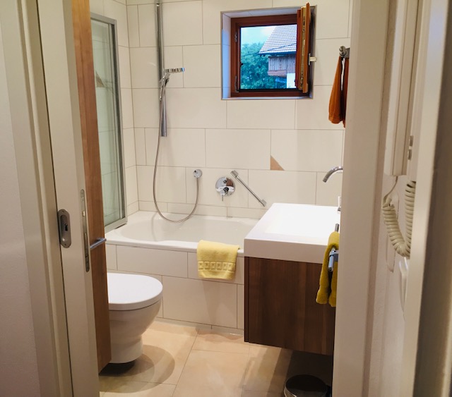 Bettinas Haus liegt im ruhigen Ortsteil Milbing ca. 20 Gehminuten südwestlich des Ortszentrums. Das Haus verfügt über zwei identisch geschnittene 2-Zimmerwohnungen (je 51 qm) mit Essküche. Im Jahr 2020 wurden umfangreiche Sanierungs- und Renovierungsmaßnahmen durchgeführt, somit ist das Haus heute auf einem modernen Standard. WLAN 50 Mbit, Kabelanschluss und solarunterstützte Gaszentralheizung. Der ursprüngliche Charme eines 90 Jahre alten Hauses wurde herausgearbeitet und bewahrt, so z.B. der knarzende Parkettboden im OG. Die Garage mit E-Ladestation bietet die Möglichkeit, ein Fahrzeug sowie mitgenommene Fahrräder unterzustellen (Aufpreis). Der wunderschöne ca. 550 m² große Garten mit von ca. Mai - Oktober betriebener Warmwassergartendusche öffnet sich in Südwestrichtung hin zu einer traumhaften Bergkulisse, die den Wendelstein umgibt.