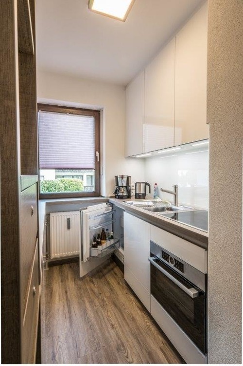 Die voll ausgestattete Küche verfügt über einen Induktionsherd mit vier Zonen, sodass Sie Ihre Lieblingsgerichte problemlos zubereiten können.
