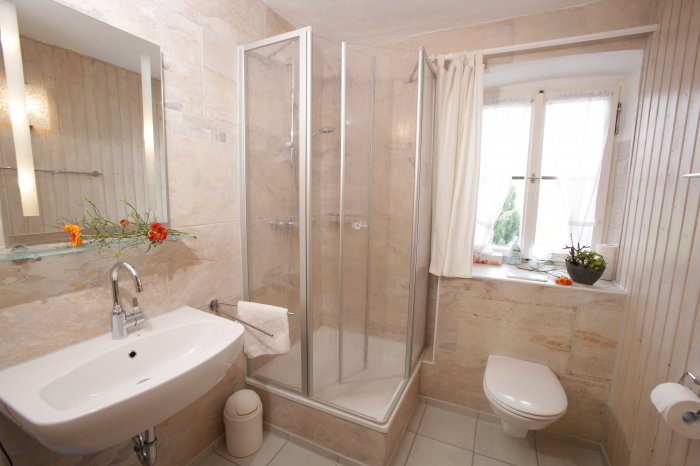 9 gemütl. FeWo's für 2-5 Pers. Alle m. 2 getrennten Schlafräumen, ausreichend ausgestatteter Küchenzeile (mit Spülmaschine, Mikrowelle, Toaster, Eierkocher, Kaffeemaschine) Essecke, Wohnbereich, Bad/WC mit Fön, Sat-TV mit DVD, kostenfreies W-LAN, Radio, CD, z.T. m. Balkon. Gitterbetten, Hochstühle und Rausfallschutz gerne zum Ausleihen.