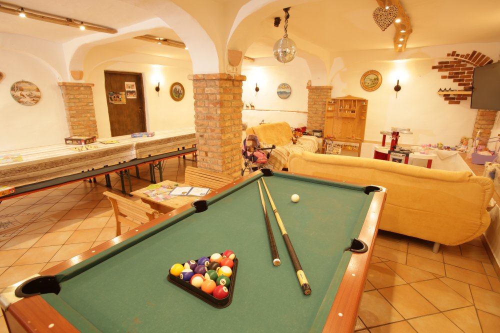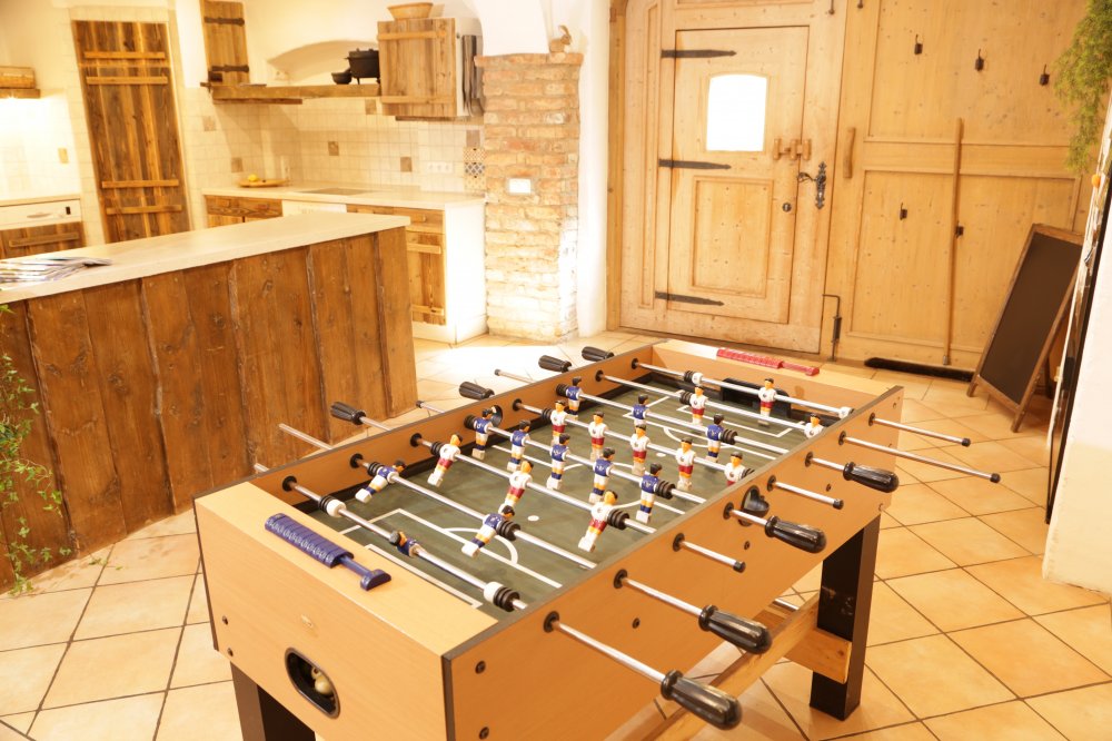 Großer Aufenthaltsraum m. Billard, Kickerplatte u. Brettspielen, sowie einer großen Küche für gemeinsame Mahlzeiten für Gruppen.