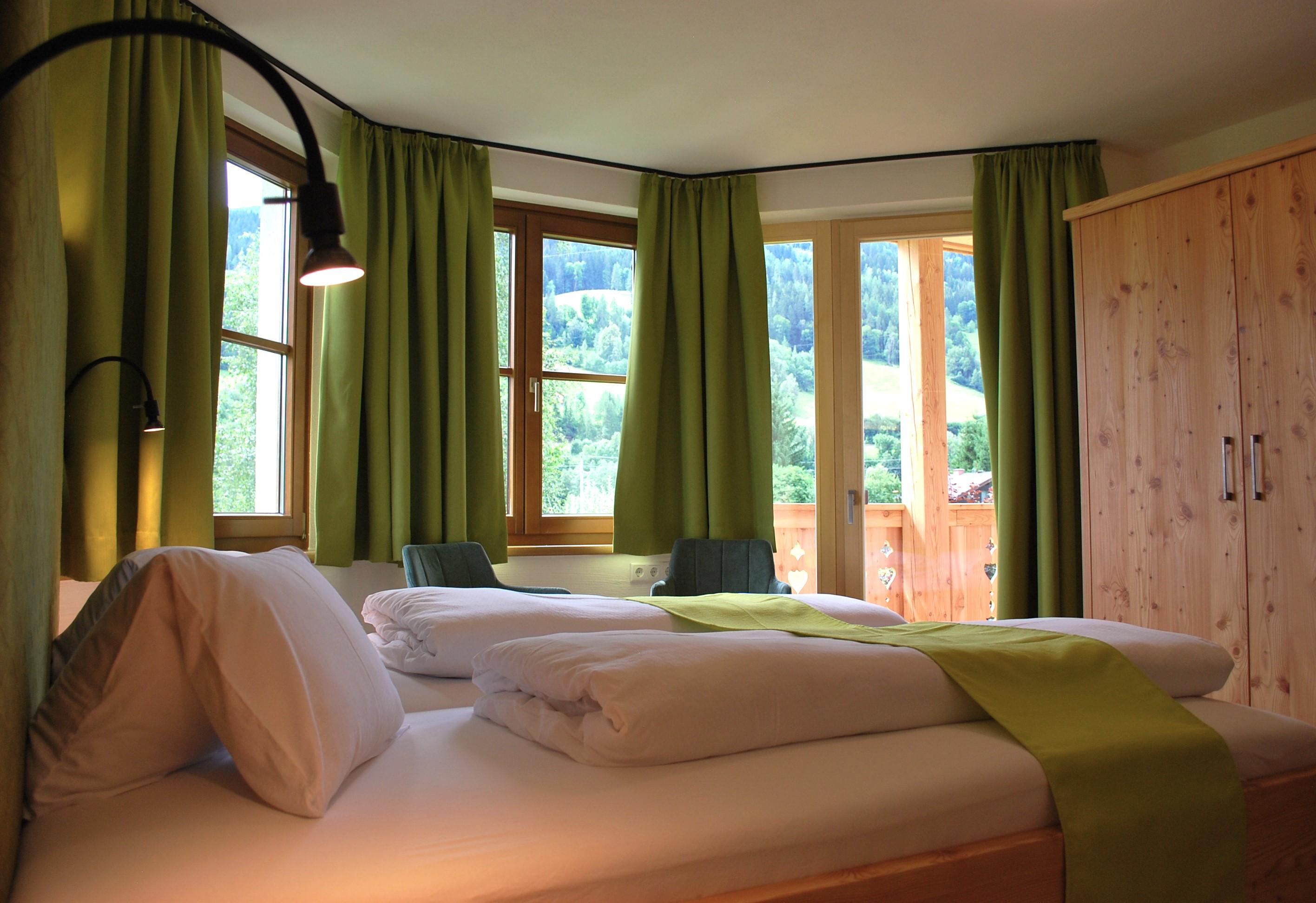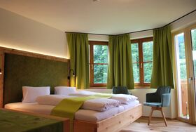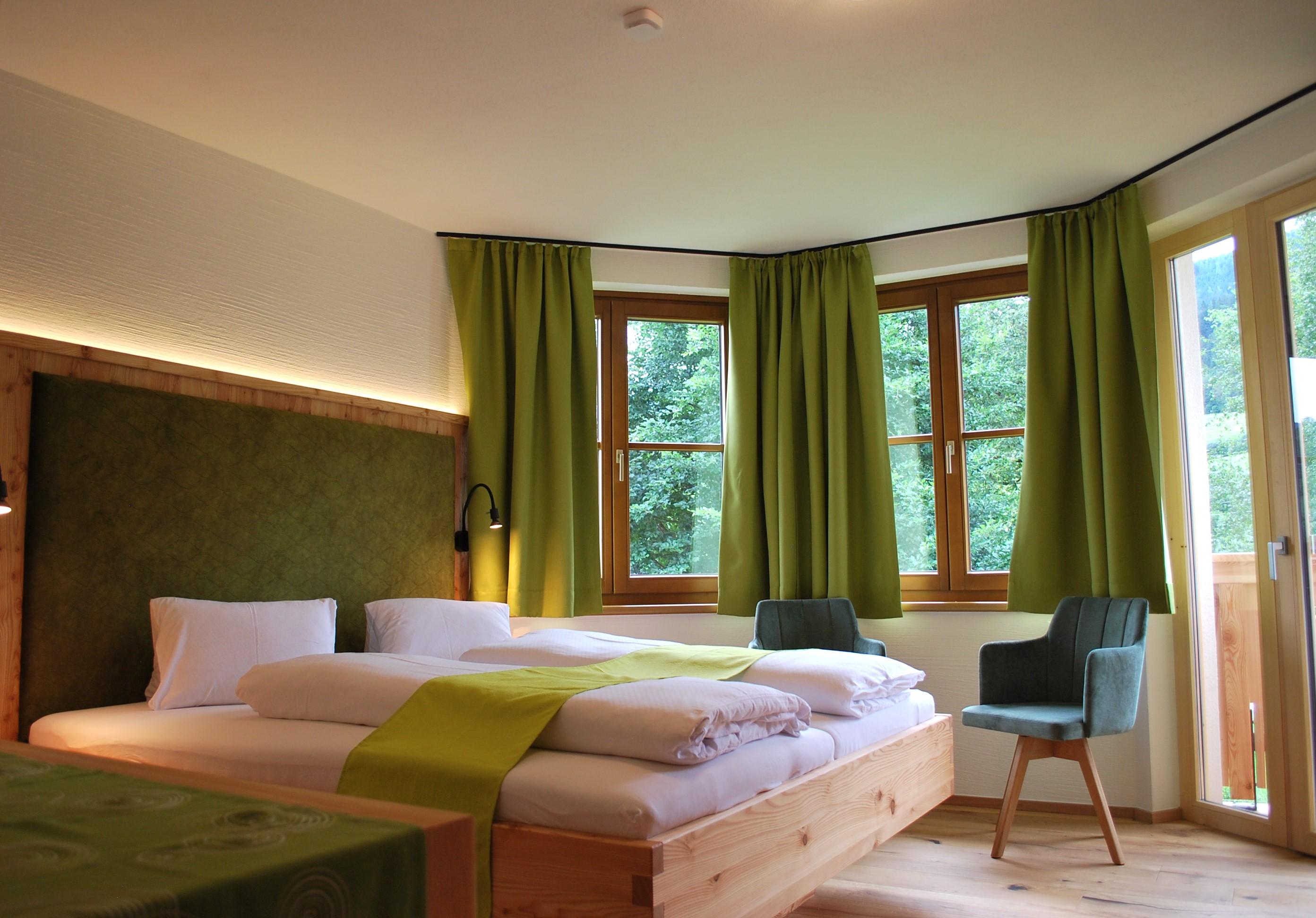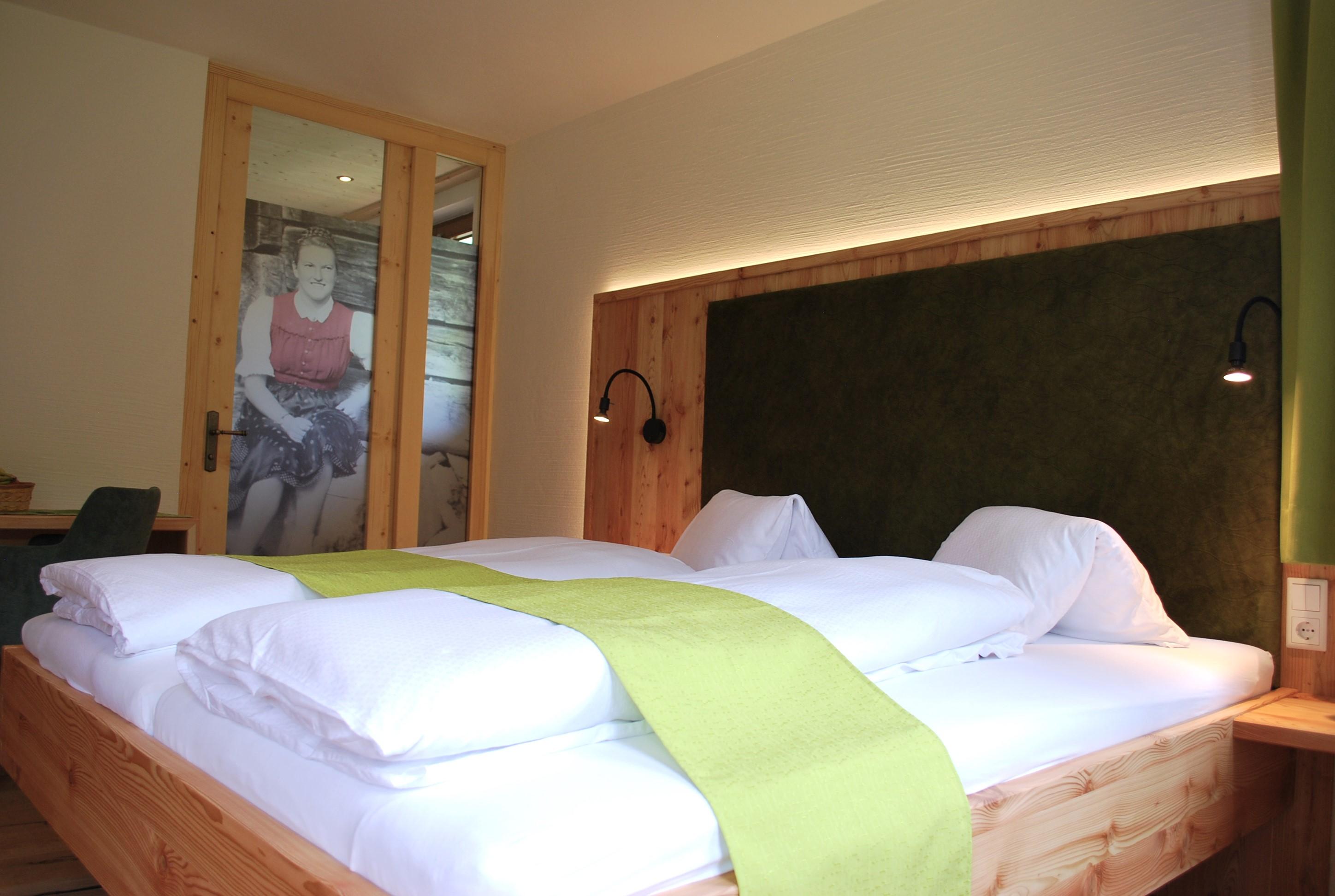 Geräumiges Doppelbettzimmer mit einem Vorraum und Dusche mit WC.