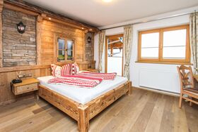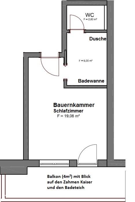 Urige Gemütlichkeit durch Verwendung von viel Altholz erwartet Sie Bauernkammer. Unser Zimmer für 2 Personen in Walchsee besitzt zudem ein Badezimmer mit Badewanne und Dusche sowie ein separates WC. Vom Balkon aus können Sie den sagenhaften Blick auf den Zahmen Kaiser und unseren Badeteich genießen.