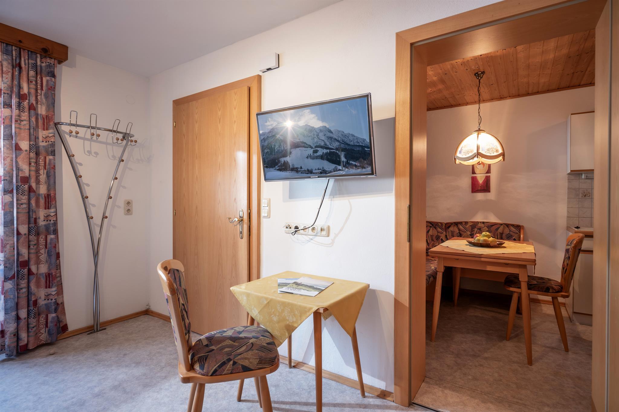 Freundlich eingerichtetes Appartement bestehend aus: Wohnküche (kompletter Küchenblock mit E-Herd, Backrohr, Kühlschrank), großer Wohn- Schlafraum mit SAT-TV, Dusche und WC, Vorraum, Balkon