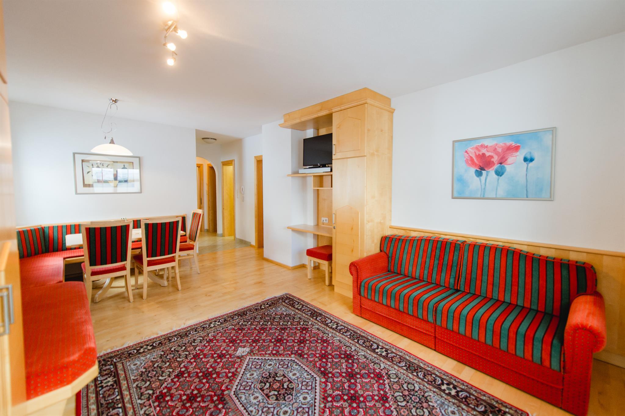 Gesundes Zirbenholz und hochwertigste Tischlerarbeit verleihen jedem unserer Appartements den besonderen Charakter. 1 Doppelzimmer mit Flat-TV, Safe, Badezimmer mit Bad oder Dusche/WC. Wohnzimmer mit ausziehbarer Couch für 1-2 weitere Personen, gemütliche Essecke, Flat-TV, Küche mit Filterkaffeemaschine, Mikrowelle, Geschirrspüler, Wasserkocher, Herd, Kühlschrank). Kostenfreies WLAN. Sonnenbalkon mit herrlicher Aussicht.