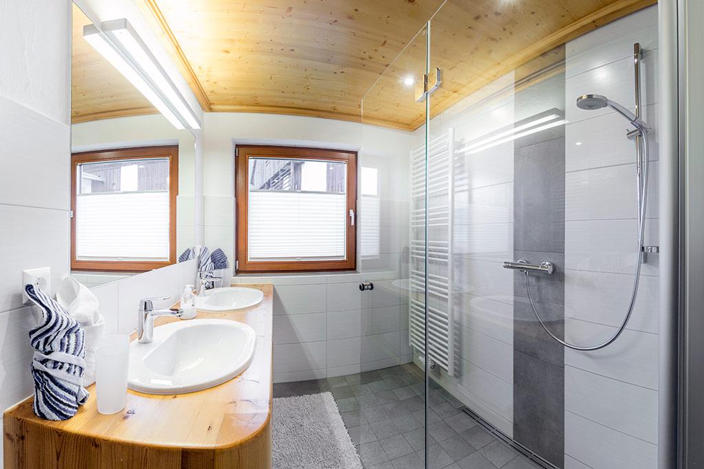 Ferienwohnung Hochstadel (95 m²) mit 2 großzügigen Schlafzimmern mit je 2 Doppelbetten, großem, gemütlichen Wohnzimmer mit Panoramafenster, Flachbild-TV, Küche mit Geschirrspüler, eigenem Balkon, Bad: Dusche/WC 2 Waschbecken, extra WC.