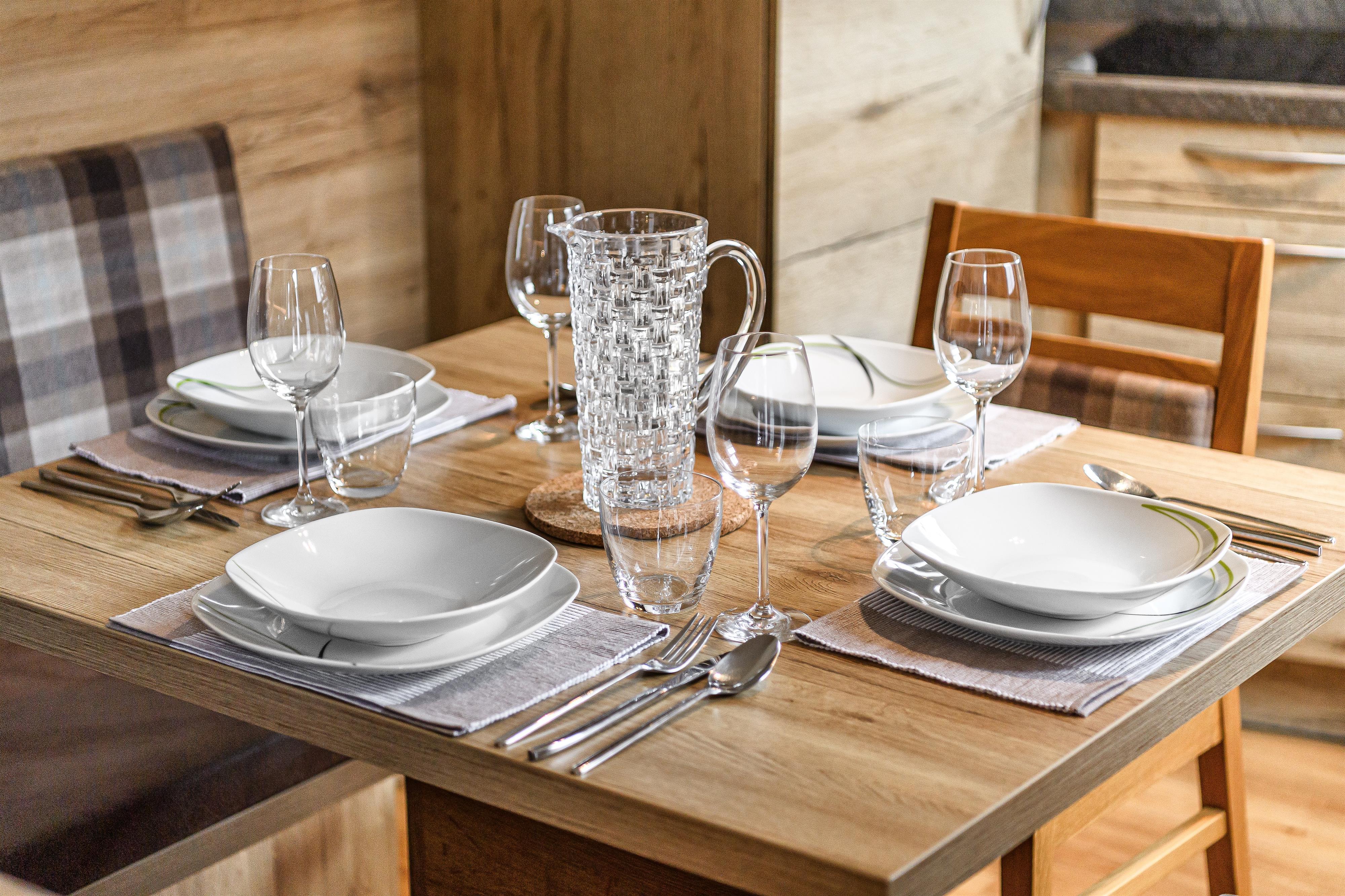 Unsere Ferienwohnungen bestehen aus: Geschirrspüler, Kaffeemaschine, Wasserkocher, Mikrowelle und Toaster