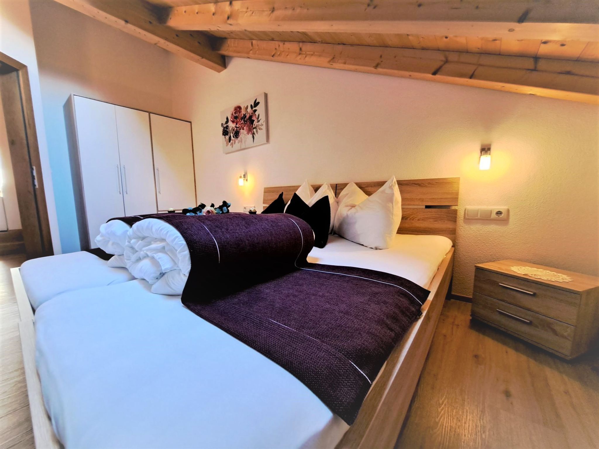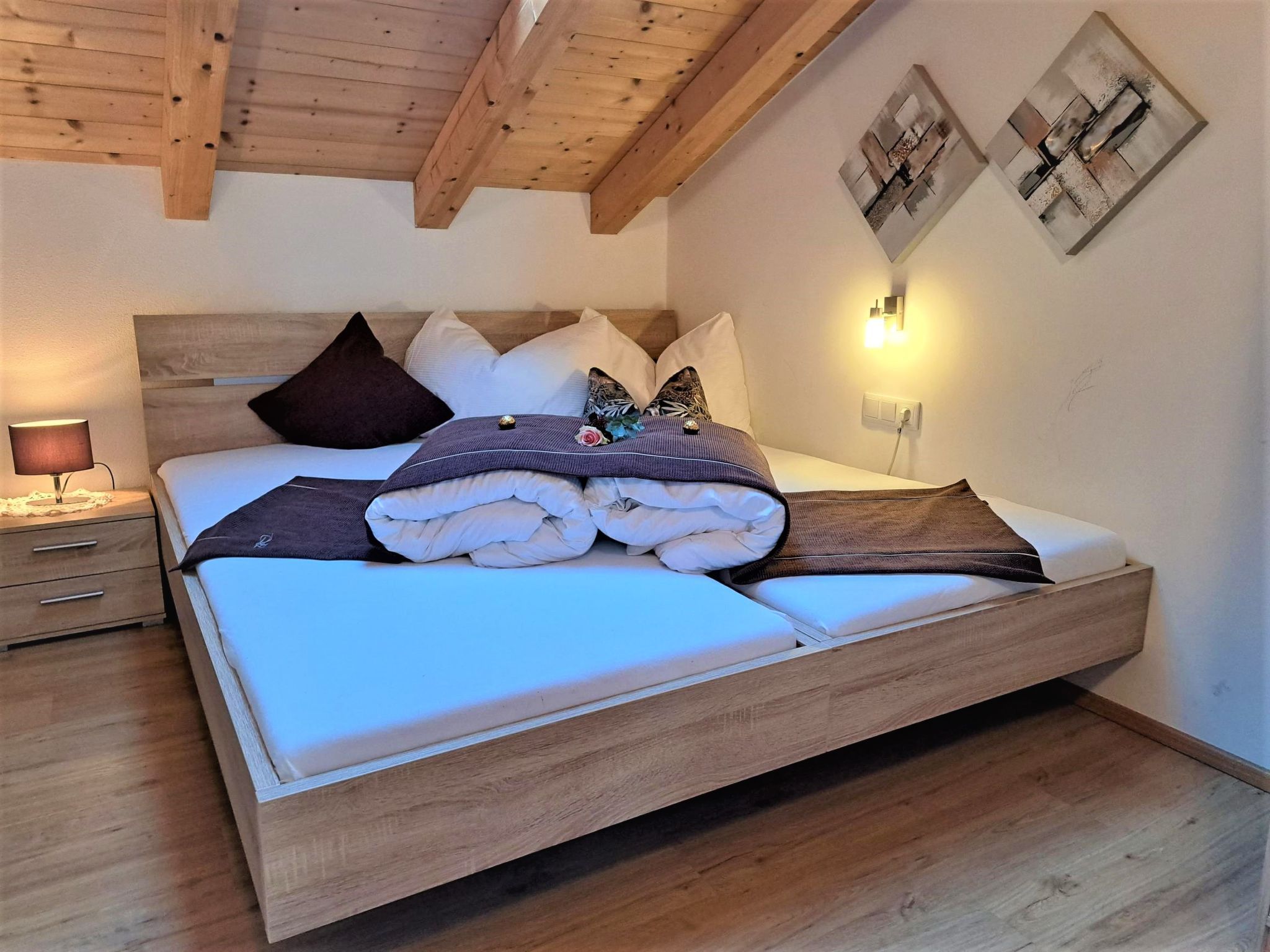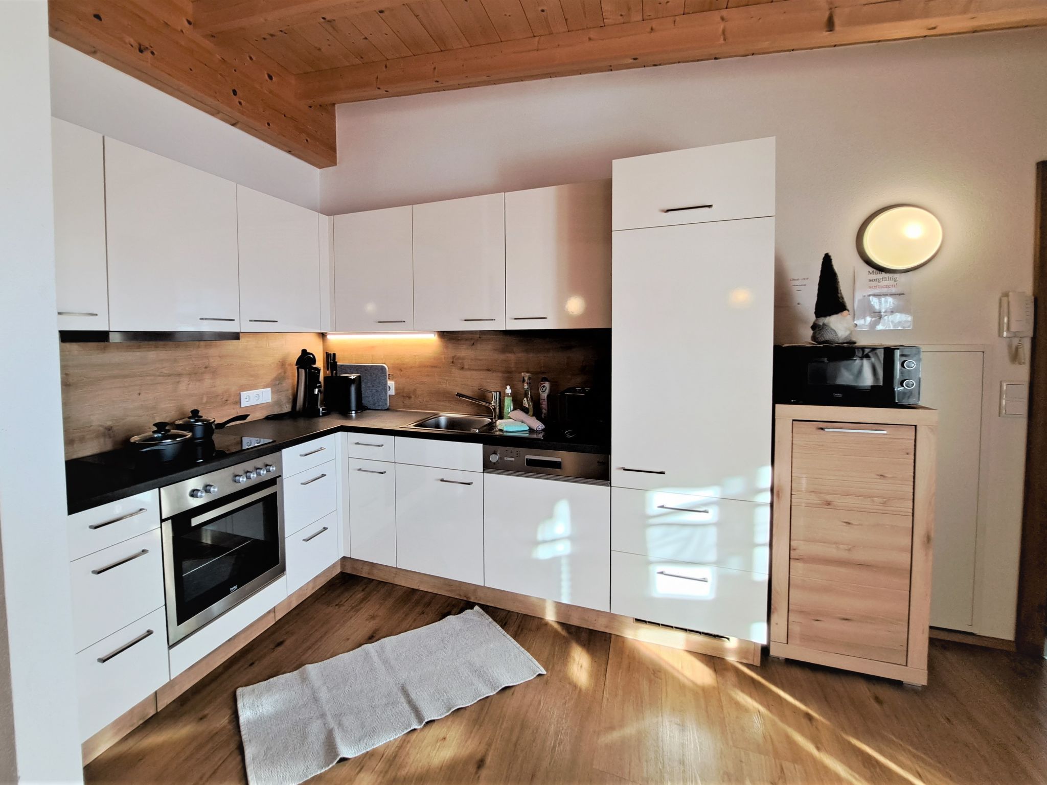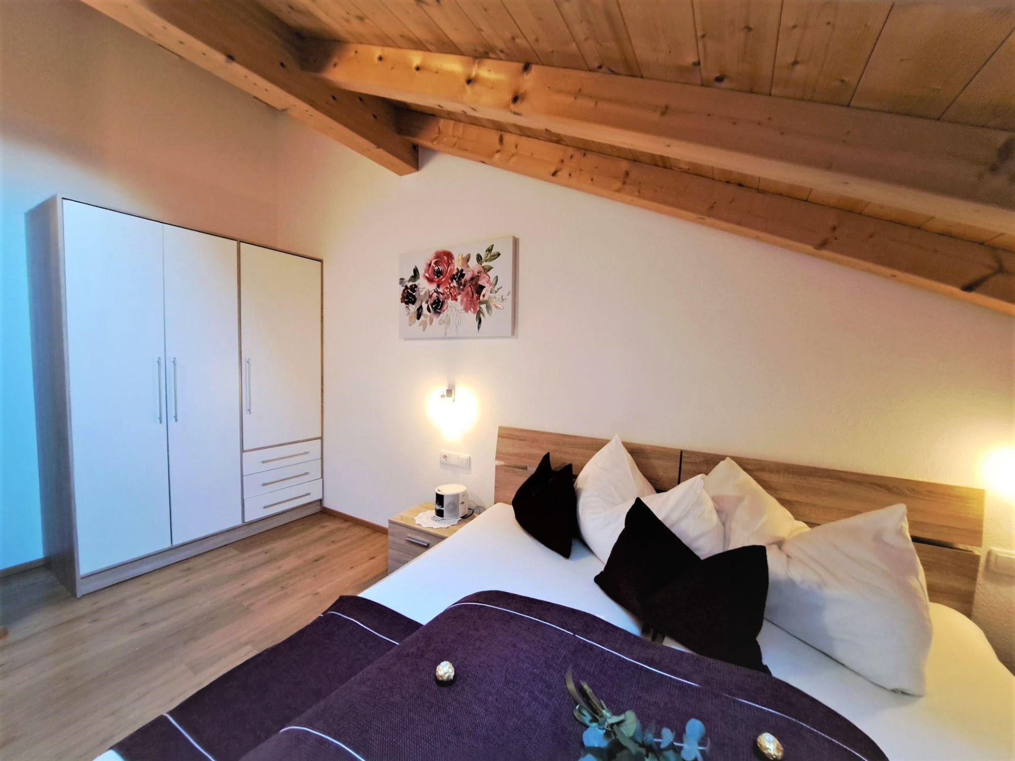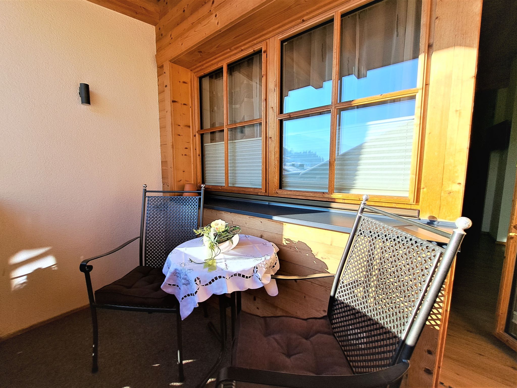 Margret, Top 12, 3-Zimmer-Wohnung 65 m2 im 2. Stock. Teilweise abgeschrägt, schön und geschmackvoll eingerichtet: 1 Doppelzimmer. 1 Zimmer mit 1 Diwanbett und 1 Doppelbett. Wohnküche (Backofen, Geschirrspüler, 4 Glaskeramikplatten, Wasserkocher, Mikrowelle, elektrische Kaffeemaschine) mit Essecke und TV (Flachbildschirm). Bad/WC. Fussbodenheizung. Balkon. Balkonmöbel. Herrliche Panoramasicht auf die Berge. Zur Verfügung: Internet (Wireless LAN, gratis).