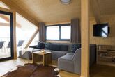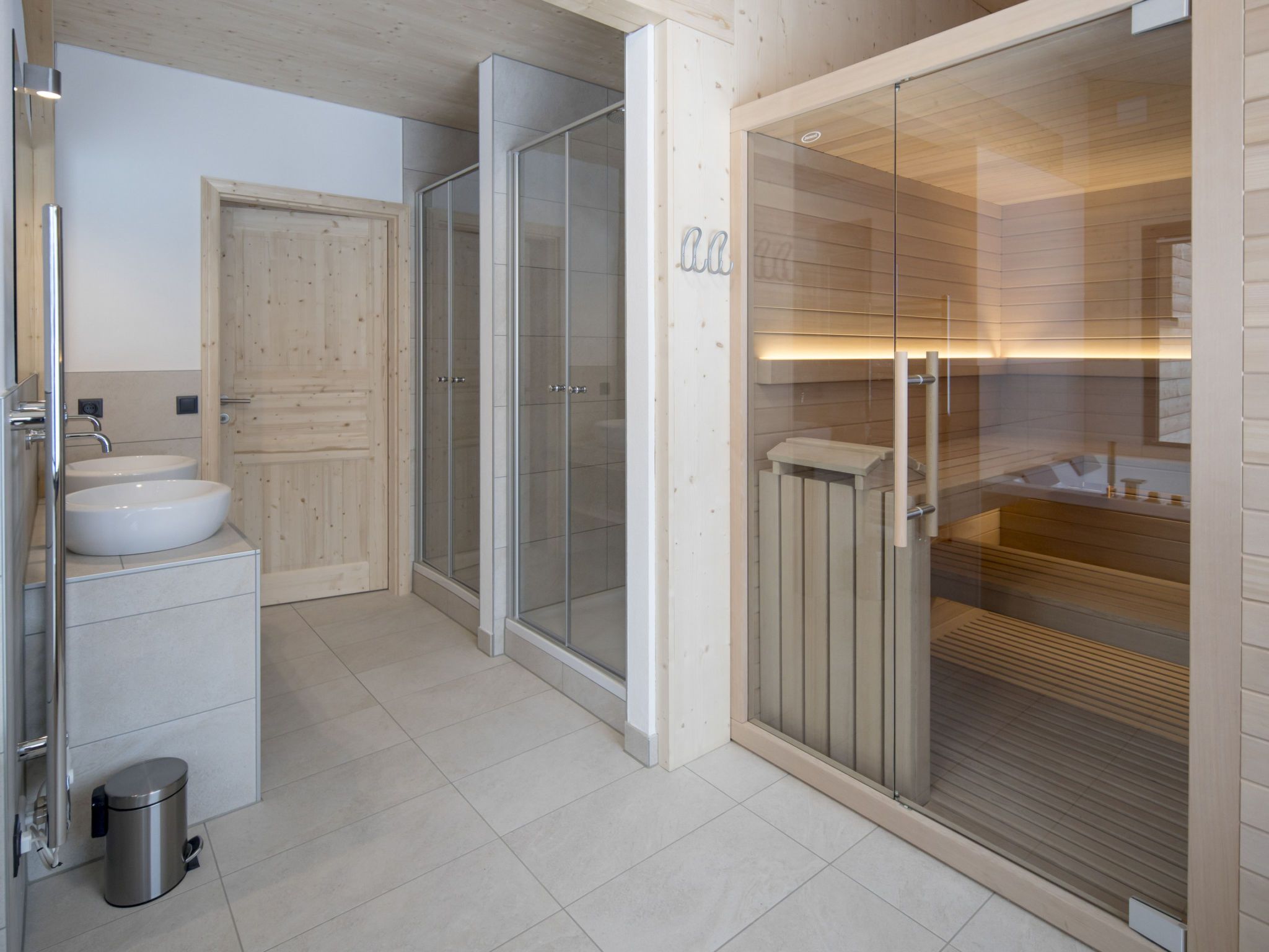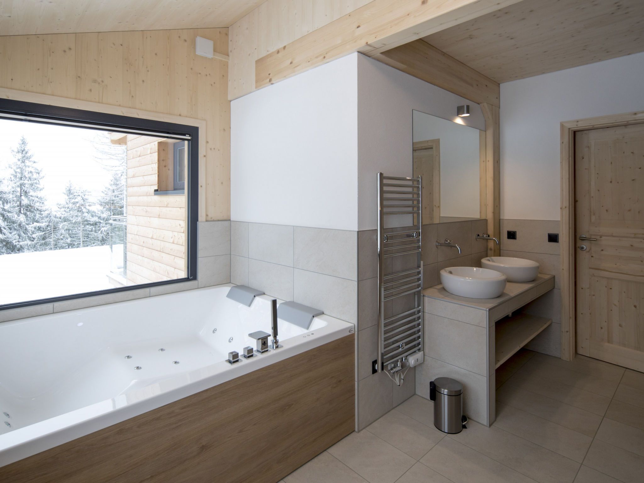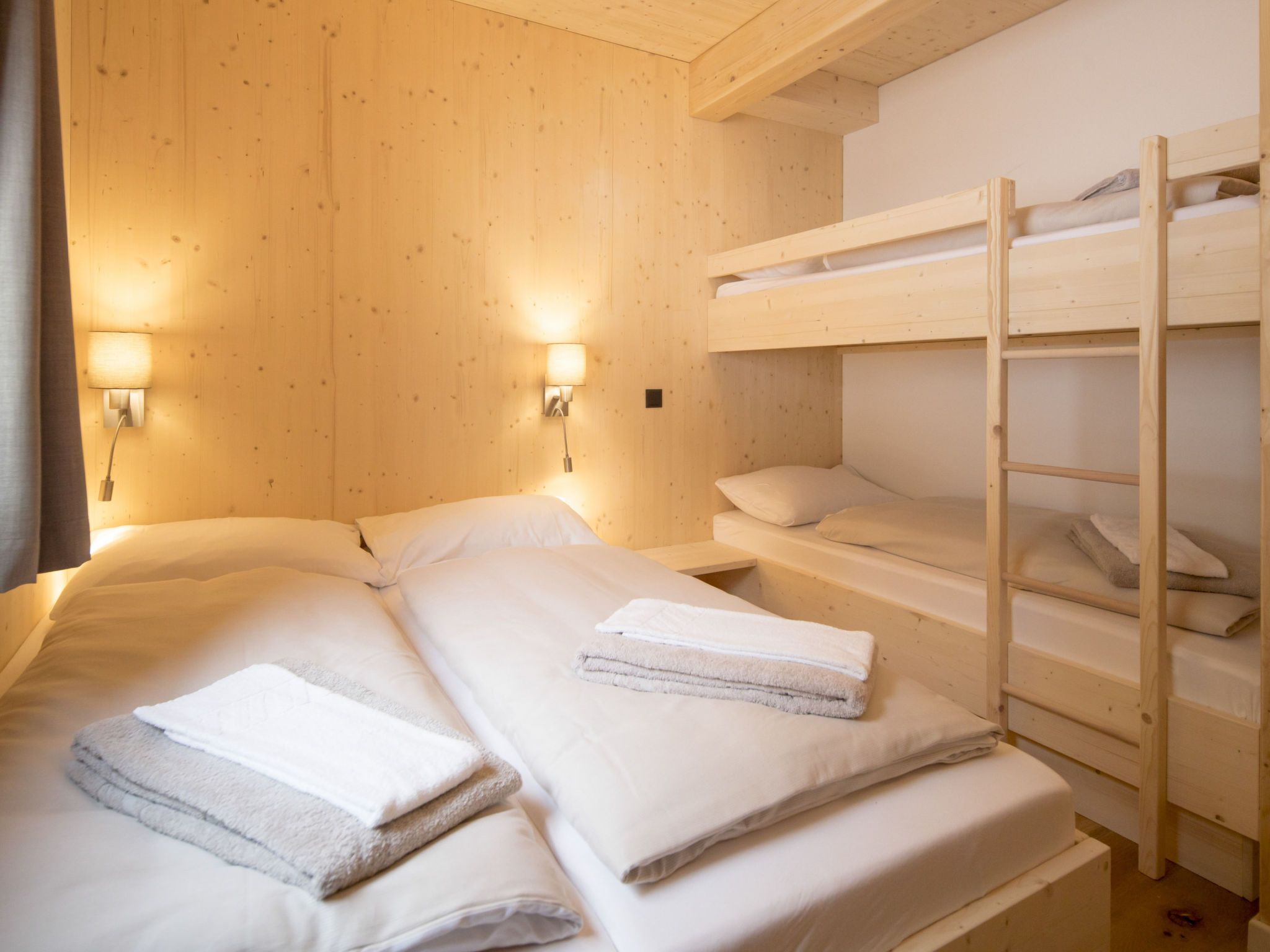 Superior 04 Sauna&Sprudelwanne innen, 5-Zimmer-Chalet 120 m2. Komfortabel und geschmackvoll eingerichtet: Wohn-/Esszimmer mit Essecke und Sat-TV (Flachbildschirm). 3 Doppelzimmer. 2 Zimmer, jedes Zimmer mit 2 x 2 Etagenbetten. Offene Küche (Backofen, Geschirrspüler, 4 Glaskeramikplatten, Toaster, Wasserkocher, Mikrowelle, elektrische Kaffeemaschine). Bad/WC, 3 Duschen/WC, 3 sep. WC's, Whirlbadewanne, Sauna. Balkon Terrasse. Terrassenmöbel. Sehr schöne Sicht auf die Berge. Zur Verfügung: Haartrockner. Internet (Wireless LAN, gratis). Bitte beachten: Nichtraucher-Unterkunft. Beim Mietobjekt handelt es sich um ein Typenhaus bzw. Um eine Typenwohnung.