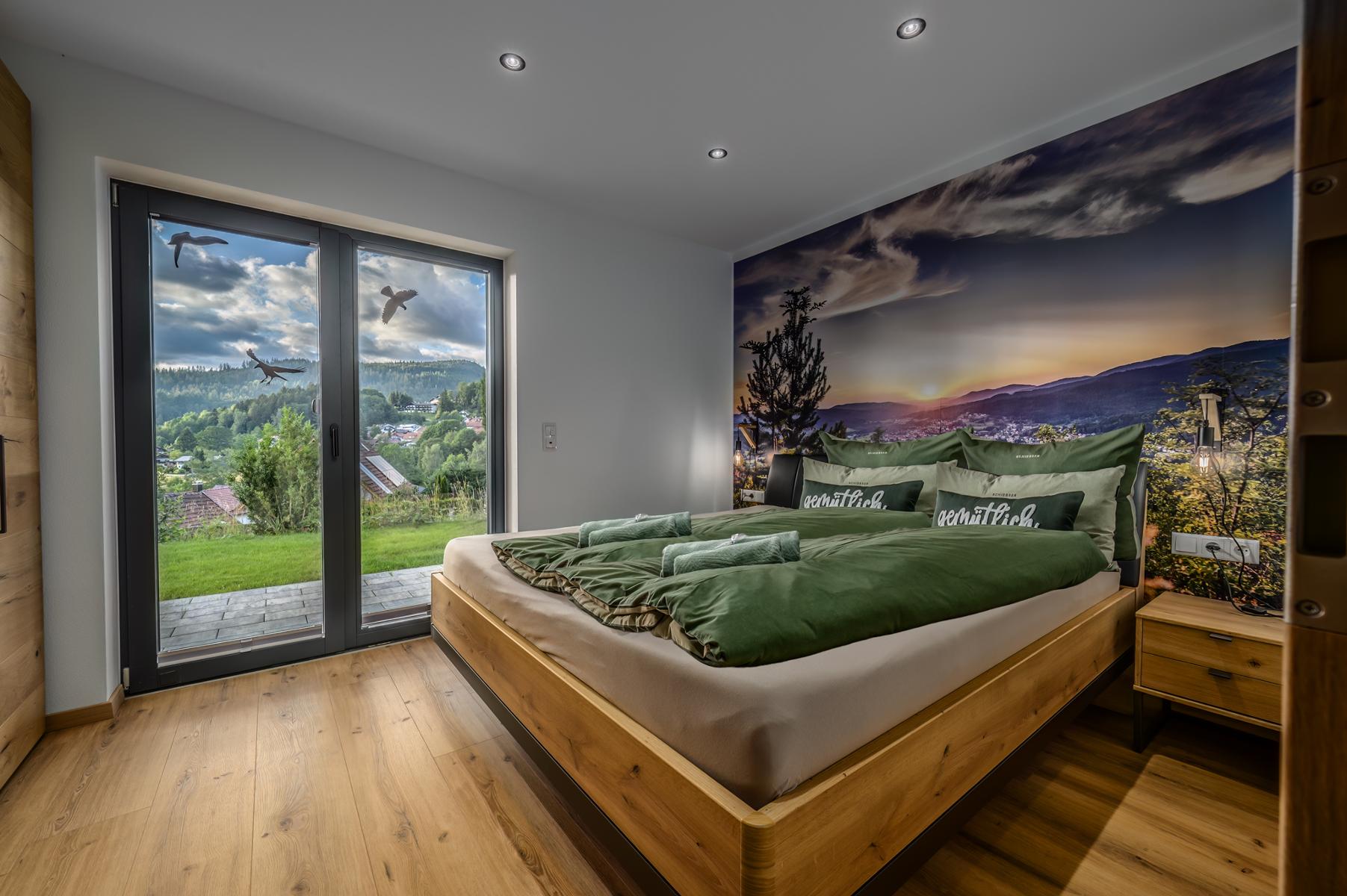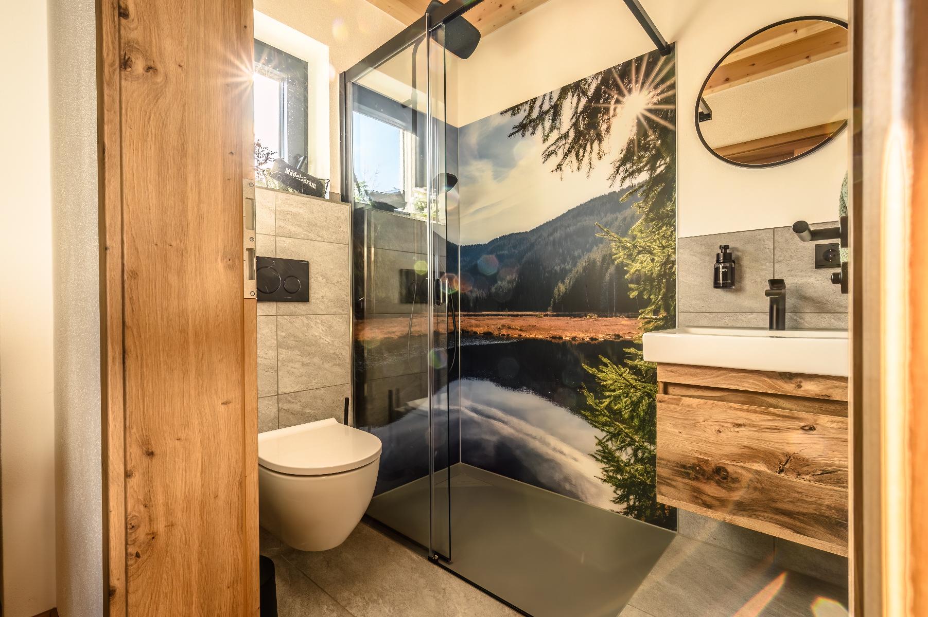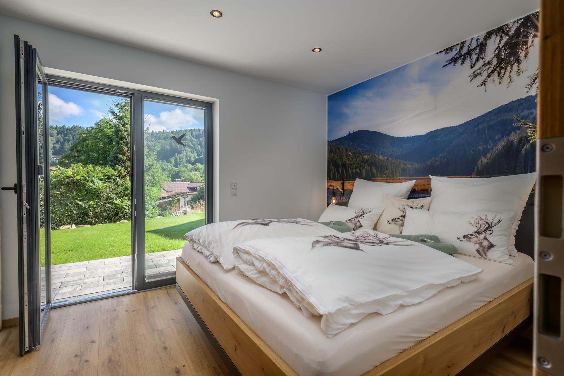 Es stehen pro Haus zwei Schlafzimmer zur Verfügung: ein Schlafzimmer mit großem Doppelbett und Smart-TV und einem weiteren Schlafzimmer mit zwei Einzelbetten. Das Chalet WoidLiebe hat Platz für 4 Personen. Auch für ein Kleinkind/Baby ist bei uns immer Platz.