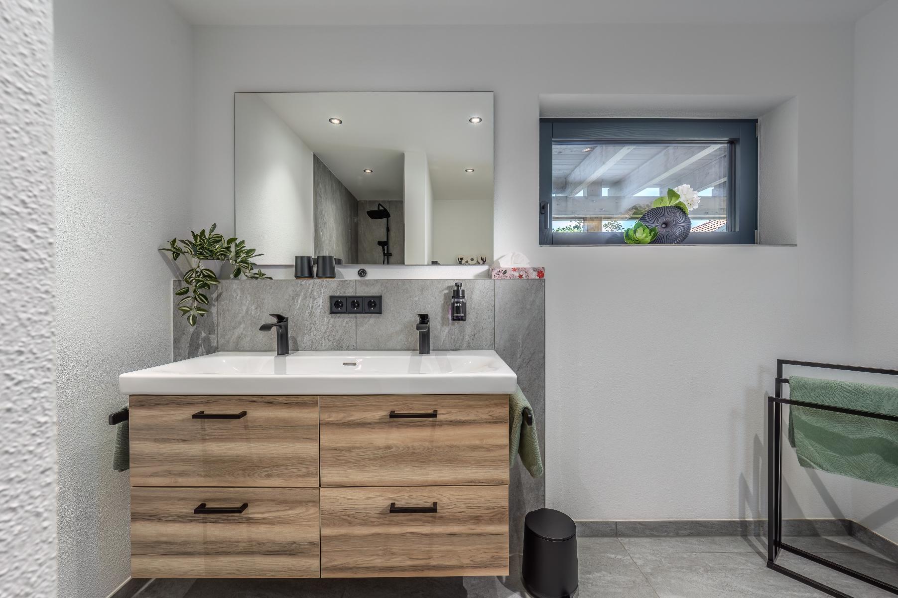Zudem verfügen unsere Häuser über ein großes Bad im Erdgeschoss, sowie ein kleineres Bad mit Dusche im Obergeschoss.