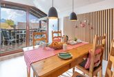Die Wohnung verfügt über ein gemütliches Wohnzimmer mit Schlafcouch und Zugang zu beiden Balkonen. Über das separate Esszimmer haben Sie Zugang zum Süd-Balkon, vom Schlafzimmer mit Doppelbett können Sie den Ost-Balkon betreten. Das Badezimmer wurde kürzlich komplett renoviert und bietet moderne Annehmlichkeiten, um Ihren Komfort zu gewährleisten. Vervollständigt wird die Ferienwohnung durch eine voll ausgestattete Küche, um Ihre Lieblingsmahlzeiten zubereiten zu können.