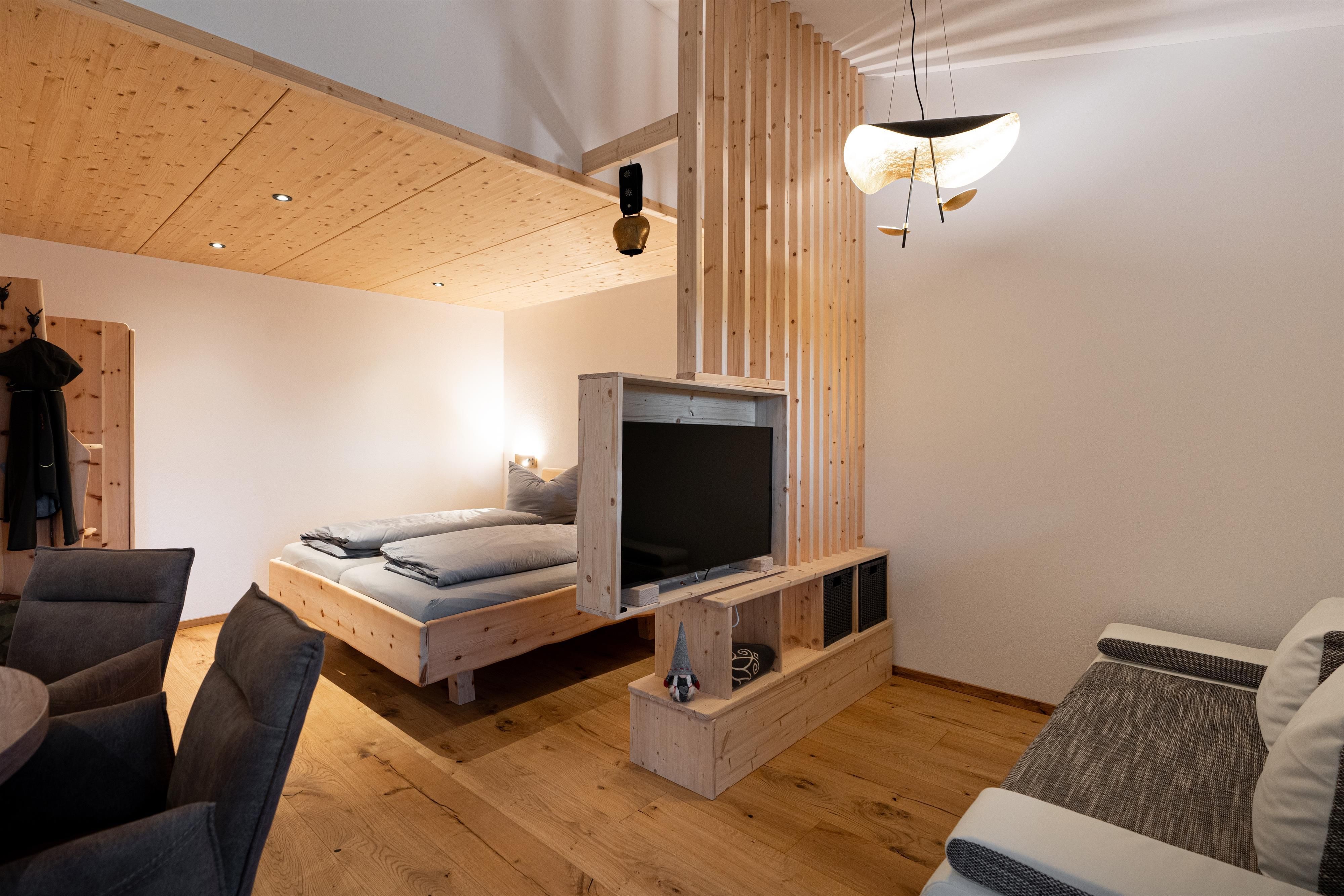 Im Zirbenholz-Doppelbett erlebt jeder erholsamen Schlaf.