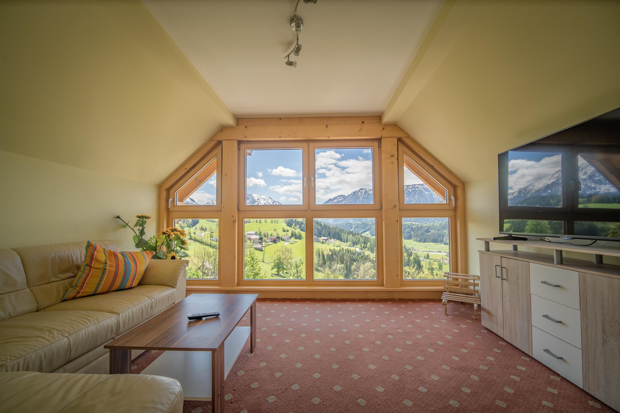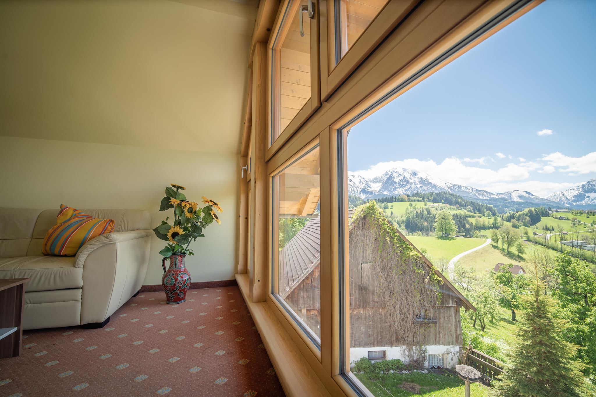 Für alle Frischluftfanatiker gibt es einen traumhaft angelegten Gastgarten mit Panoramablick ins Garstnertal, eingeschlossen von 21 imposanten Gipfeln über 2000 Meter.