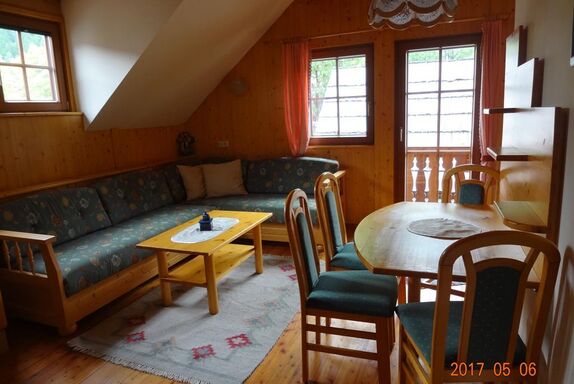 40 m² große FeWo. 2 FeWo im Haupthaus der sogenannten Alten Mühle. Ihr Urlaub wird zum Erlebnis... Streicheltiere: Katzen, Enten, Kälber, Ziegen ,Kühe, Pferde. Hofeigene Lebensmittel. (Speck, Käse, Topfen..) Spielplatz, Liegewiese, Sauna inkl Ruheraum, Skistall, Reiten, Hausprospekt anfordern!