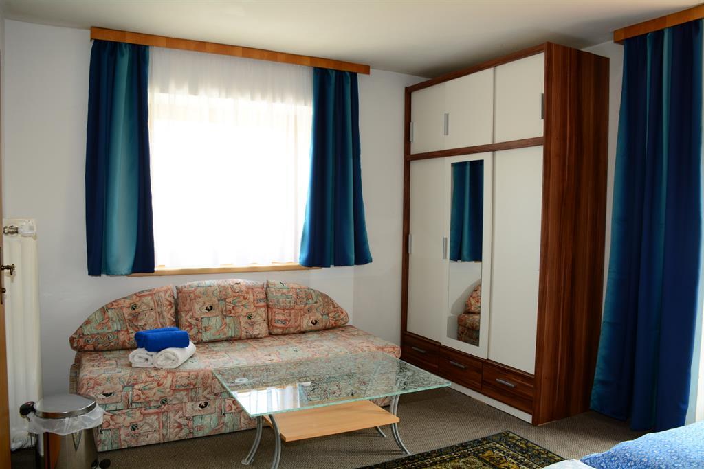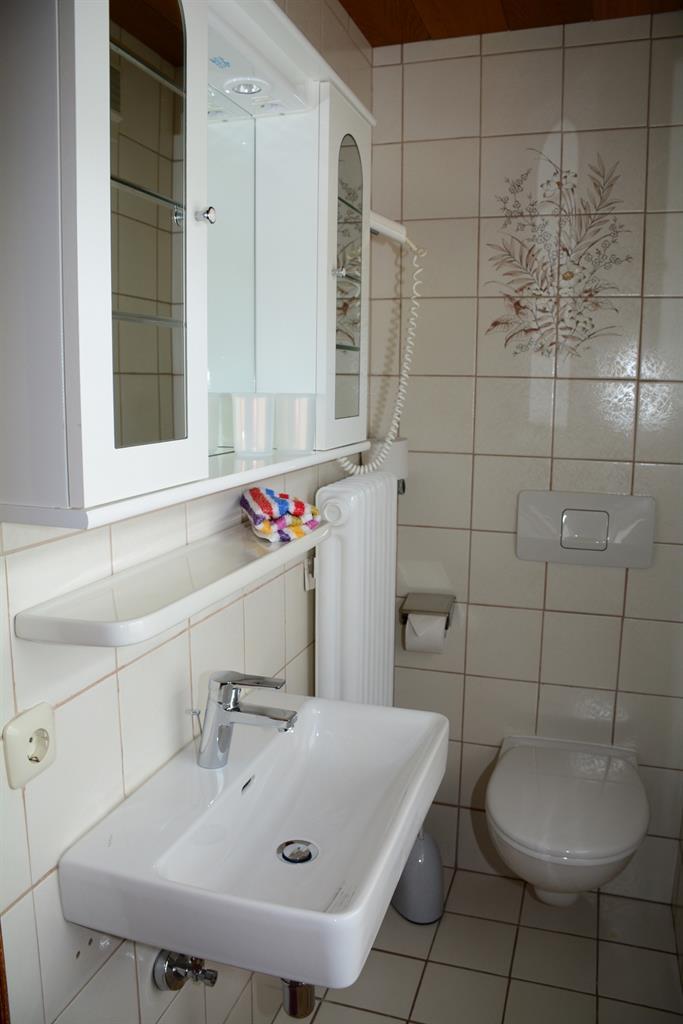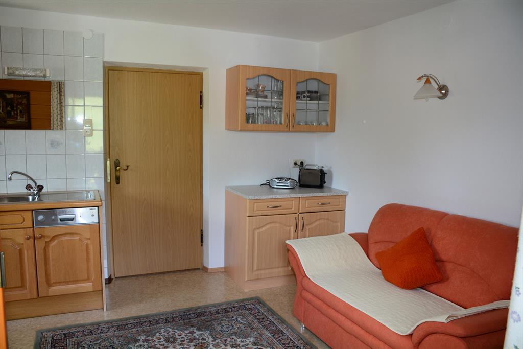 Gemütliche FEWO 30 m², Doppelschlafzimmer, Wohnküche komplett eingerichtet mit Flat-TV, Bad mit WC/Dusche, Balkon. Extra-Doppelzimmer 18 m² (gegenüberliegend, inkl. wenn für 3 - 4 Personen gebucht) mit Sat-TV, Dusche/WC und Südbalkon.