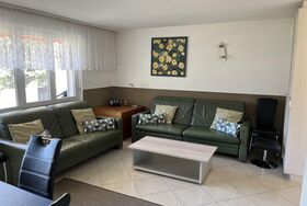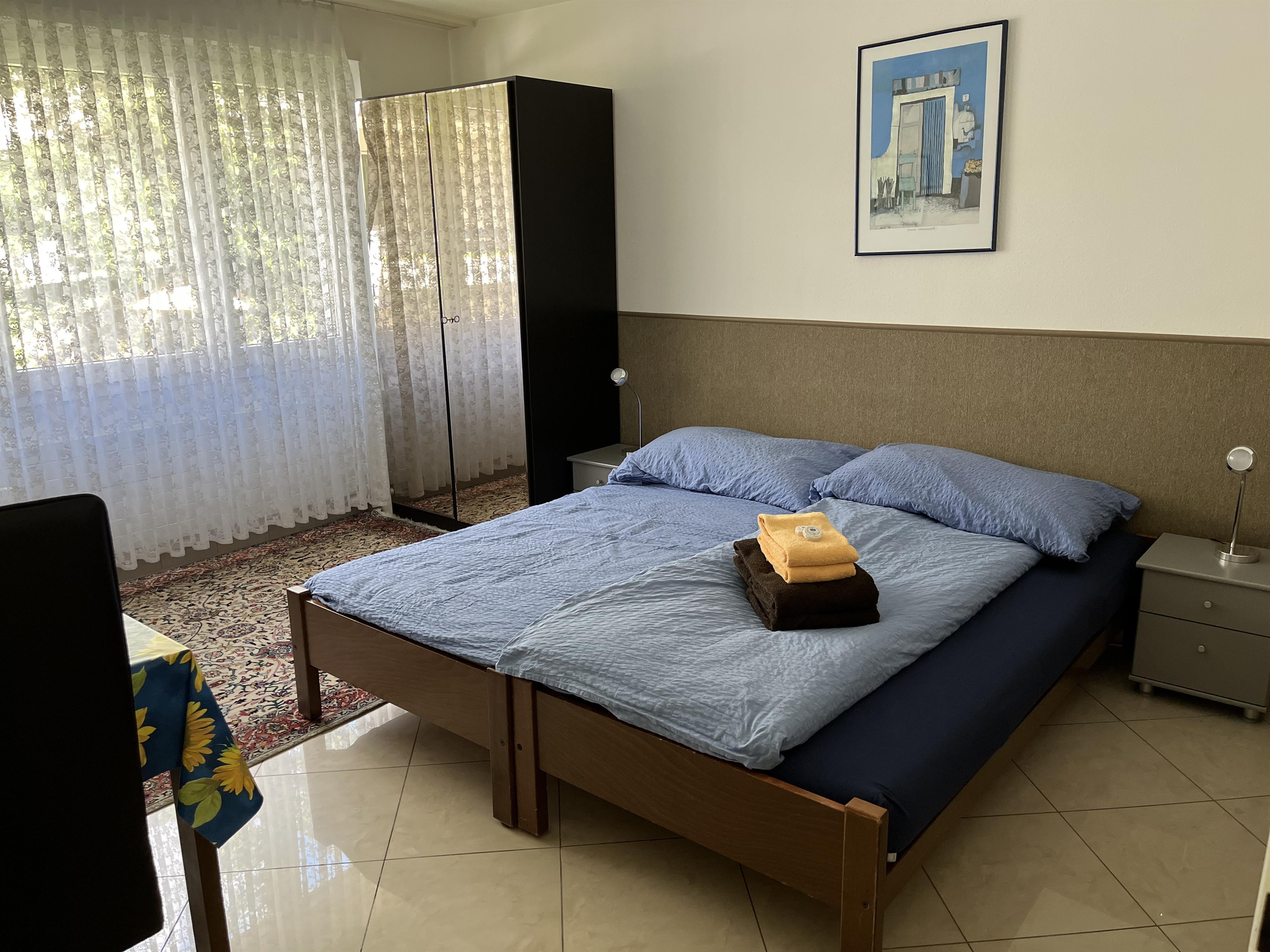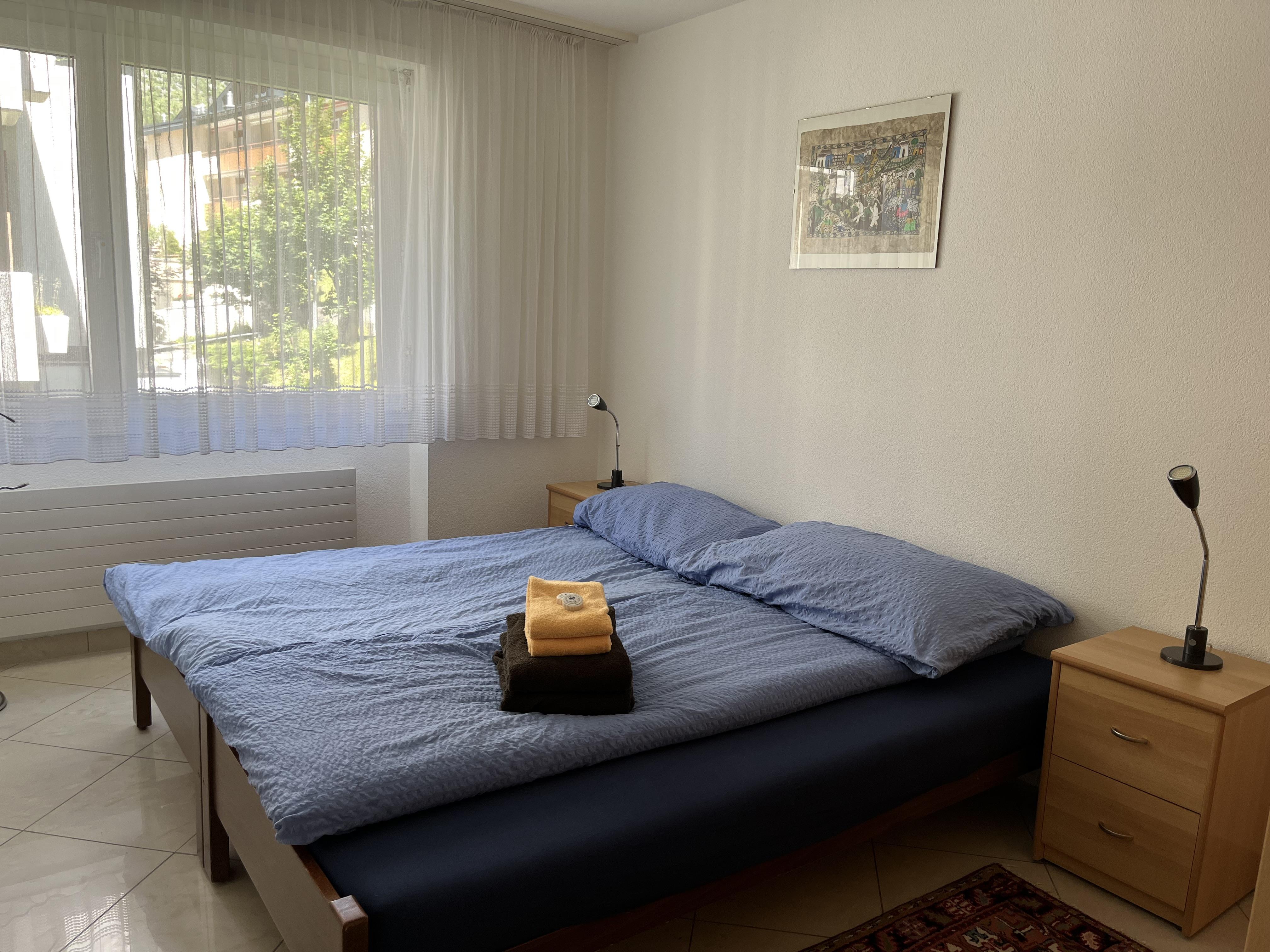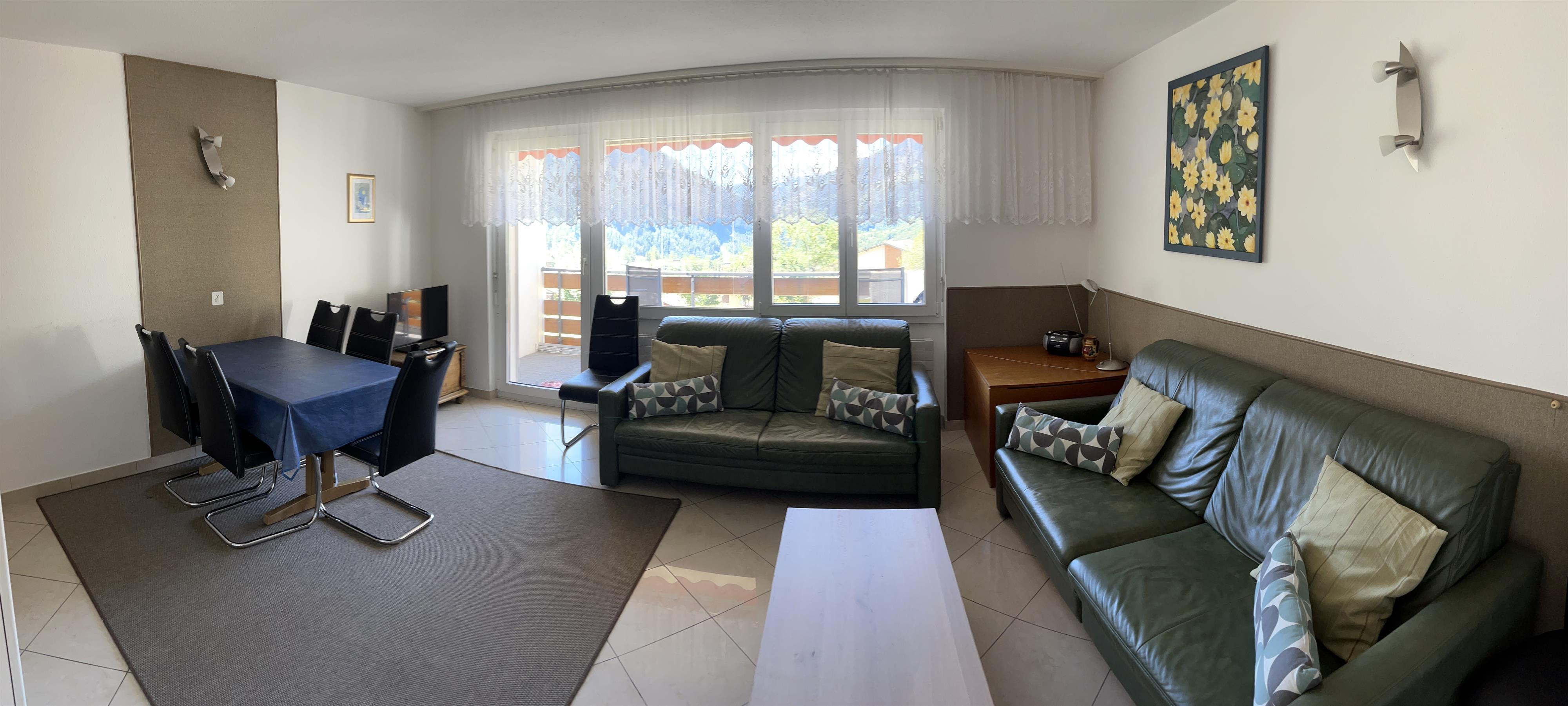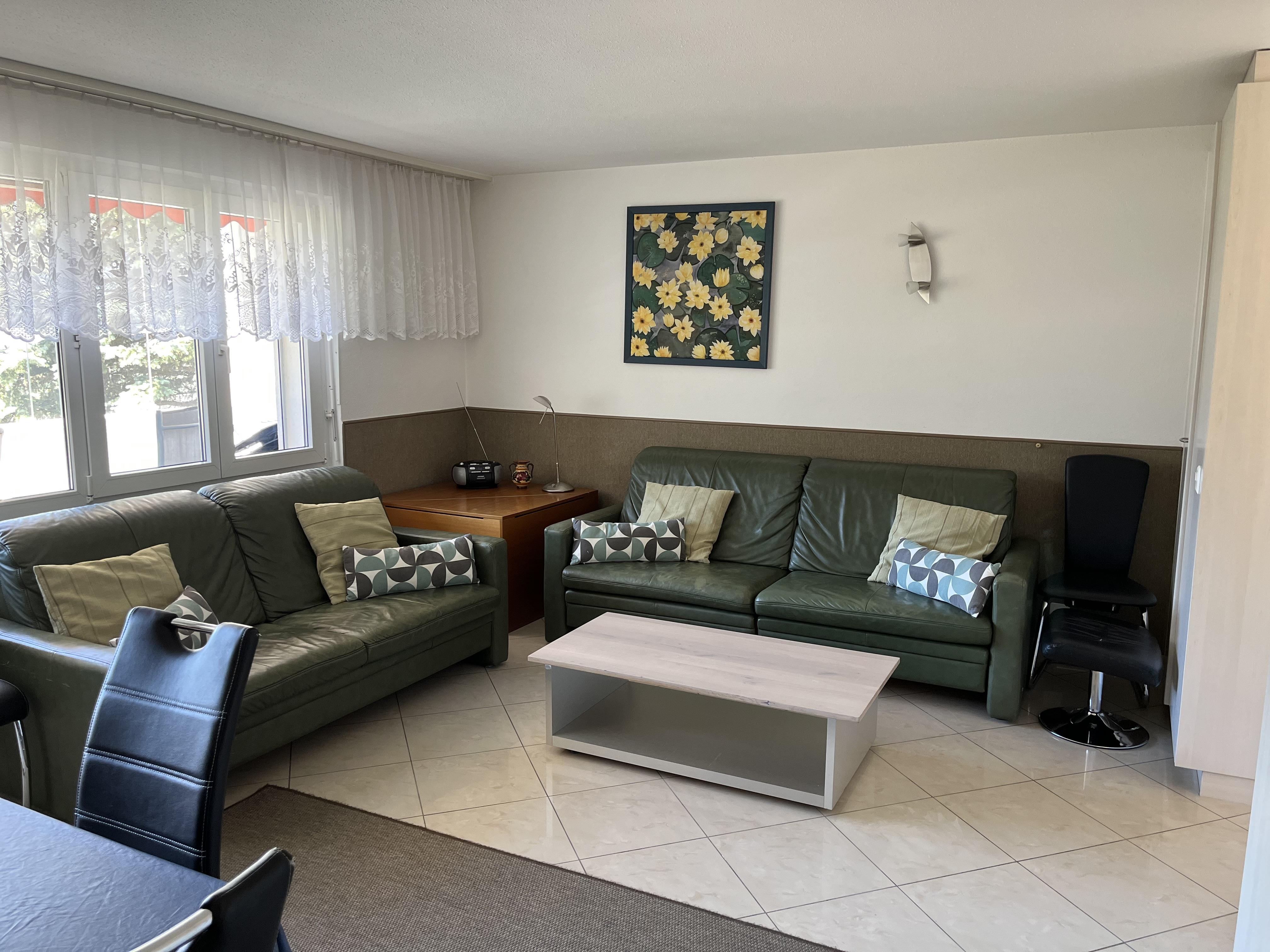 3-Zimmerwohnung: Küche, Wohn-/Esszimmer mit 2 Betten, zwei 2-Bettzimmer, 2x Bad/WC, Radio, TV, Wireless Internet gratis, Südbalkon. Garage im Haus inklusive.