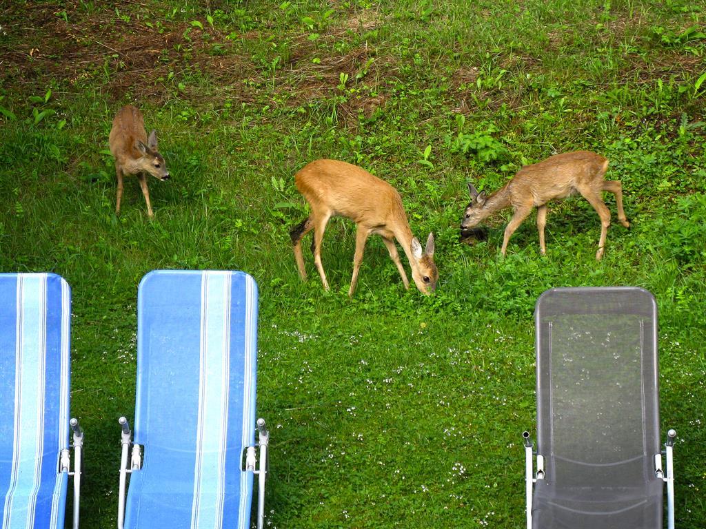 Unser großer hauseigene Garten und Wald mit Kinderspielplatz lädt zum entspannen ein oder Sie genießen den herrlichen Ausblick über den idyllischen Wildsee mit seinen faszinierenden Jahreszeiten vom Balkon oder Terrasse ihrer Ferienwohnung.