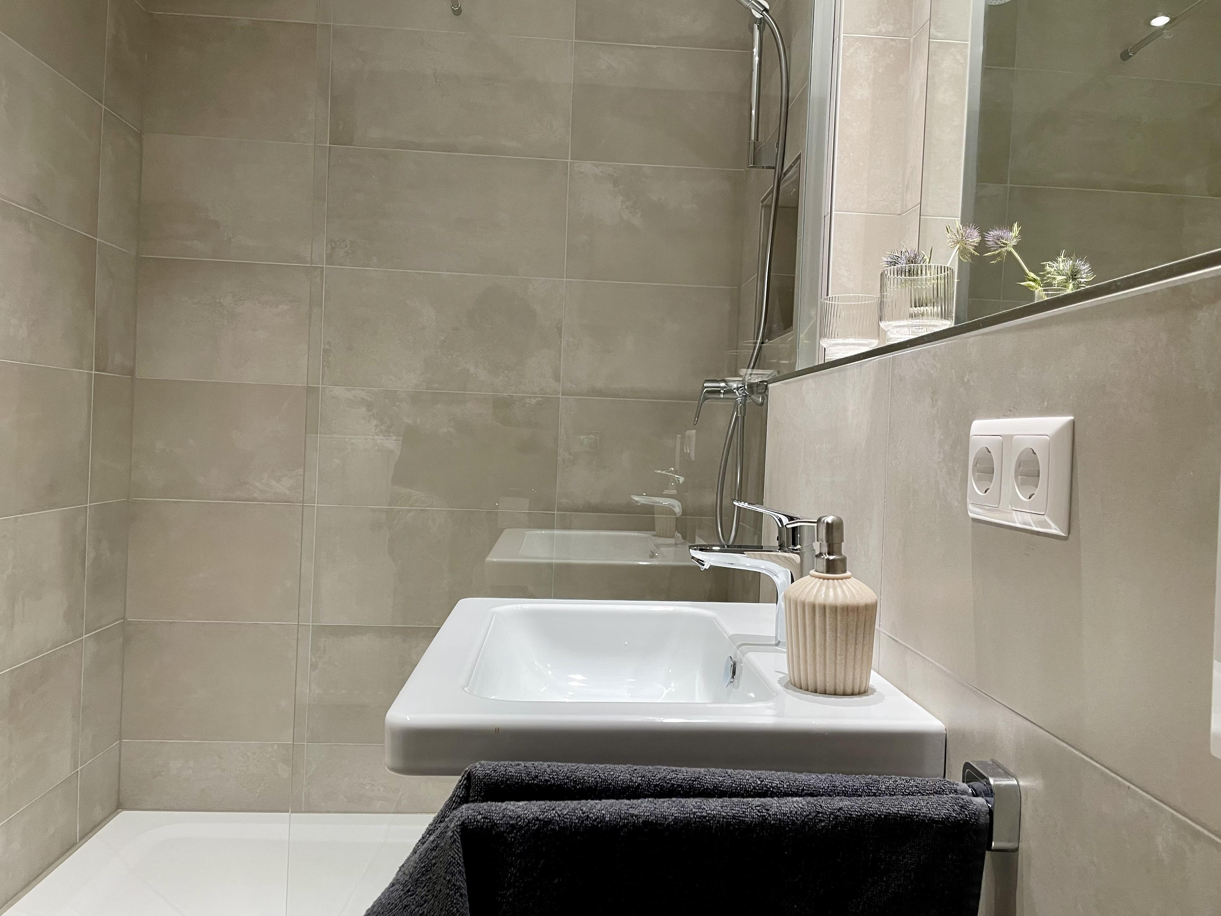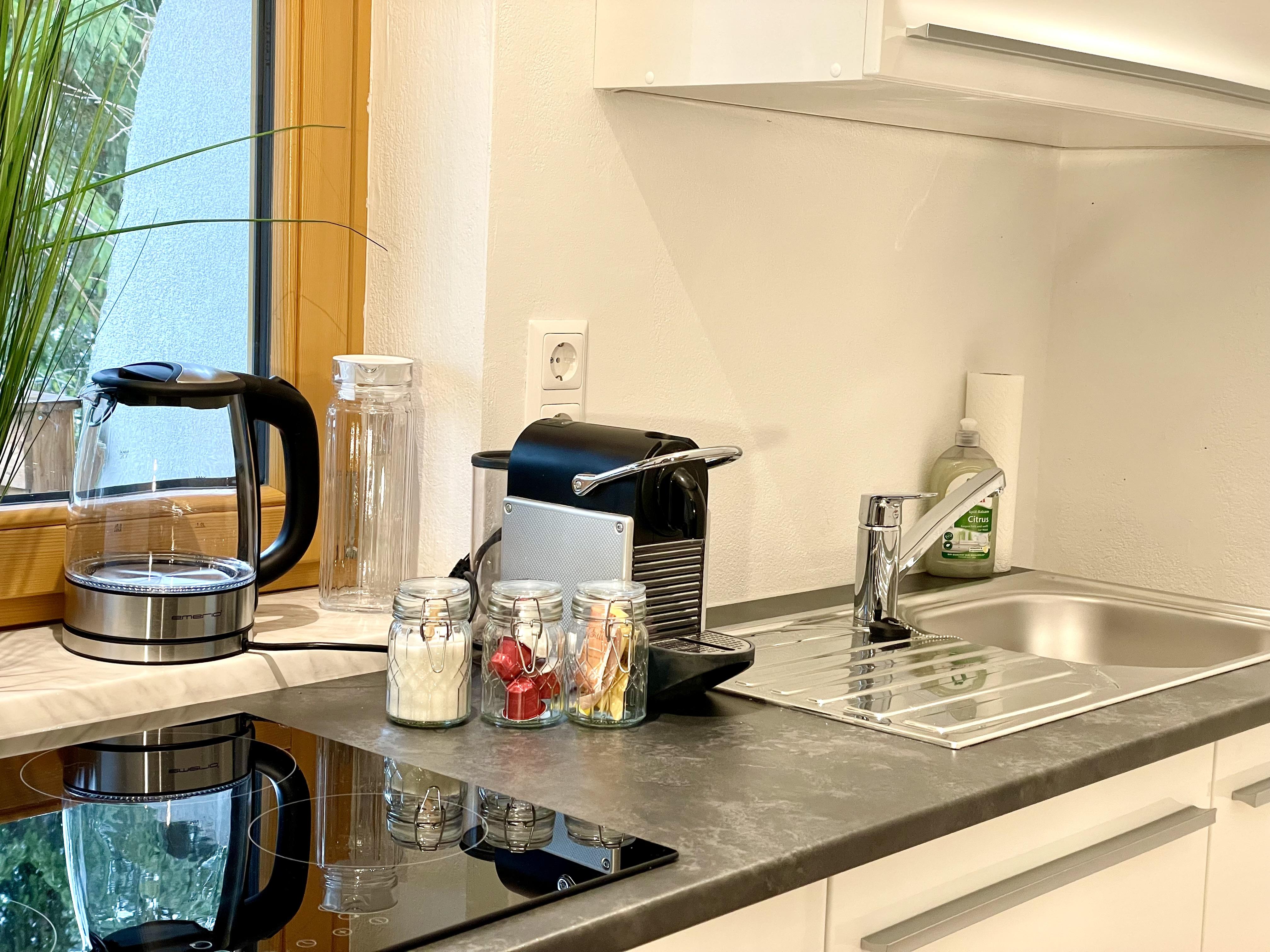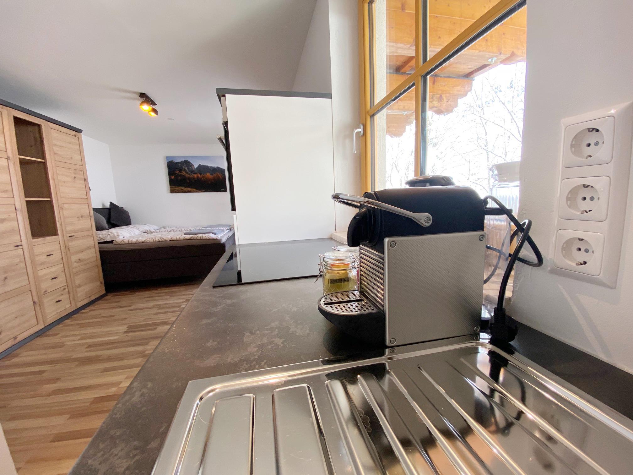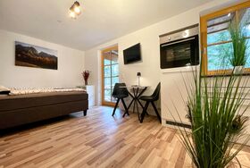 Das neue Appartement ist hochwertig ausgestattet, Kingsize Bett, Küche mit Spülmaschine, Kaffemaschine, Wasserkocher, Kühlschrank mit Gefrierfach, Herd mit Backofen, modernes Bad, eigene, überdachte Terrasse mit Möbeln, eigener Parkplatz am Haus, seperater Eingang.