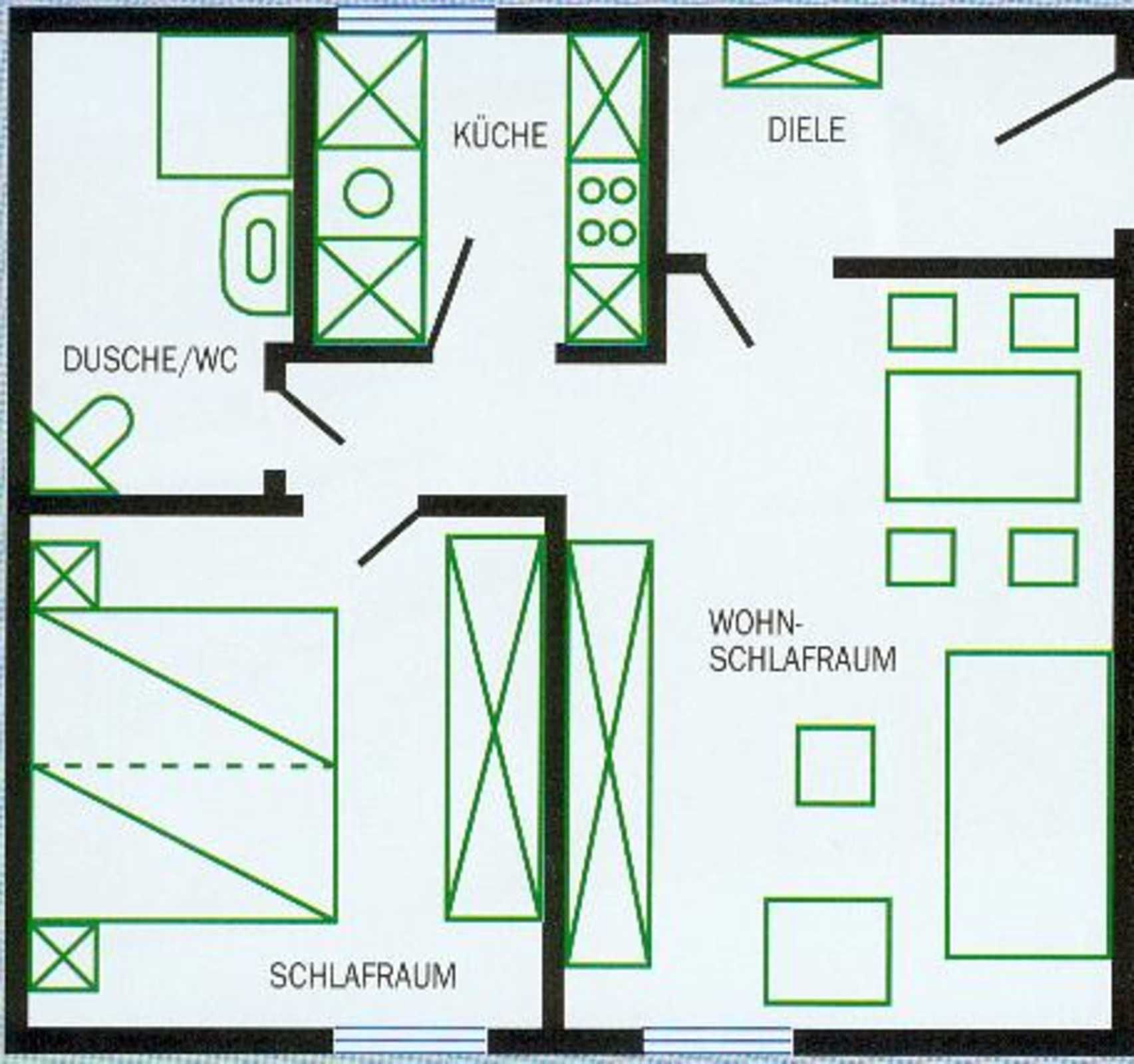 •    komplett eingerichtete Einbauküche mit E-Herd, Geschirrspüler und Mikrowelle