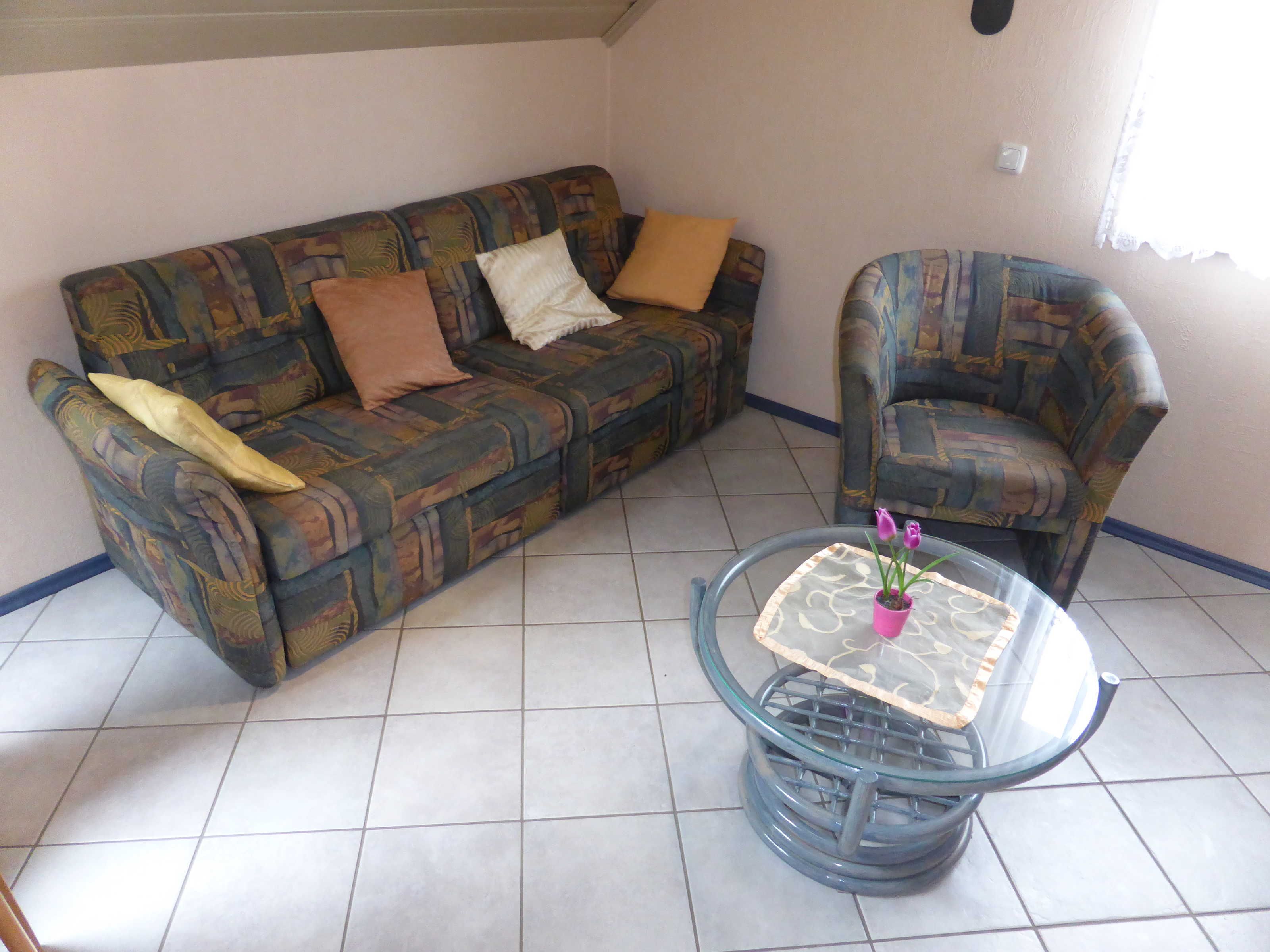 •    Wohnzimmer mit Doppelschlafcouch und Essecke