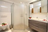 Die FeWo umfasst 4 Räume: 1 Wohnküche mit Schlafmöglichkeit für 2 Personen (große Küchenzeile mit Geschirrspüler, Kühlschrank mit Gefrierfach, Cerankochfeld, Backrohr, Mikrowelle, helle Sitzecke mit Esstisch); 2 DZ mit DU/WC; Wohnzimmer mit Schlafmöglichkeit. Balkon von jedem Raum zugänglich.