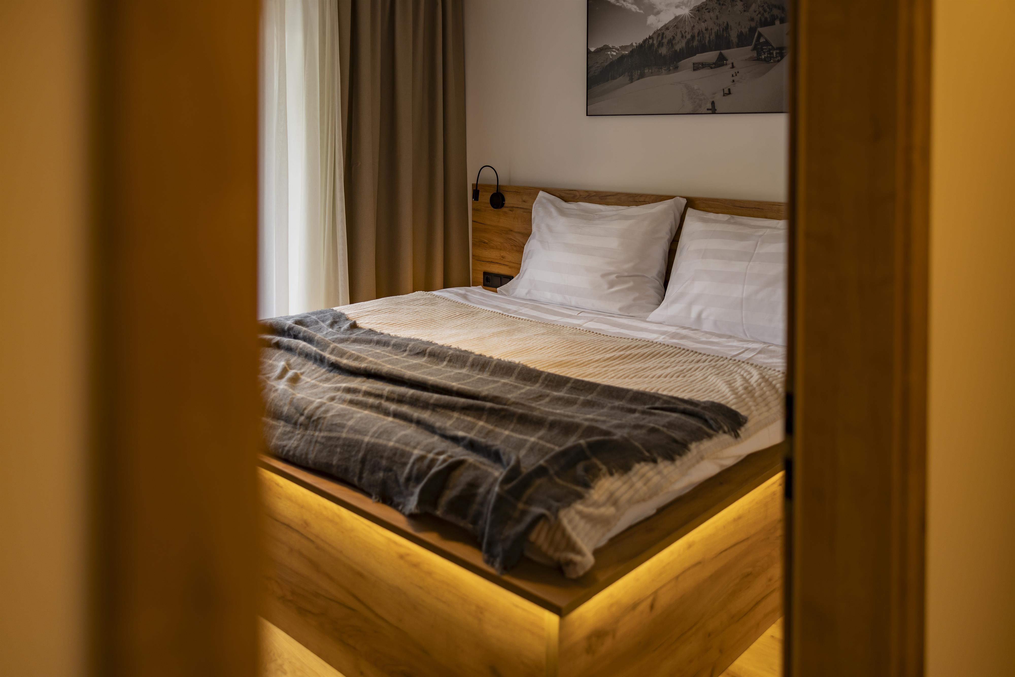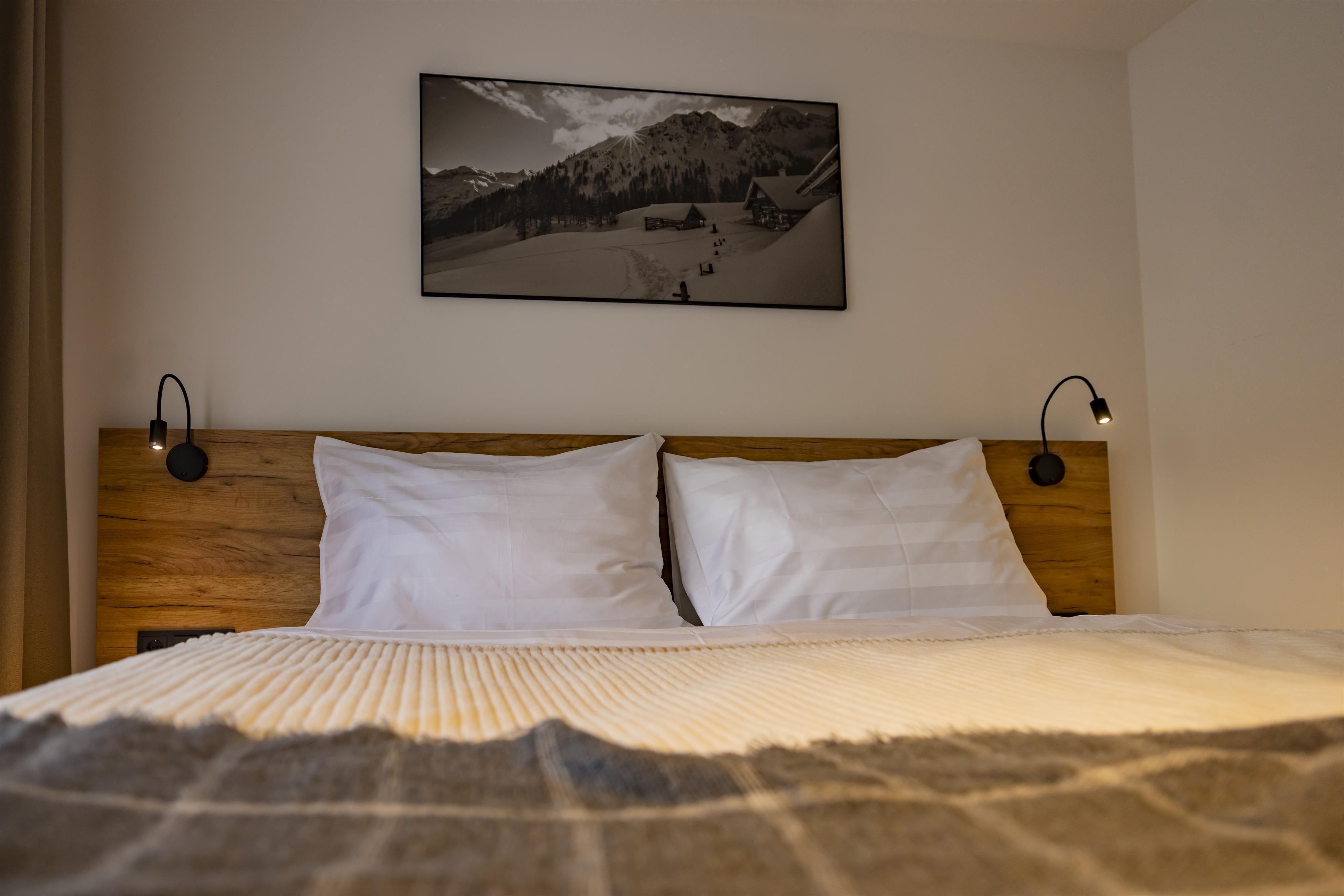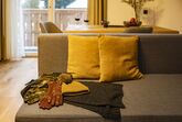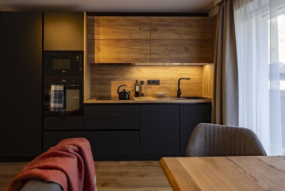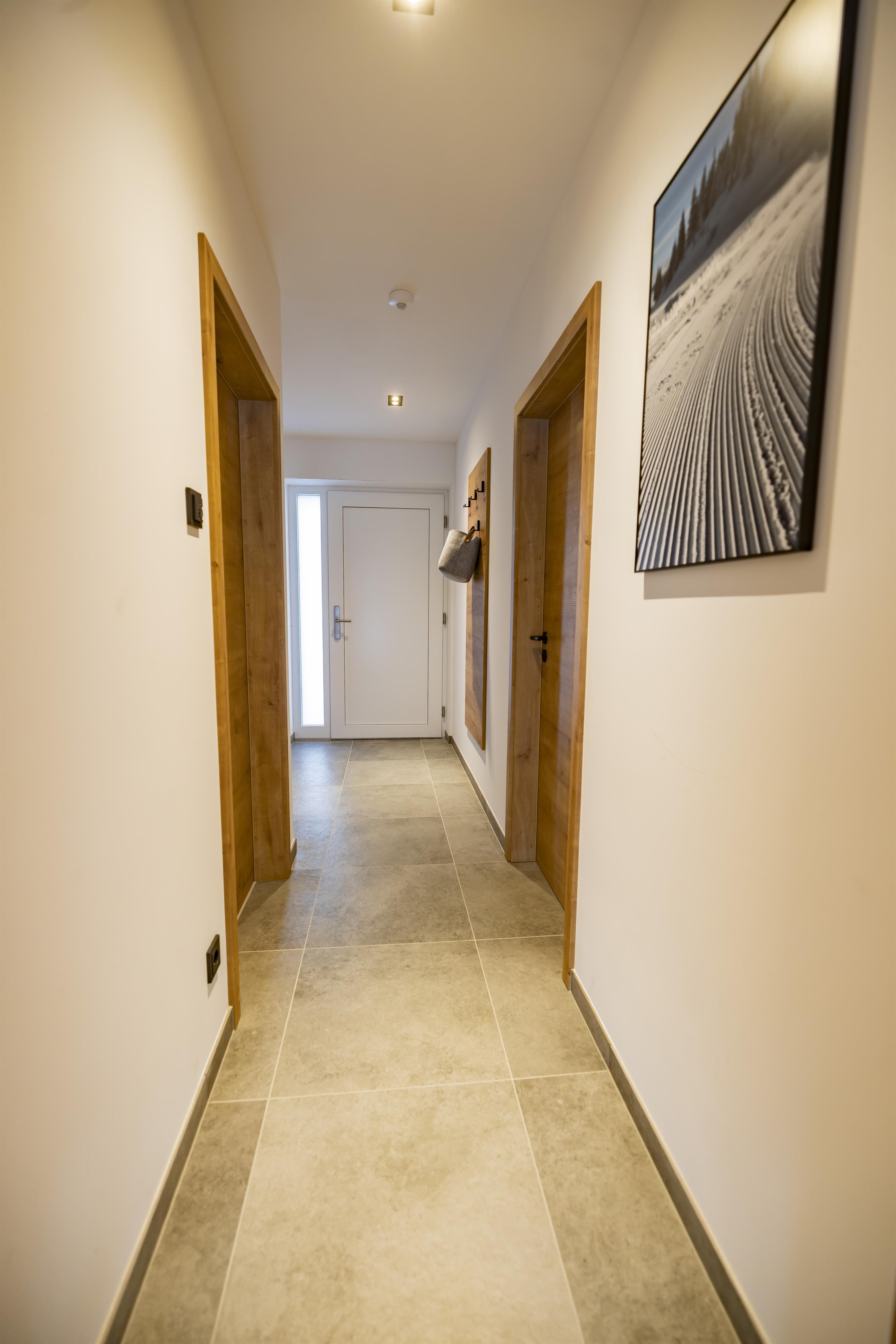 Im ersten Stock des Appartementhauses erwartet Sie eine schöne Wohnung, in der Sie von jedem Zimmer aus auf einen großzügigen Balkon treten und mit Blick auf die schneebedeckten Gipfel der Alpen entspannen können. Zwei getrennte Schlafzimmer mit Doppelbetten, ein geräumiges Badezimmer mit WC und eine gemütliche Küche mit Wohnzimmer garantieren maximalen Komfort für bis zu 6 Personen.
