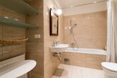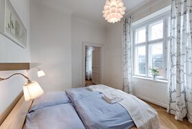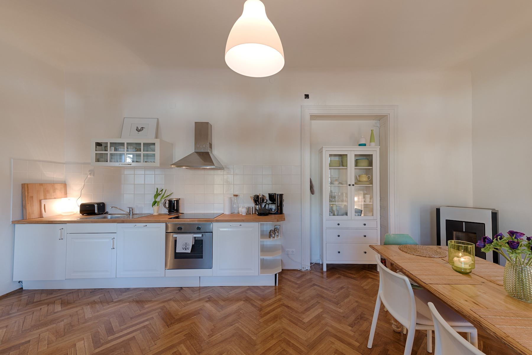 Diese im Hochparterre gelegene 100m2 Wohnung bietet Ihnen zwei Schlafzimmer (1 mit Doppelbett, 1 mit Stockbett), ein großes Wohnzimmer mit Doppelschlafcouch, eine große Wohnküche mit Pelletofen sowie Zugang zum Wintergarten. Dazu ein Badezimmer mit Badewanne, Fußbodenheizung sowie Waschmaschine und Trockner. Separat die Toilette. Flachbildschirm mit SAT-Anschluss und DVD-Player sowie eine Auswahl von Filmklassikern für verregnete Abende. Ausgestattet mit edlen Parkettböden, gemütliche Sofas und Lesesessel.