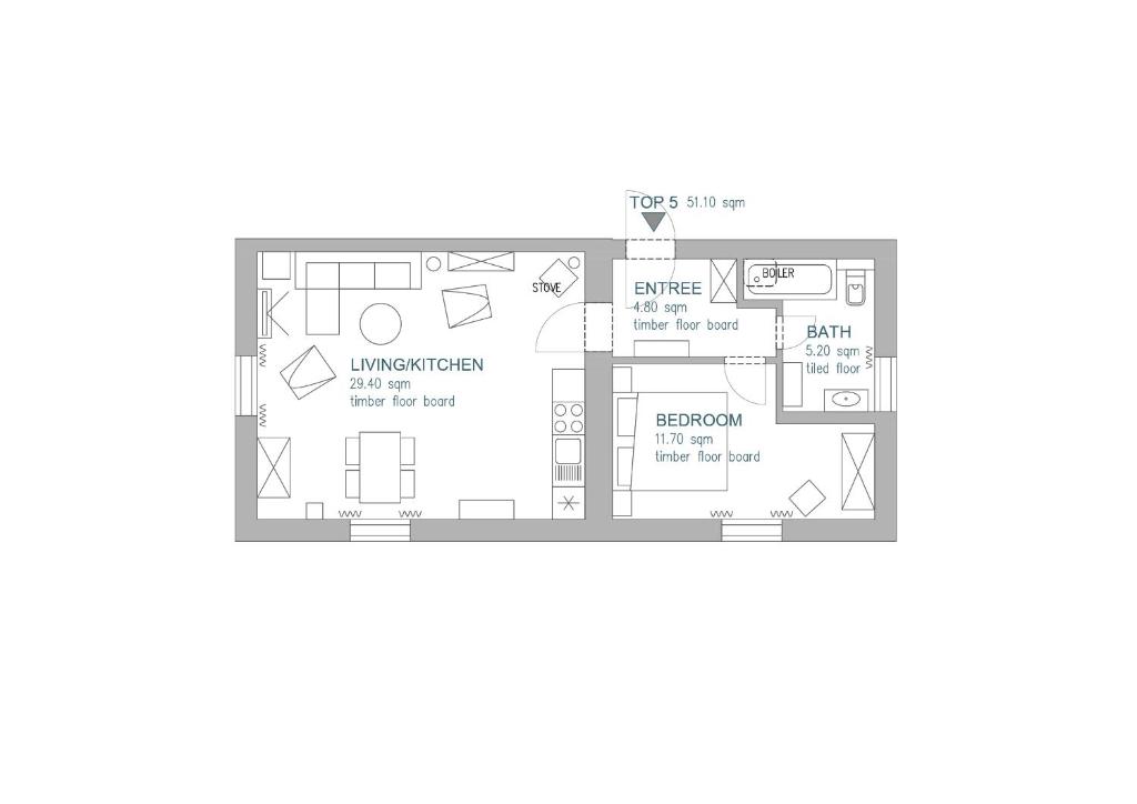 Ein gemütlich-gediegener Landhausstil zieht sich durch alle Apartments, mit Möbeln aus 3 Jahrhunderten. Alle Apartments sind nicht nur teppichbodenfrei, man bewegt sich überwiegend auf 120 Jahre alten Dielen. Dazu alle komfortablen Errungenschaften von heute: gemütliche Badewannen für Zwei (nicht in allen Apartments), Fußbodenheizung im Bad, durchgehend gratis WLAN, Ultraflachbildschirme mit SAT Anschluss (viele davon digital und damit streaming-fähig), DVD Player und eine Auswahl an DVDs etc. Pelletöfen in jeder Wohnung sorgen für gemütliche Wärme und Feuerschein auf Knopfdruck, auch wenn es jenseits des Winters einmal etwas kühler wird.