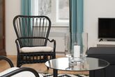 Ein gemütlich-gediegener Landhausstil zieht sich durch alle Apartments, mit Möbeln aus 3 Jahrhunderten. Alle Apartments sind nicht nur teppichbodenfrei, man bewegt sich überwiegend auf 120 Jahre alten Dielen. Dazu alle komfortablen Errungenschaften von heute: gemütliche Badewannen für Zwei (nicht in allen Apartments), Fußbodenheizung im Bad, durchgehend gratis WLAN, Ultraflachbildschirme mit SAT Anschluss (viele davon digital und damit streaming-fähig), DVD Player und eine Auswahl an DVDs etc. Pelletöfen in jeder Wohnung sorgen für gemütliche Wärme und Feuerschein auf Knopfdruck, auch wenn es jenseits des Winters einmal etwas kühler wird.
