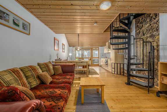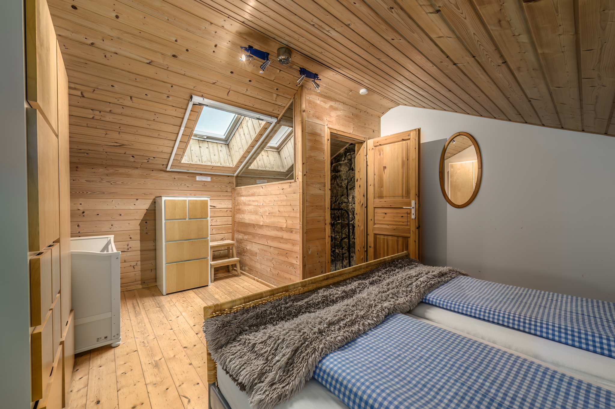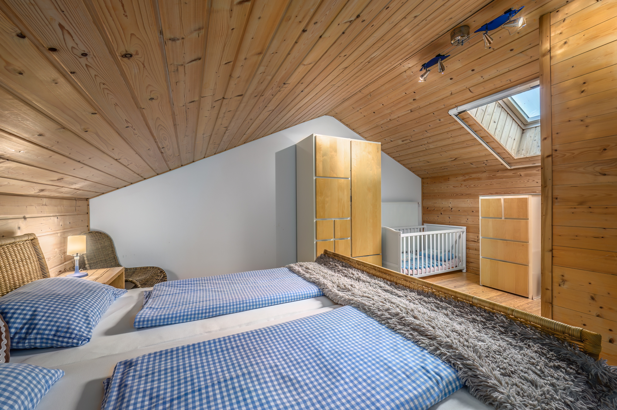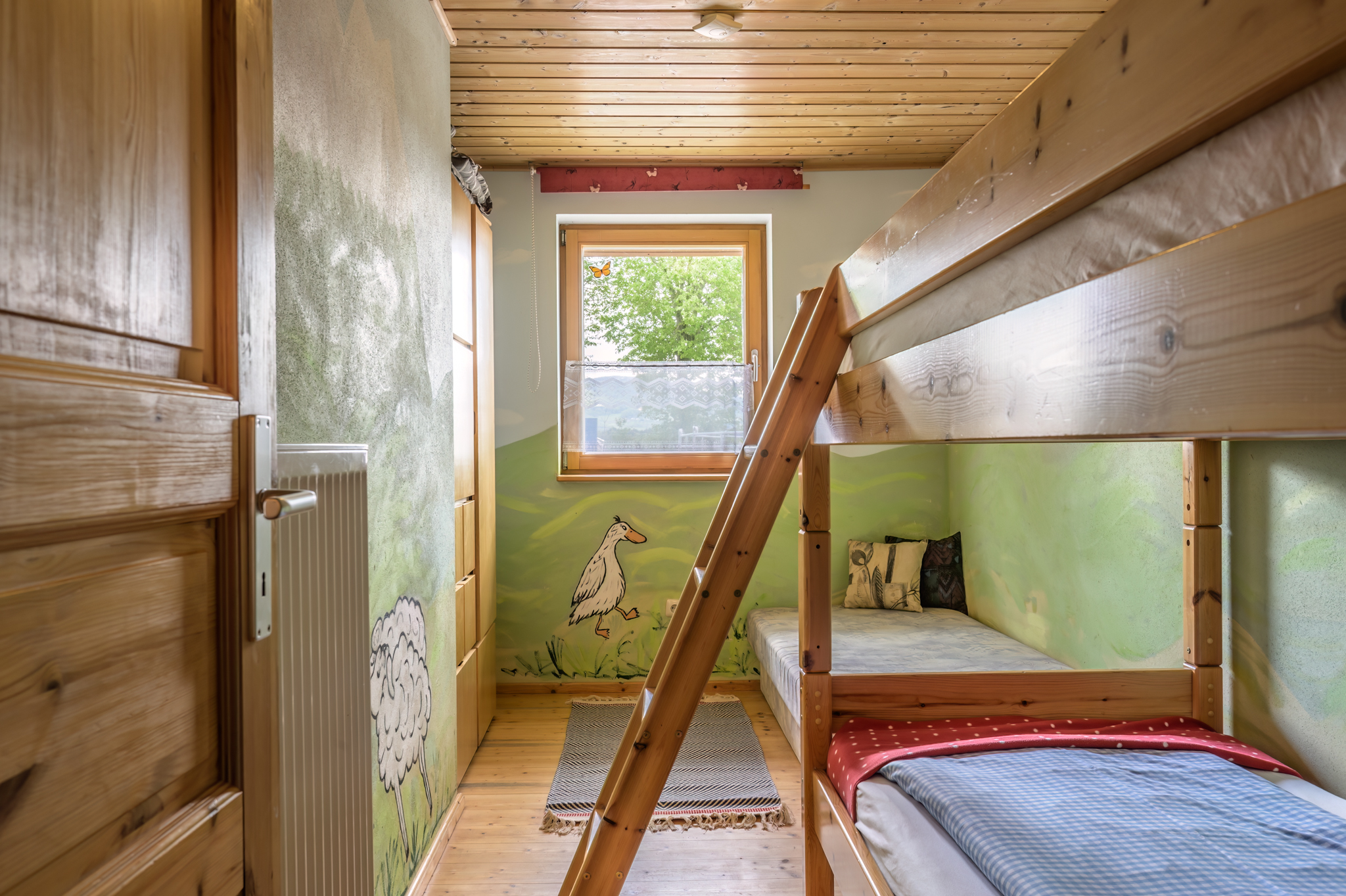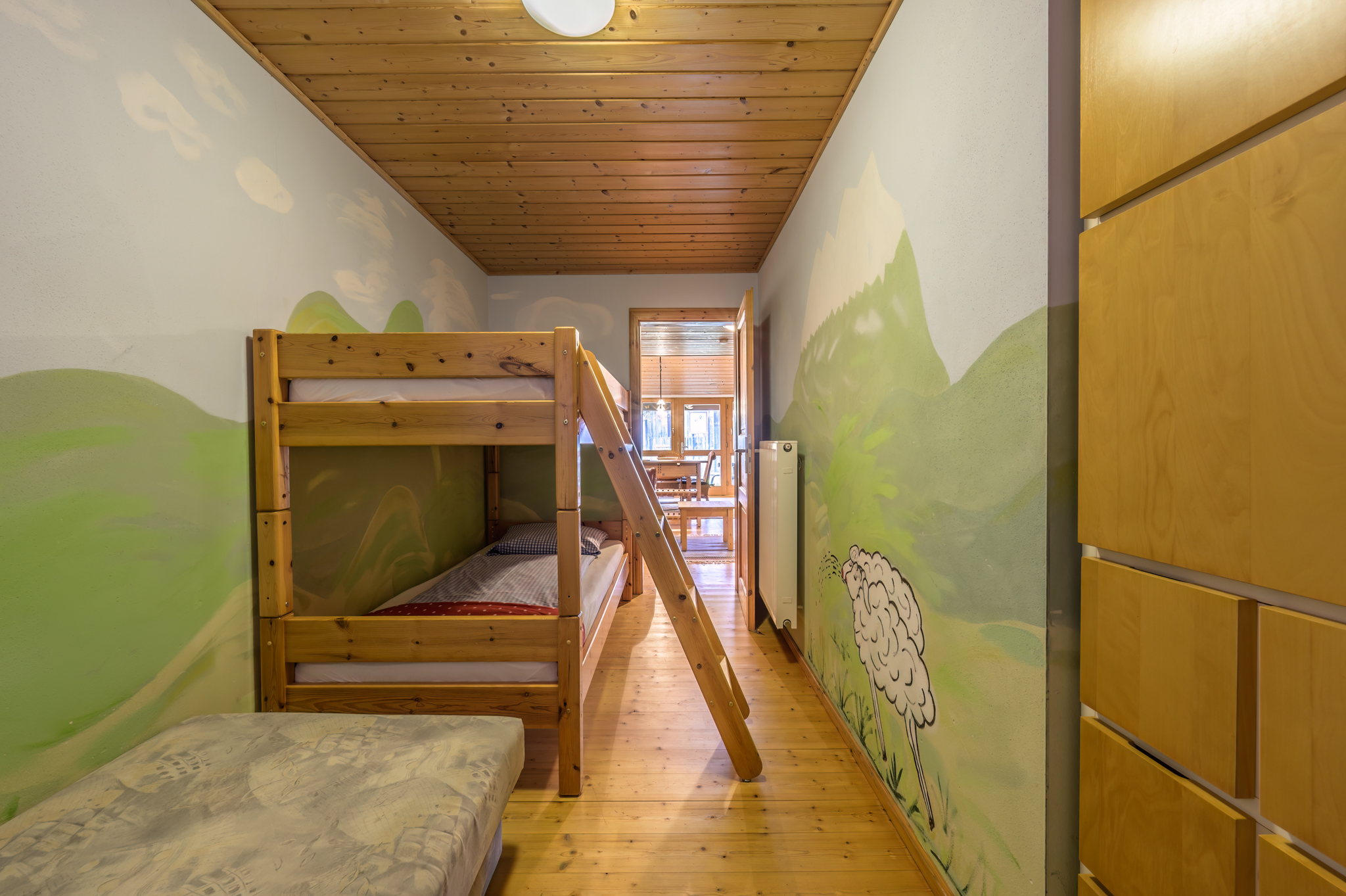 FW mit Elternschlafzimmer im Obergeschoss und Kinderzimmer mit Stockbett im Erdgeschoss.
