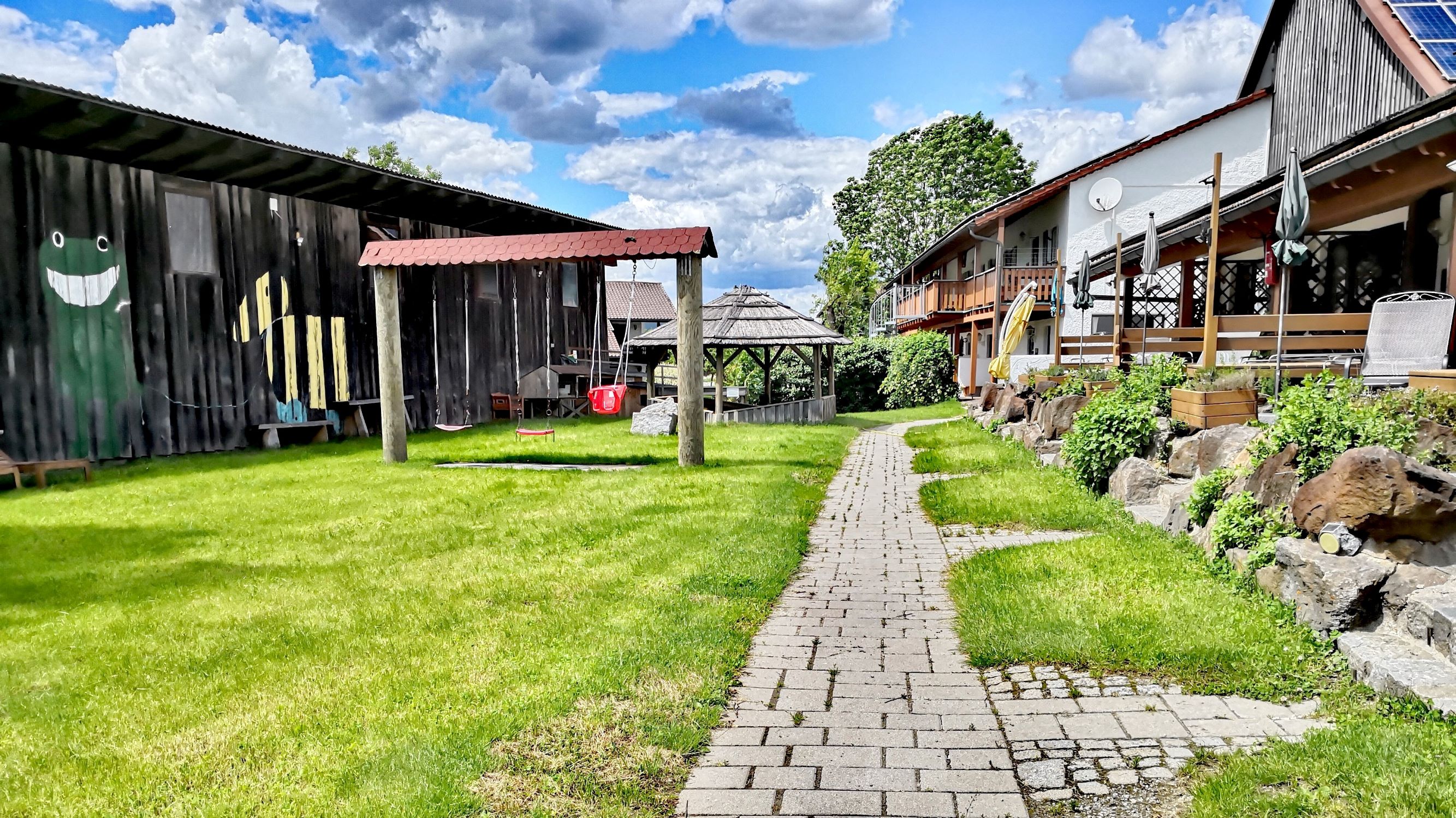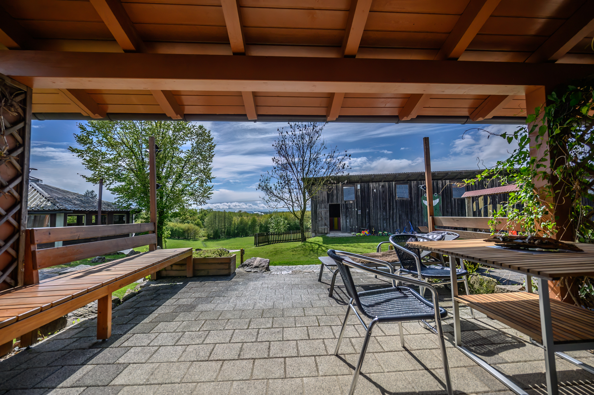 Eigener Terrasse mit direktem Blick und Zugang zum Spielplatz.