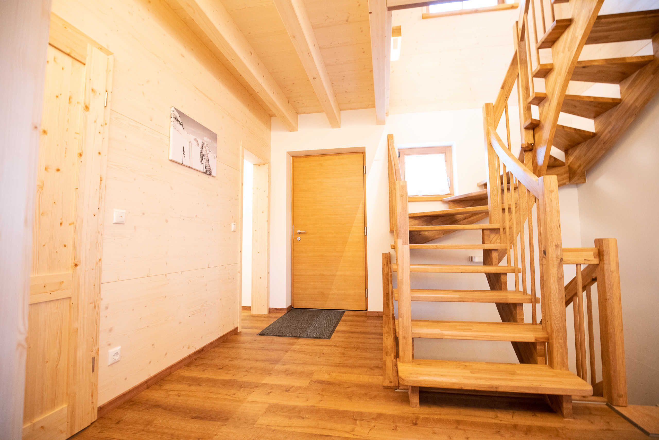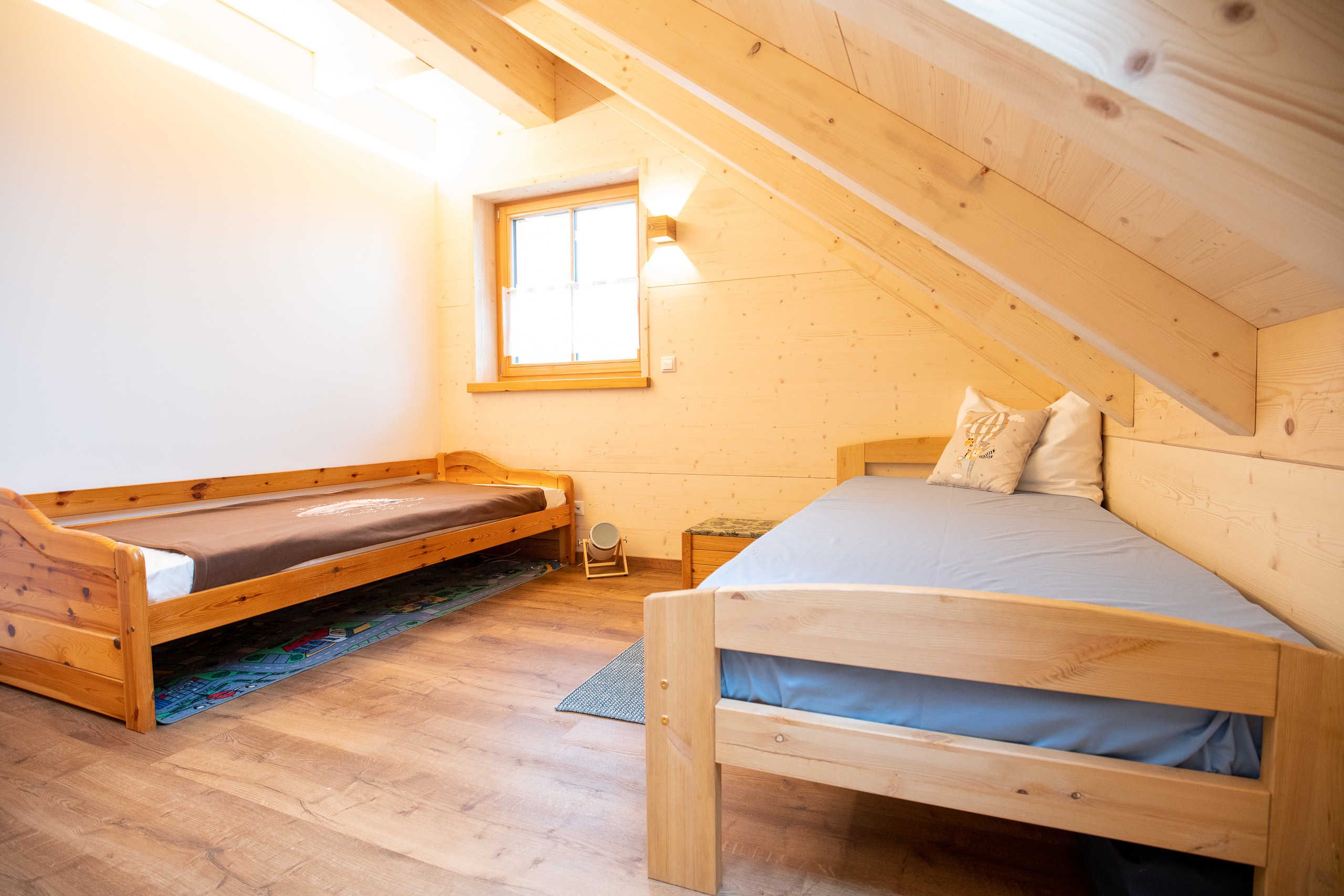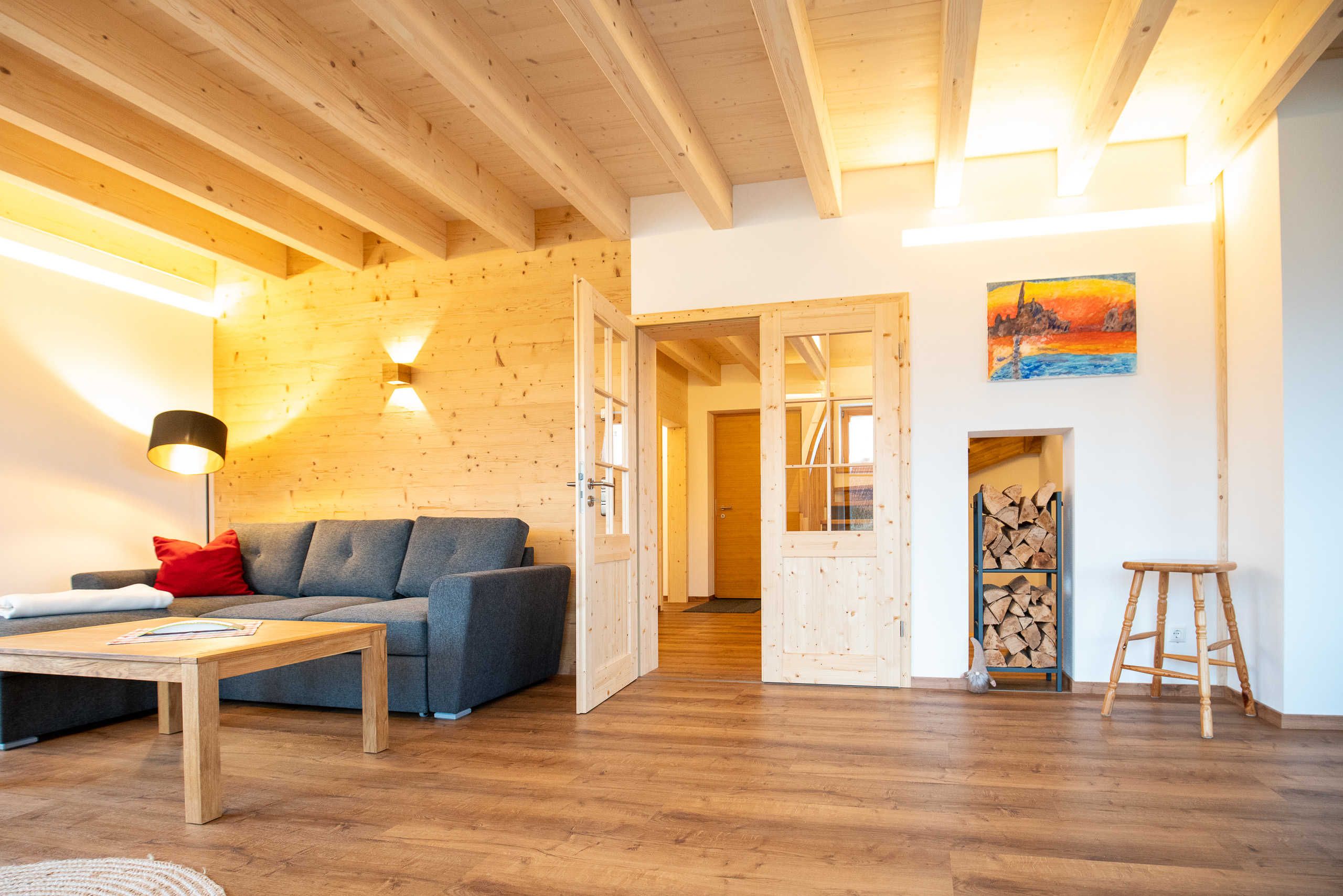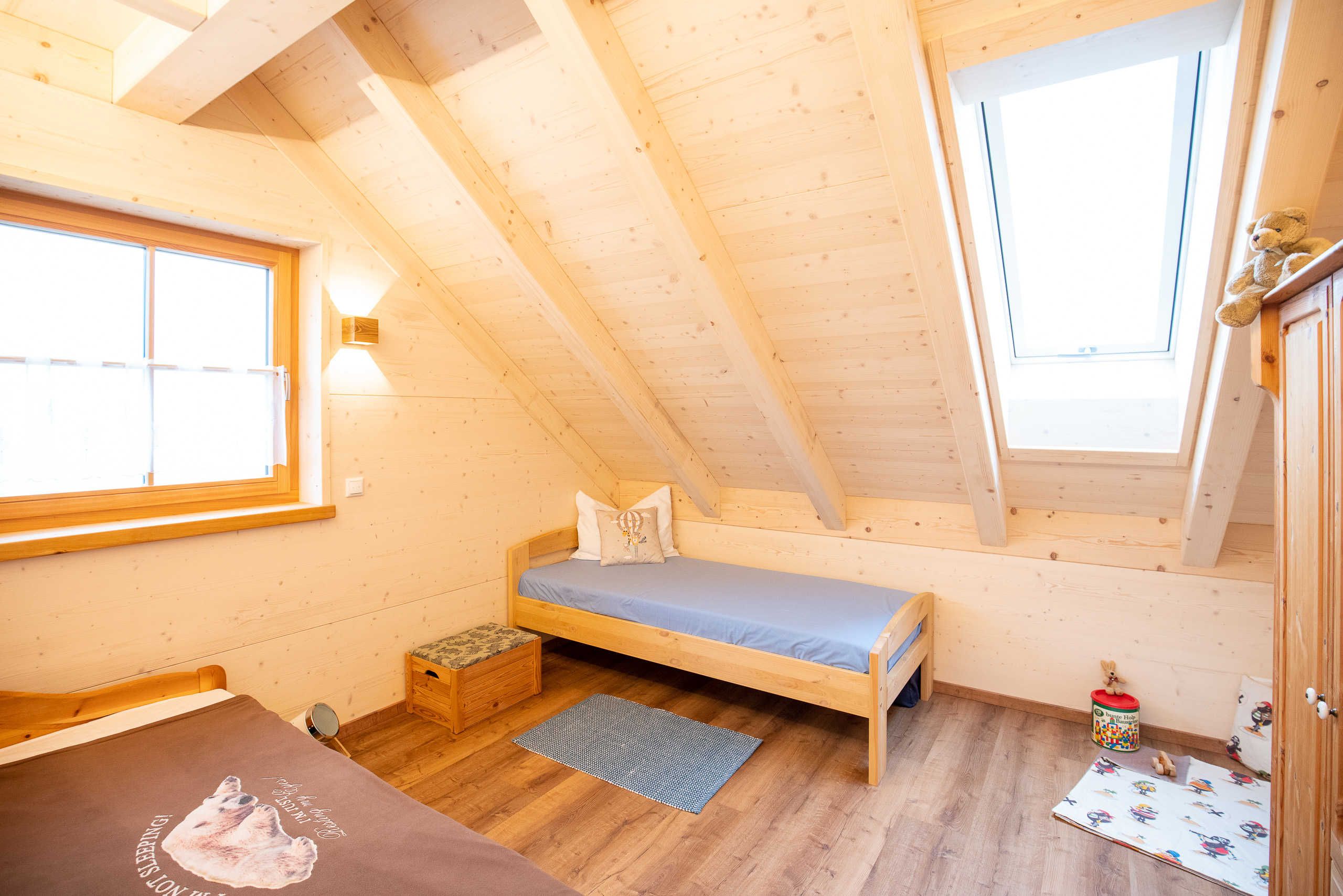 Das freistehende Holzhaus mit 140 qm Wohnfläche verfügt über 3 Schlafzimmer und zwei Bäder und bietet auf 2 Etagen Platz für 6 Personen.