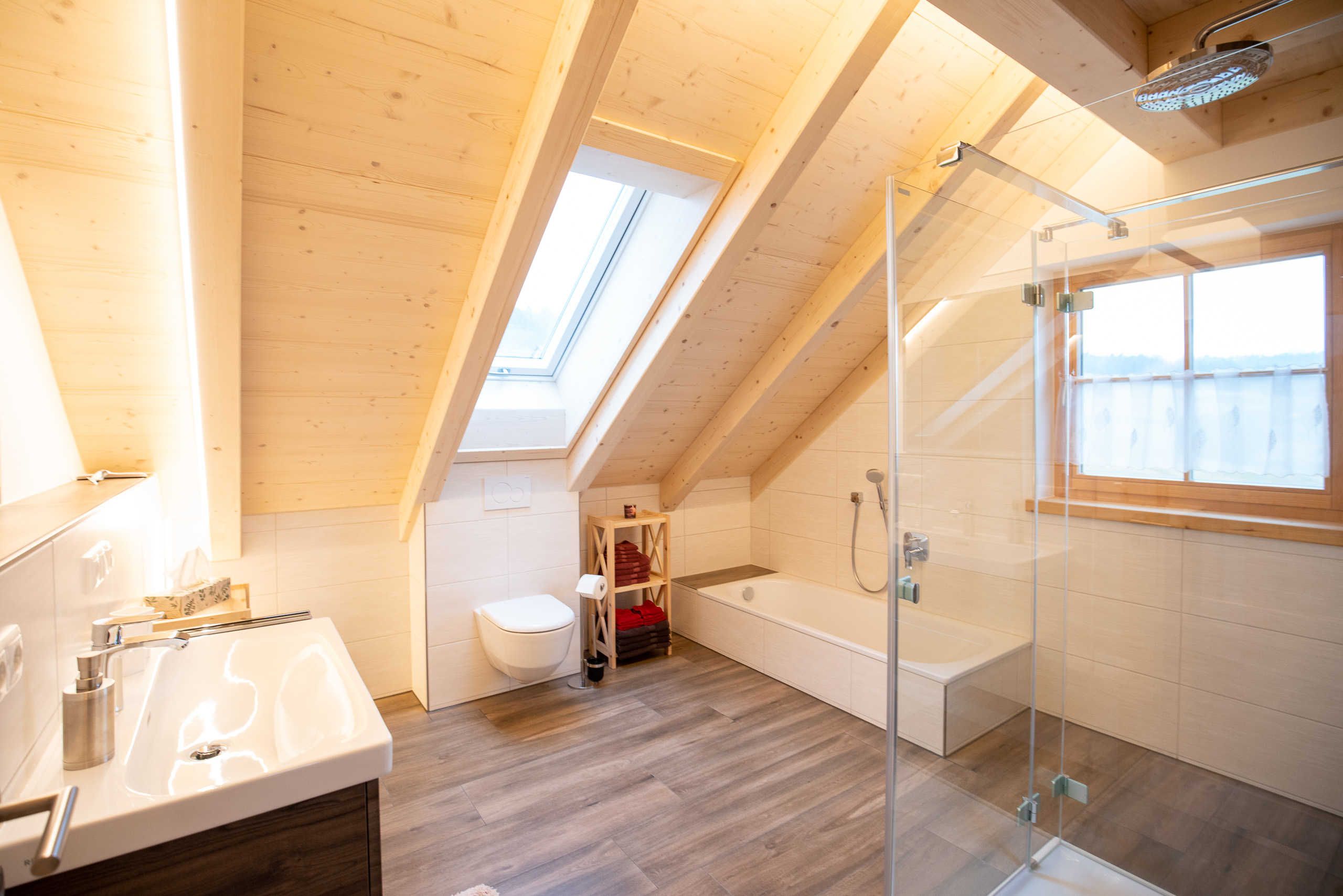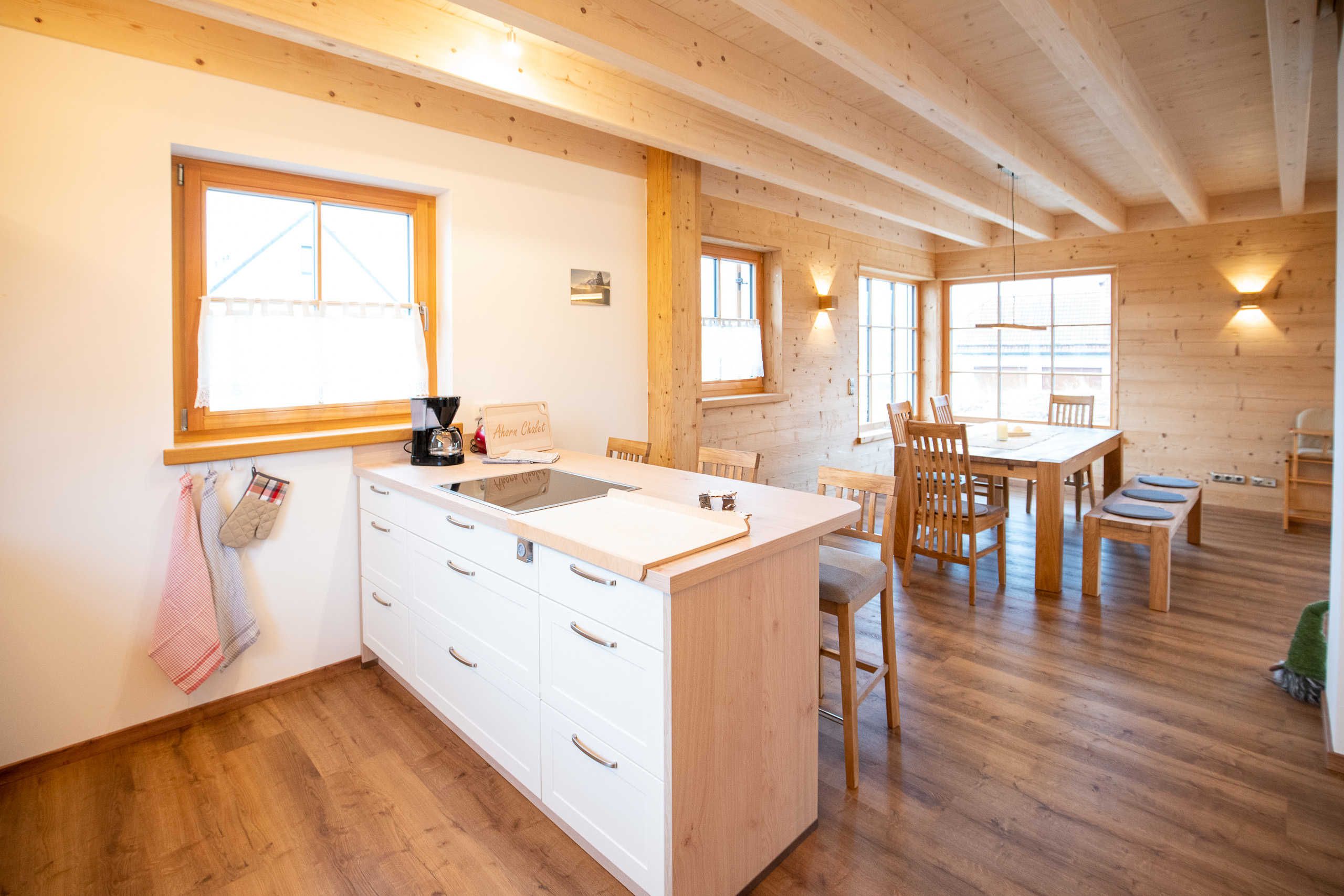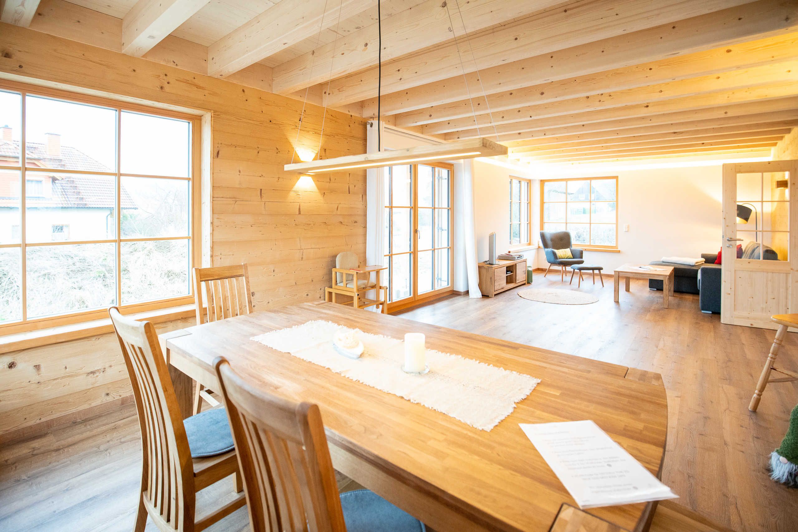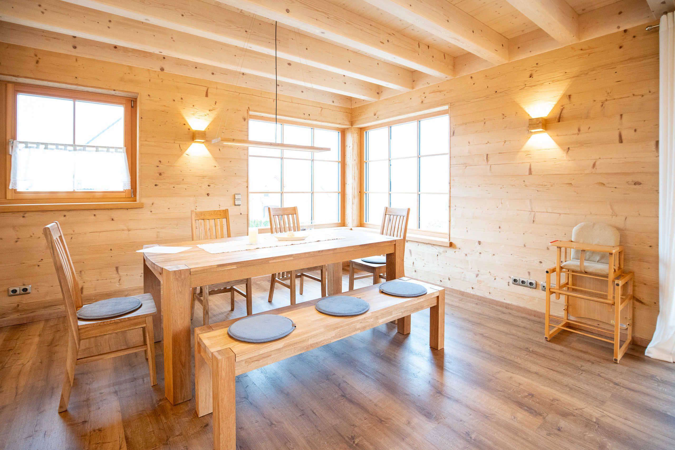 Das neu erbaute Holzhaus liegt am Rande des Ortes Kirchahorn mit Blick auf Wiesen und Felder. Die 140 qm Wohnfläche bietet auf 2 Etagen Platz für bis zu 6 Personen. Das hochwertig ausgestattete Haus verfügt über großzügig geschnittene, helle Räume und einen offenen Wohn- / Essbereich. Ein Balkon und eine Terrasse Richtung Süden laden zum Entspannen ein. Der Dorfladen ist ebenso wie der Ortskern mit einem gemütlichen Gasthaus nur 5 Gehminuten entfernt. Die Arztpraxis, die Apotheke und auch eine Physiopraxis befinden sich in direkter Nähe.