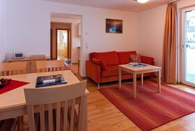 1 Schlafzimmer mit Doppelbett, 1 Wohn-/Schlafzimmer mit Bett und Ausziehcouch, 1 abgetrennte und voll ausgestattete Küche mit Essecke, Vorraum,Badezimmer mit Dusche, Fön