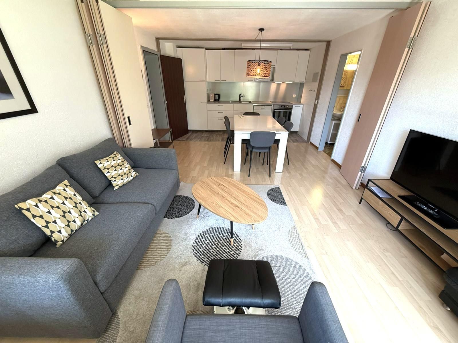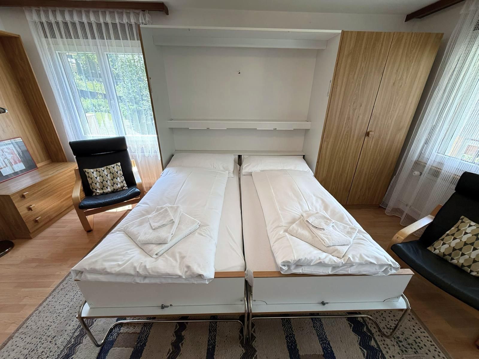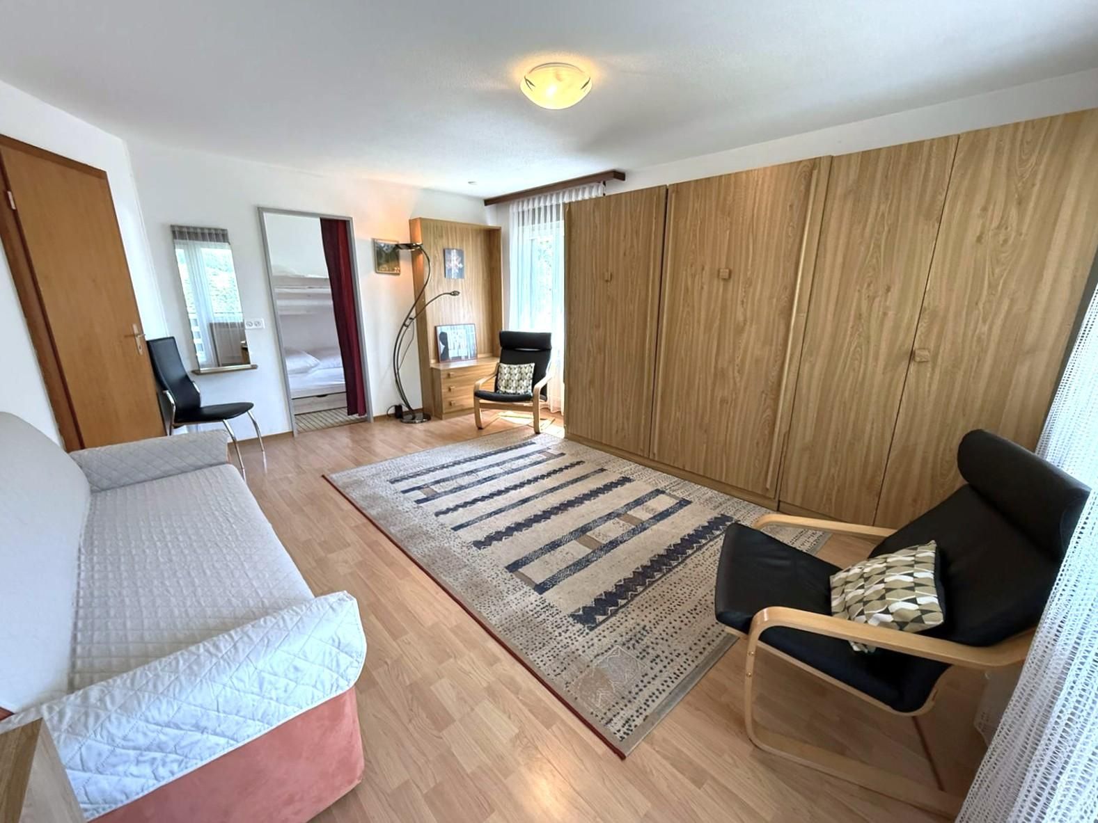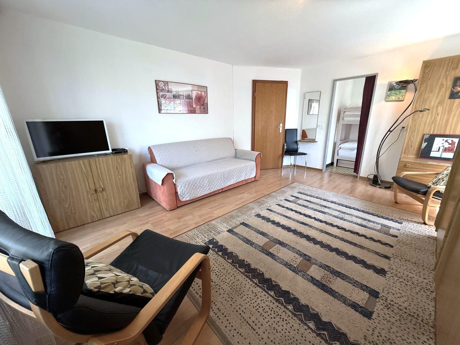 3-Zimmerwohnung 90m2 im 3. Stock: 1 Doppelschlafzimmer, 1 Schlafzimmer mit 2 Schrankbetten, 1 kleines Abteil mit Etagenbett (nur für Kinder geeignet), Wohn-Esszimmer mit Bettsofa, separate Küche mit Geschirrspüler und Mikrowelle, 2x Dusche/WC, gratis WiFi, 2x TV, 2 Balkone (Süd-und Südwest), zentrale Lage. Nichtraucherwohnung.