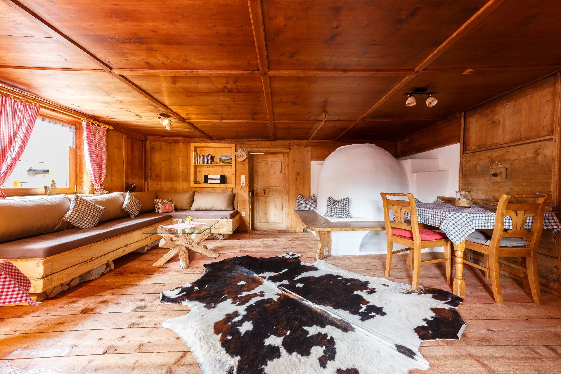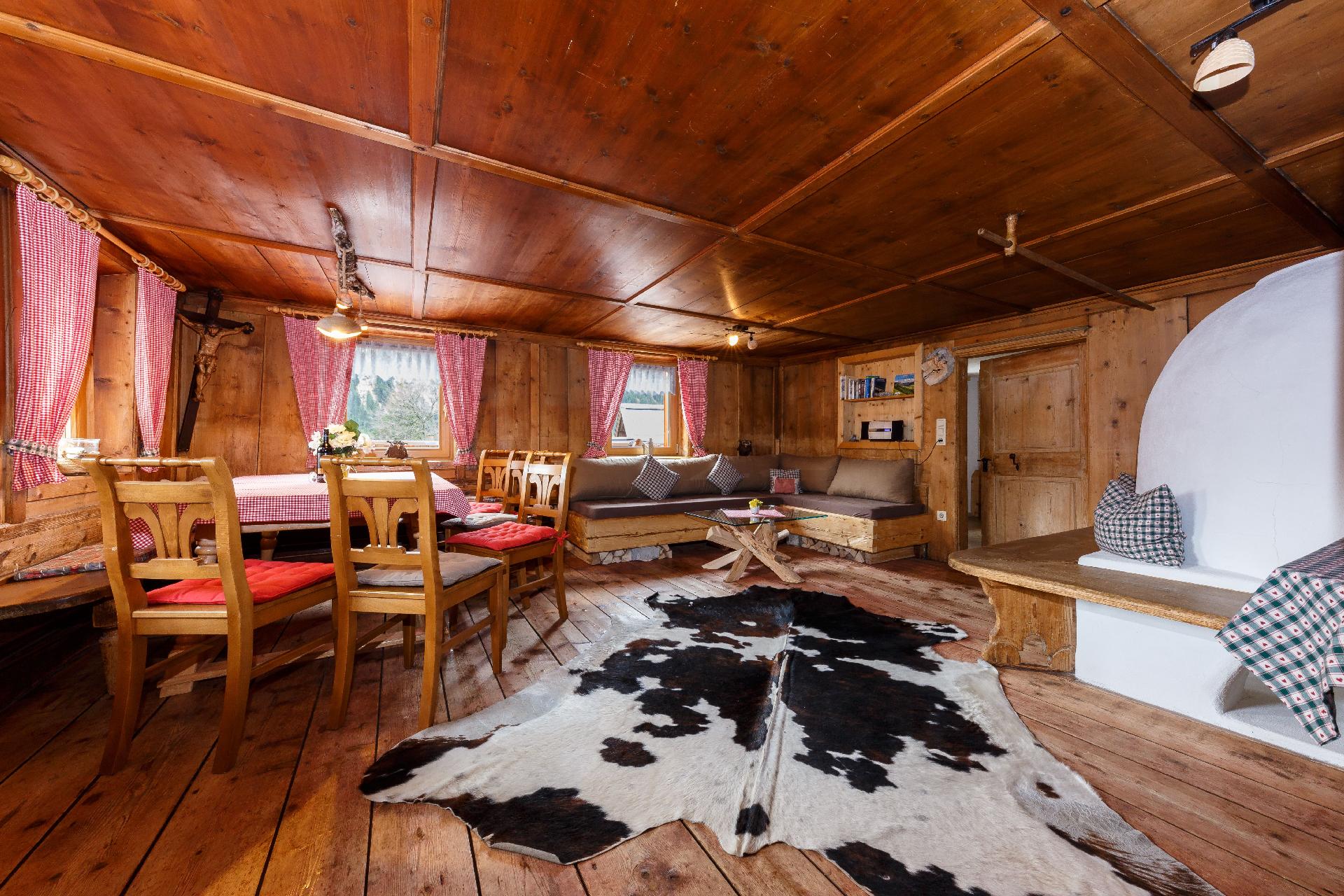 Das gemütliche romantische Ferienhaus ist ca. 450 Jahre alt und wurde in mühevoller, eigenhändiger Arbeit wieder in Schwung gebracht wurde. Die Besonderheit dieses Hauses ist, die zwar renovierte aber doch so belassene alte Stube mit Grundofen und Holzvertäfelungen im Original. Wie zu Ur-Omas Zeiten. Erleben Sie modernes-alpenländisches Wohnflair im 450-500 Jahre alten Haus mit original vertäfelter Stube mit Holzofen. Erfahren Sie Hüttenromantik pur. Das Haus erstreckt sich auf zwei Etagen und bietet Platz auf ca. 180m² für bis zu 14 Personen. Fünf Schlafzimmer bieten genug Platz für alle Gäste. Im ersten und zweiten Schlafzimmer sind ein Doppelbett und ein Einzelbett und im dritten Schlafzimmer ist ein Doppelbett und zwei Einzelbetten vorhanden. Ein Doppelbett im vierten Schlafzimmer und zwei Einzelbetten im fünften Schlafzimmer vervollständigen das Angebot. Ebenfalls lassen die beiden Badezimmer keine Wünsche offen. Im ersten Badezimmer ist eine Badewanne, Dusche, Doppelwaschbecken, WC, Waschmaschine und ein Wäschetrockner vorhanden. Im zweiten Badezimmer erwartet Sie eine kleine aber sehr feine Regenerationsecke, zum direkten entspannen nach anstrengenden Aktivitäten. Genießen Sie eine entspannende Dusche in der Regendusche mit Wasserfalldesign oder entspannen und relaxen Sie bei der Infrarottiefenwärme - Lechwogga Sitz. Ein WC ist hier ebenfalls vorhanden. Weiterhin gibt es noch ein separates WC. Der rustikale Wohnbereich wartet mit einer gemütlichen Sitzecke und einer Essecke zum Entspannen und Verweilen auf Sie. Eine komplett ausgestattete Küche erwartet Sie ebenfalls. Neben einer Spülmaschine ist auch ein Kühlschrank mit Gefrierfach, eine Kaffeemaschine, ein Toaster u.v.m. vorhanden.