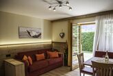 Das ebenfalls neu renovierte geräumige Apartment Brennerspitz bietet auf ca. 45m² moderne, rustikale Stilelemente und Tiroler Tradition. Die großzügige Terrasse des im Erdgeschoss gelegenen Apartments eröffnet einen wunderbaren Blick auf die Stubaier Alpen.