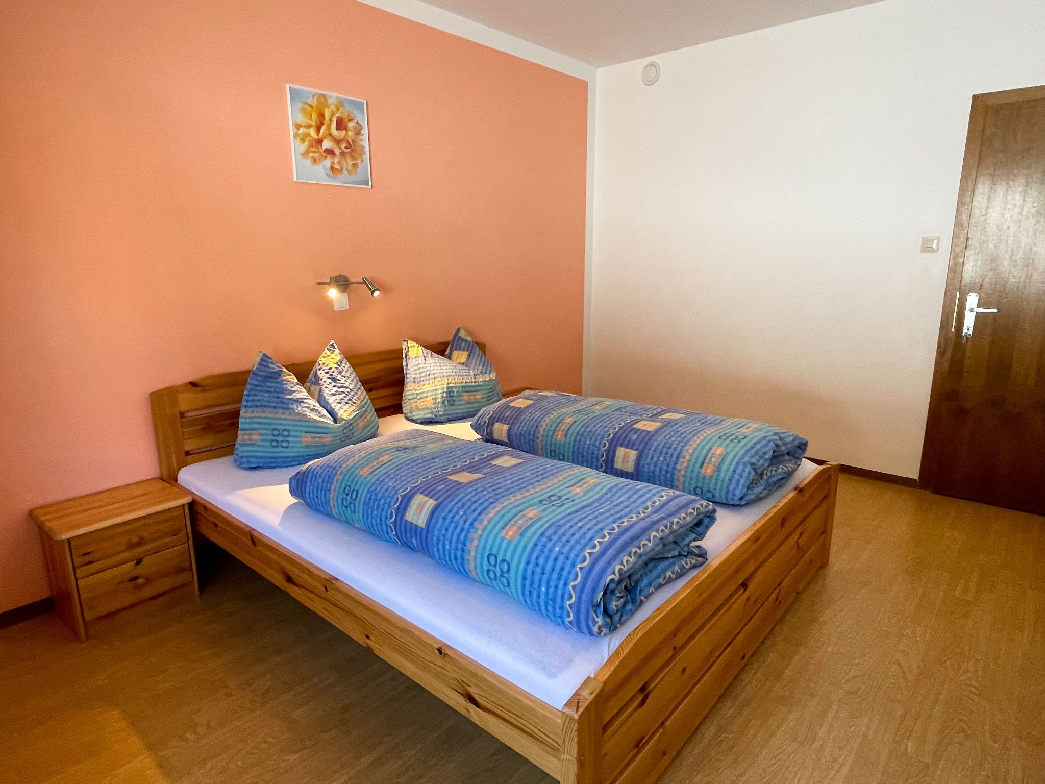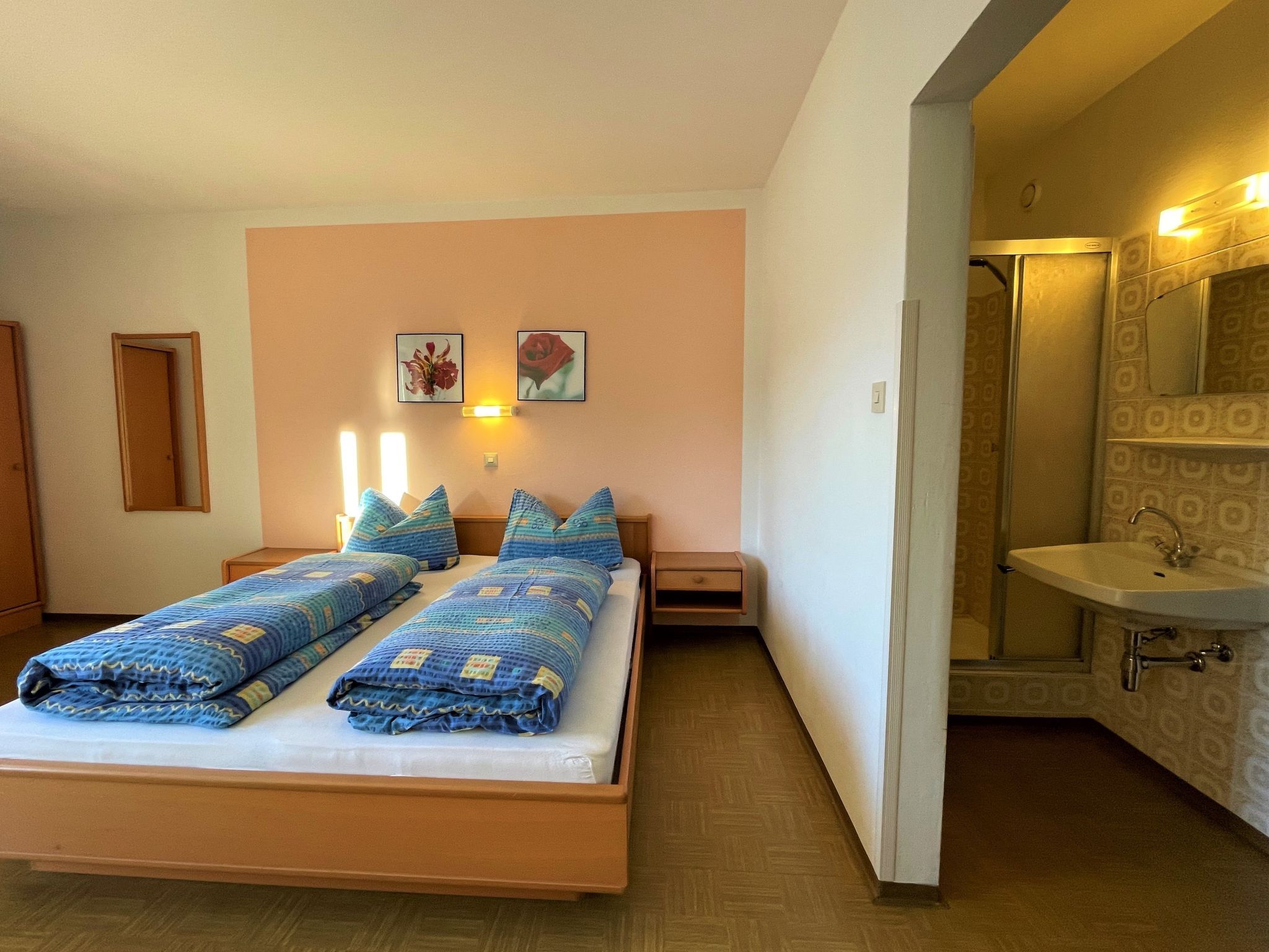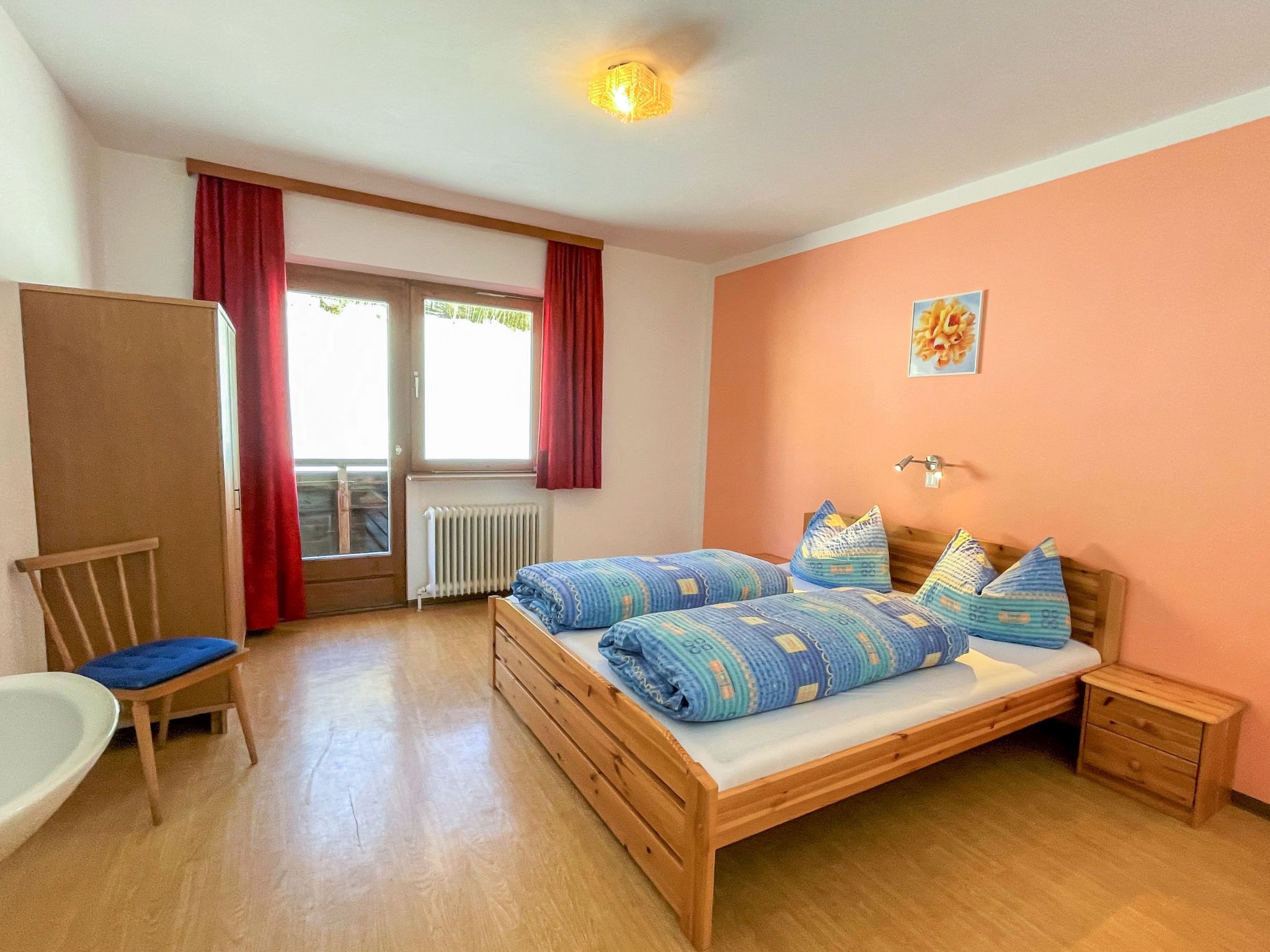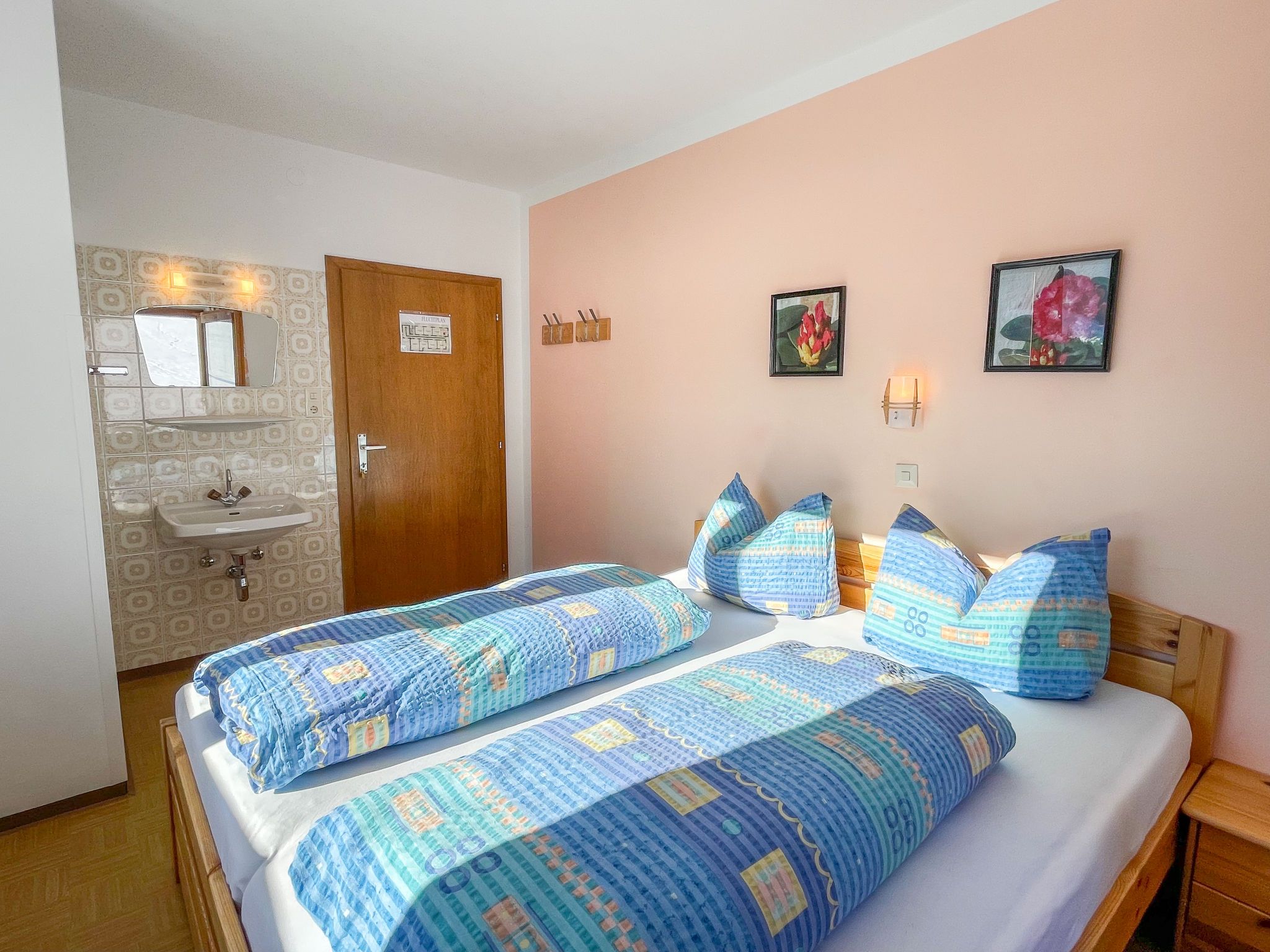 Roggenboden, 8-Zimmer-Wohnung 200 m2 im 2. Stock, Südwestlage. Objekt geeignet für 14 Erwachsene. Geräumig und hell, einfach und zweckmässig eingerichtet: Wohnzimmer mit Essecke und Sat-TV. Ausgang zum Balkon. 1 Doppelzimmer mit Waschbecken und Dusche. Ausgang zum Balkon. 1 Doppelzimmer mit Waschbecken und Dusche. Ausgang zum Balkon. 1 Zimmer mit 1 Bett, 1 Doppelbett und Waschbecken. Ausgang zum Balkon. 1 Zimmer mit 1 Doppelbett, 1 Klappbett und Waschbecken. Ausgang zum Balkon. 1 Doppelzimmer mit Waschbecken. Ausgang zum Balkon. 1 Doppelzimmer mit Waschbecken. Ausgang zum Balkon. Grosse Küche (Backofen, Geschirrspüler, 4 Glaskeramikplatten, Toaster, Wasserkocher, Mikrowelle, elektrische Kaffeemaschine) mit Esstisch und Radio. Dusche, 2 sep. WC's. Heizung. 2 Balkone. Balkonmöbel. Sehr schöne Sicht auf die Berge und das Tal. Zur Verfügung: Kinderhochstuhl, Babybett. Internet (WLAN, gratis). Bitte beachten: Nichtraucher-Unterkunft. Maximal 1 Haustier/Hund erlaubt. Rauchmelder, Feuerlöscher. Bei Belegung mit weniger Personen als der maximalen Personenzahl stehen nicht alle Wohneinheiten zur Verfügung.