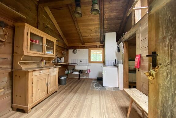 Die über 150-jährige Alphütte wurde behutsam renoviert und «herausgeputzt». Der authentische Charme von diesem historischen Gebäude wurde beibehalten und vermittelt eine gemütliche, stille Athmosphäre.