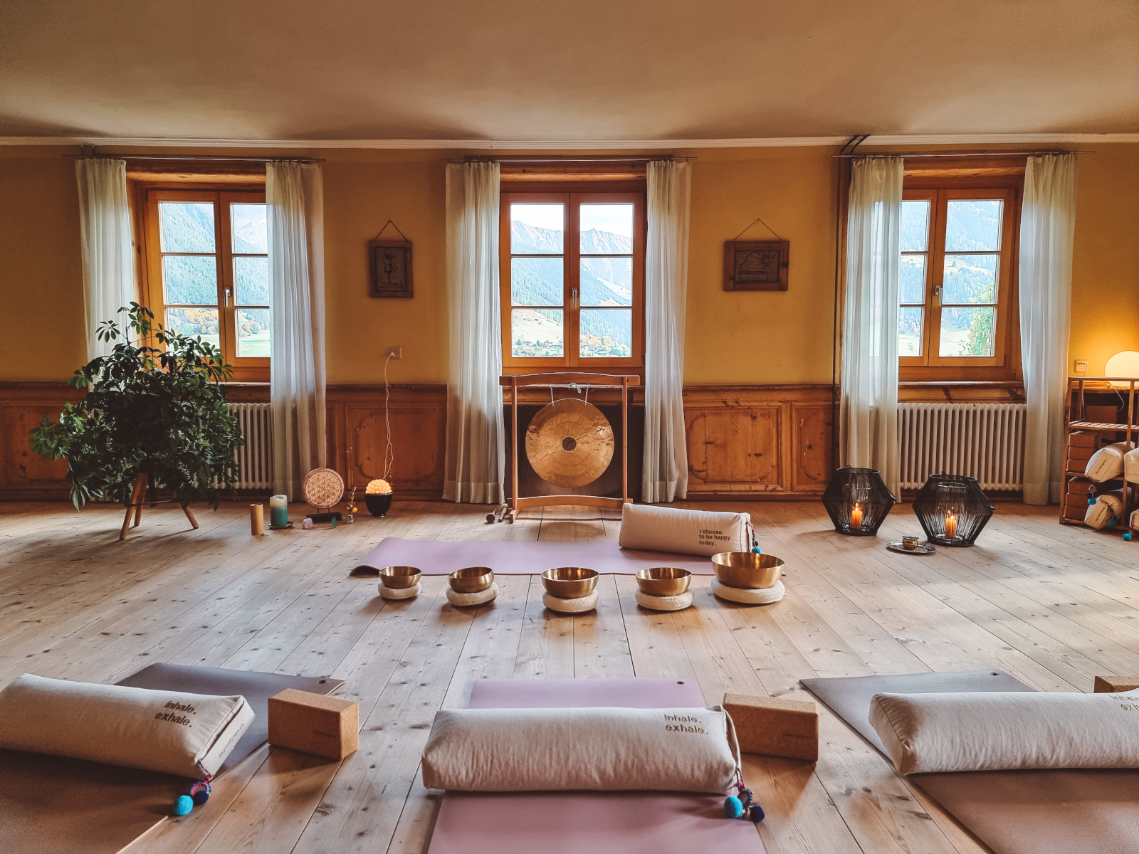 Das wunderschöne Wohnzimmer ist hell, warm und geräumig. Es bietet Platz zum Verweilen, Entspannen, zum Tanzen und Yoga machen. Die von der Gastgeberin angebotenen Yogaevents finden in diesem Raum statt und sind offen für die Teilnahme der Gäste. Termine und Preise stehen auf unserer Website. Ausserhalb der Lektionen steht er zur freien Verfügung.